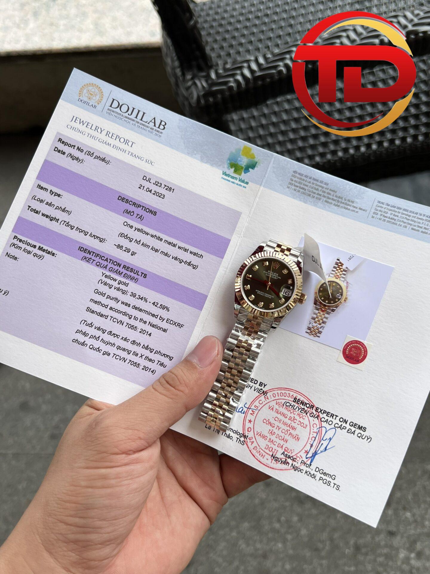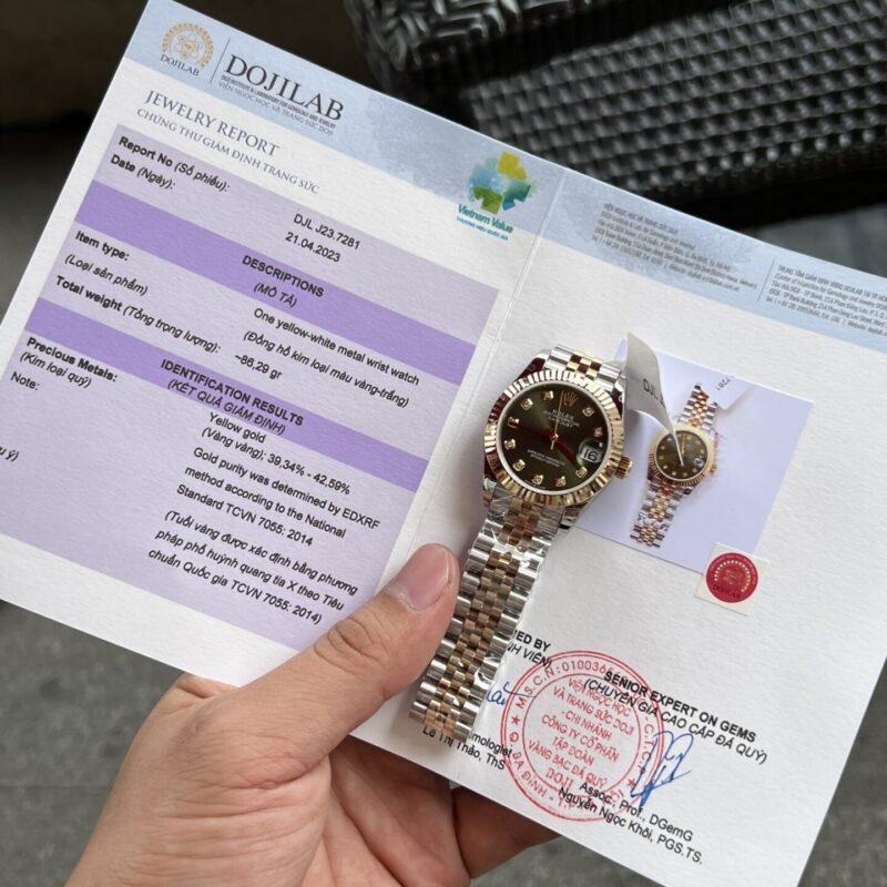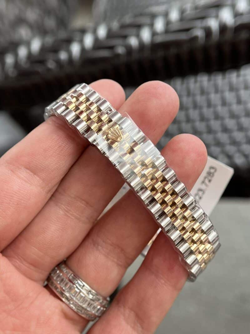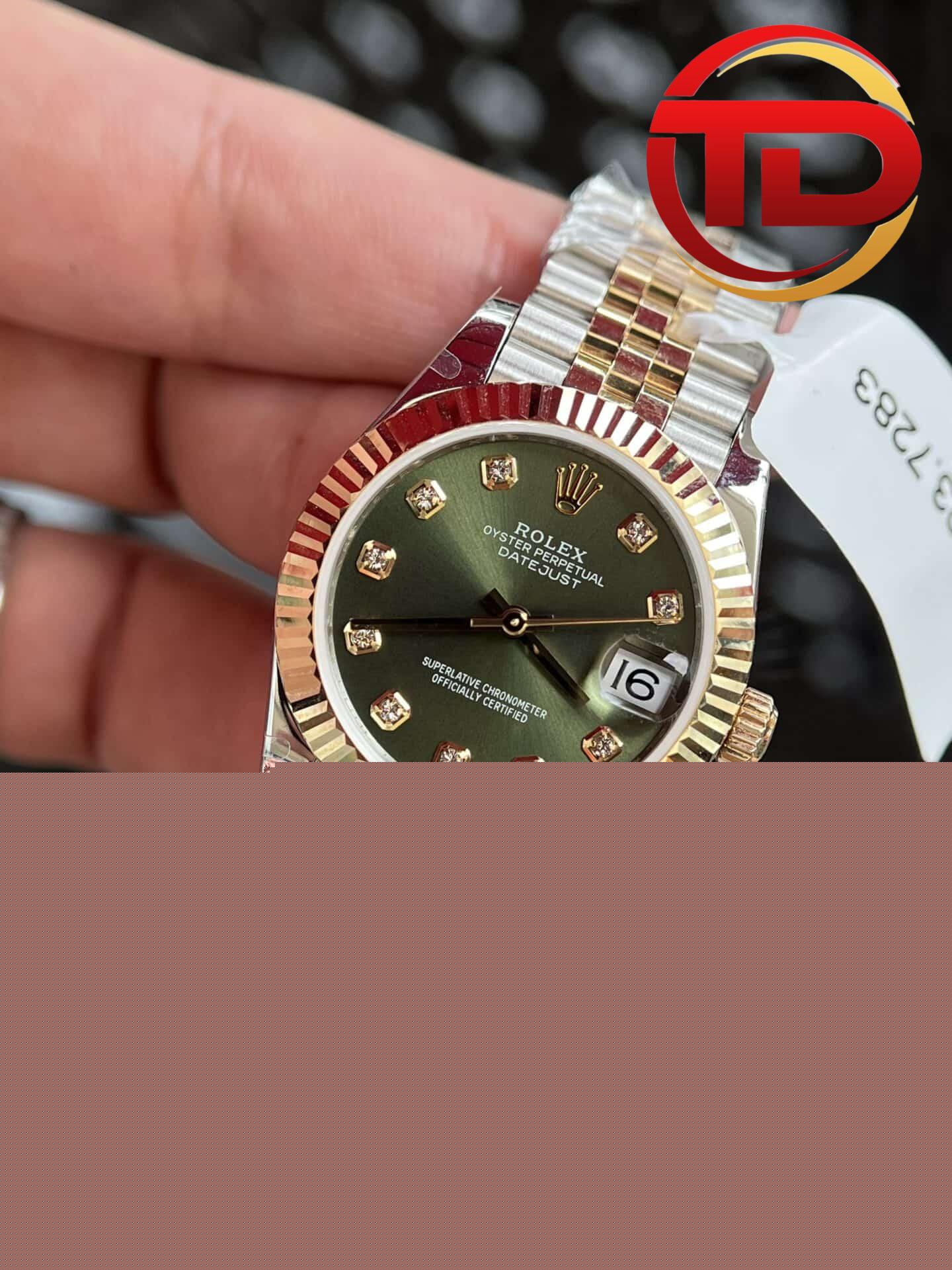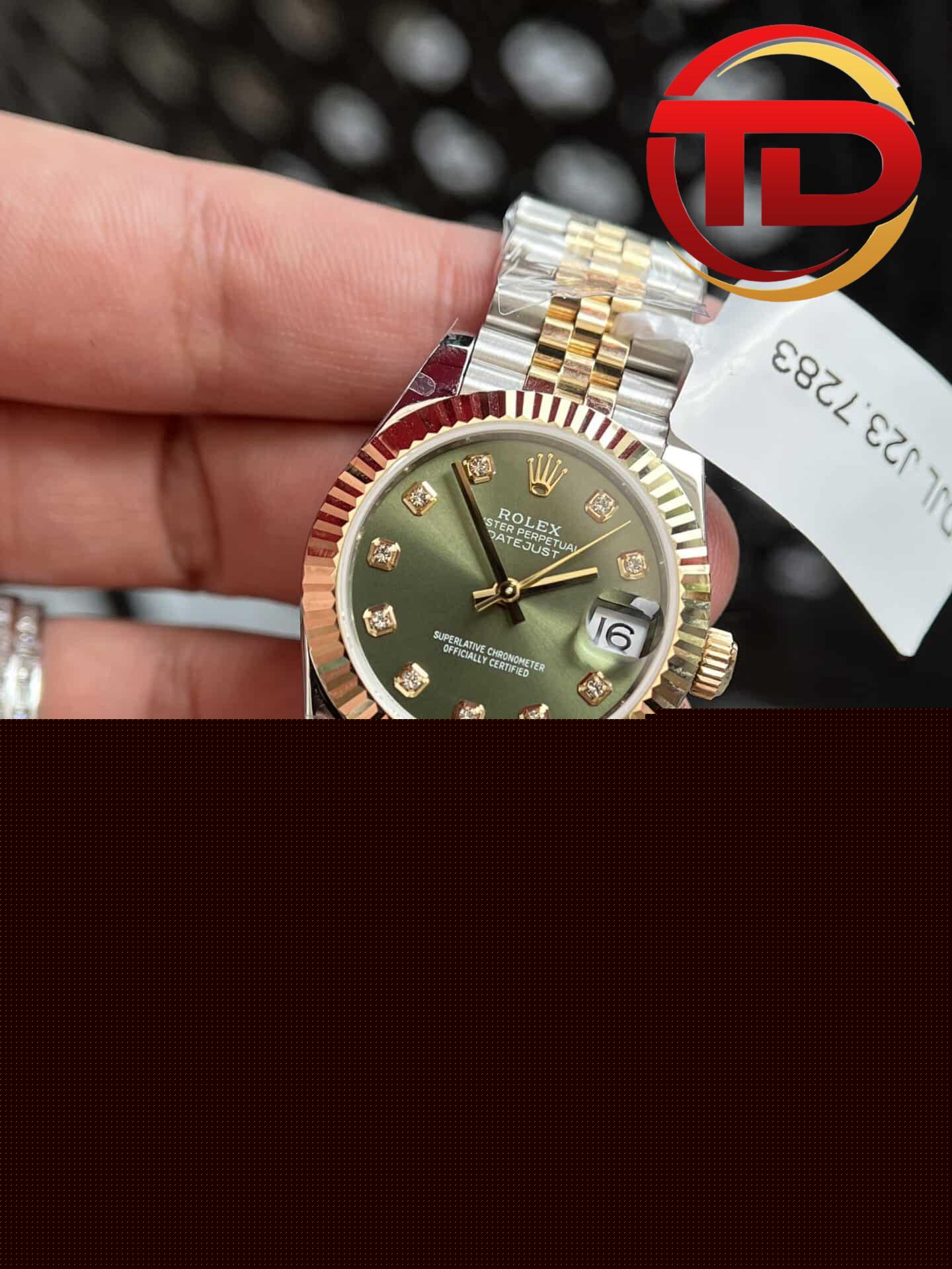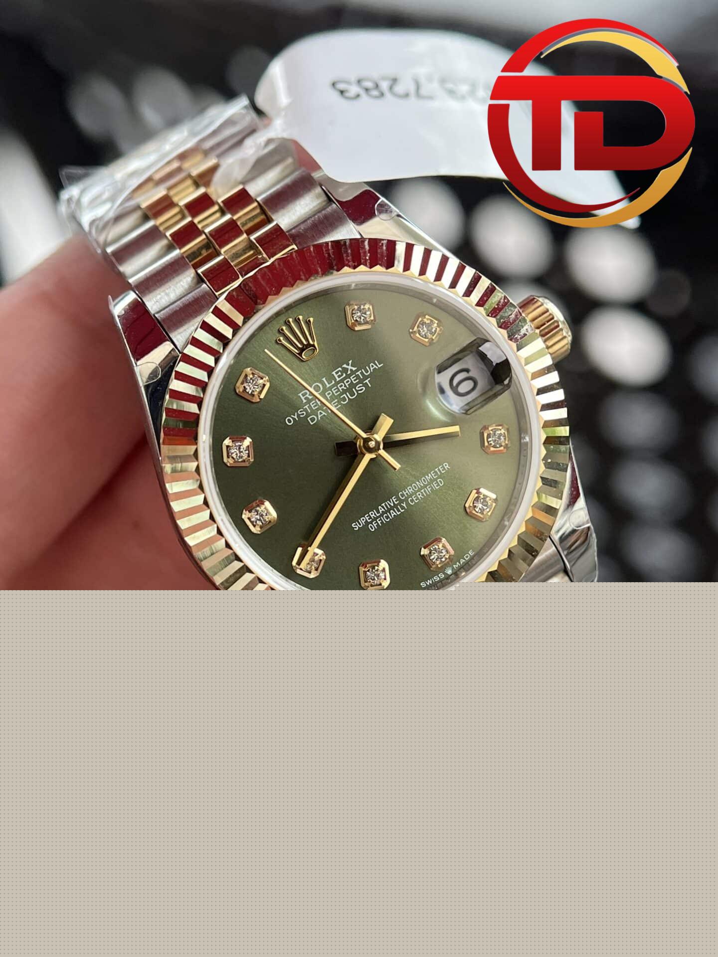PyGlow (The Beautiful Watch World) is delighted to introduce the high-end 1:1 replica version of the Rolex Datejust 278273 ladies’ watch. It features a beautiful 31mm size with a gold capped case, an olive green dial, and stone-set hour markers, making it an exquisite choice for sophisticated women.