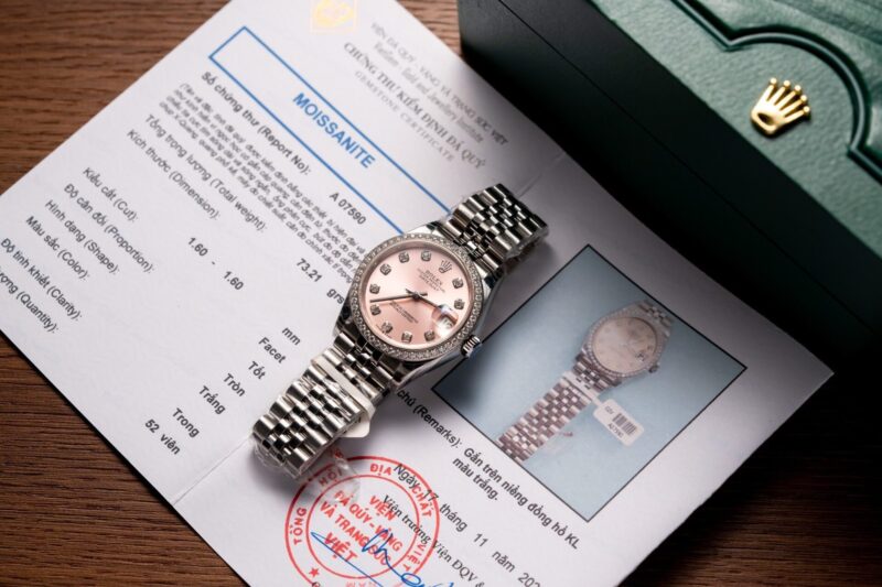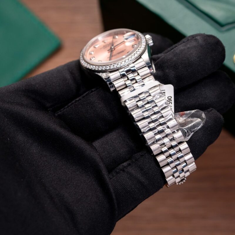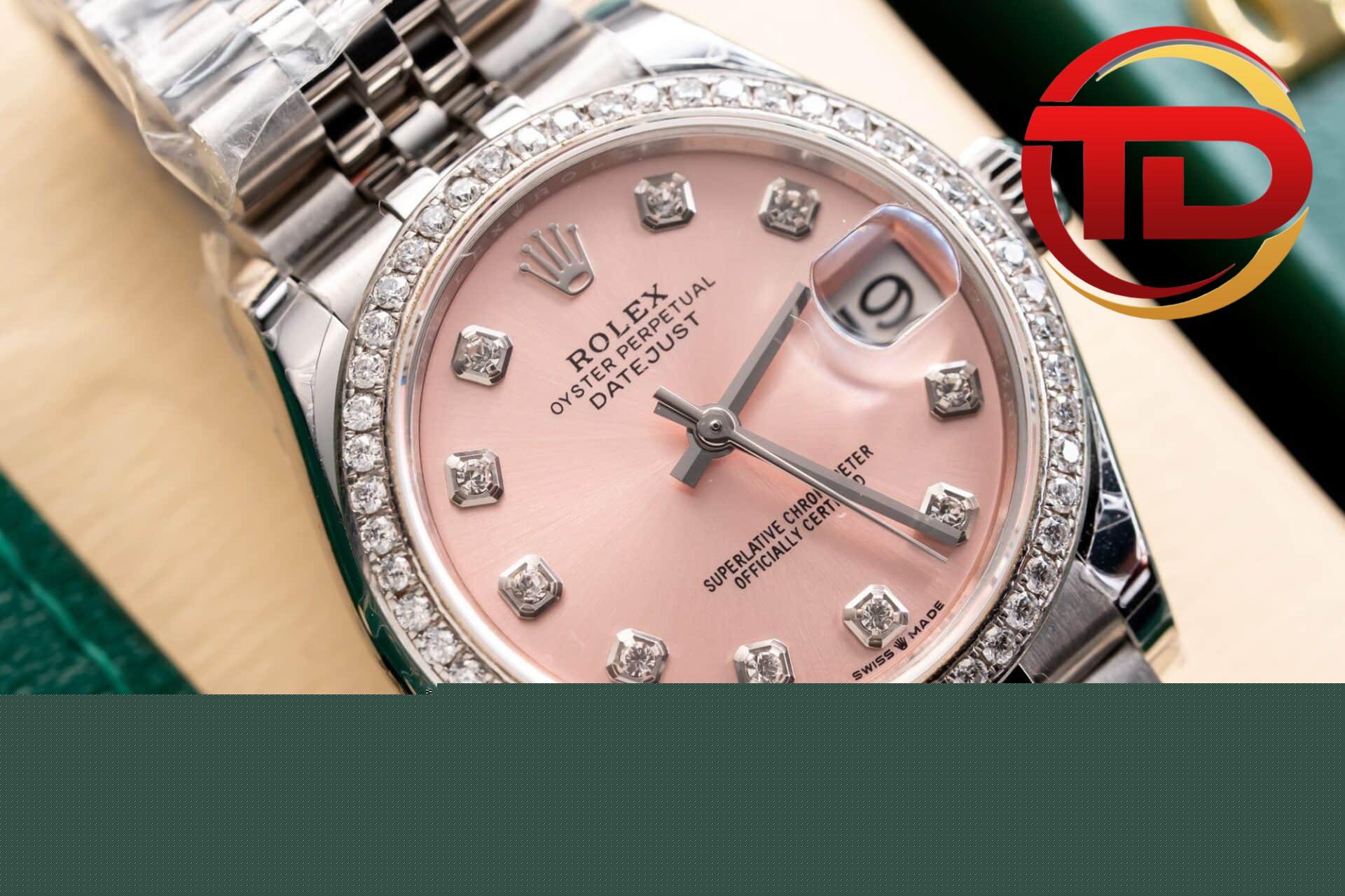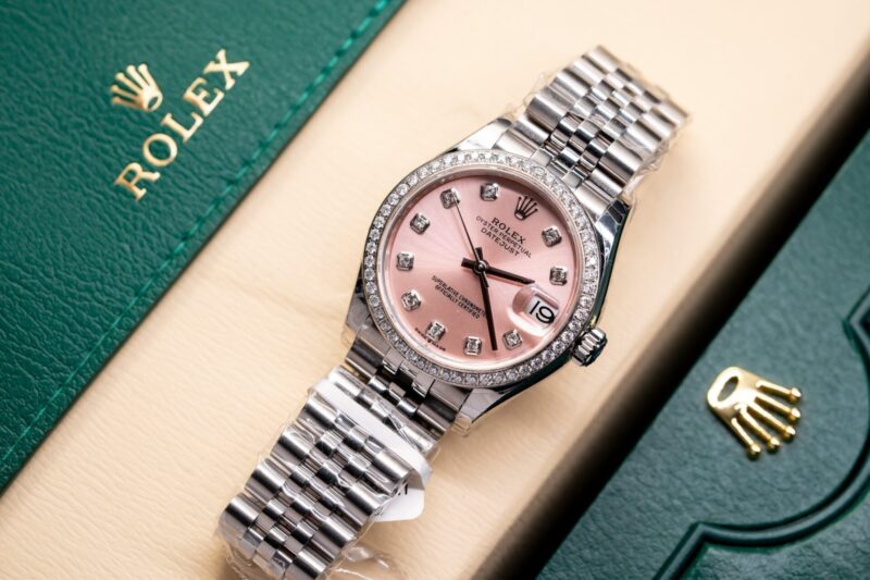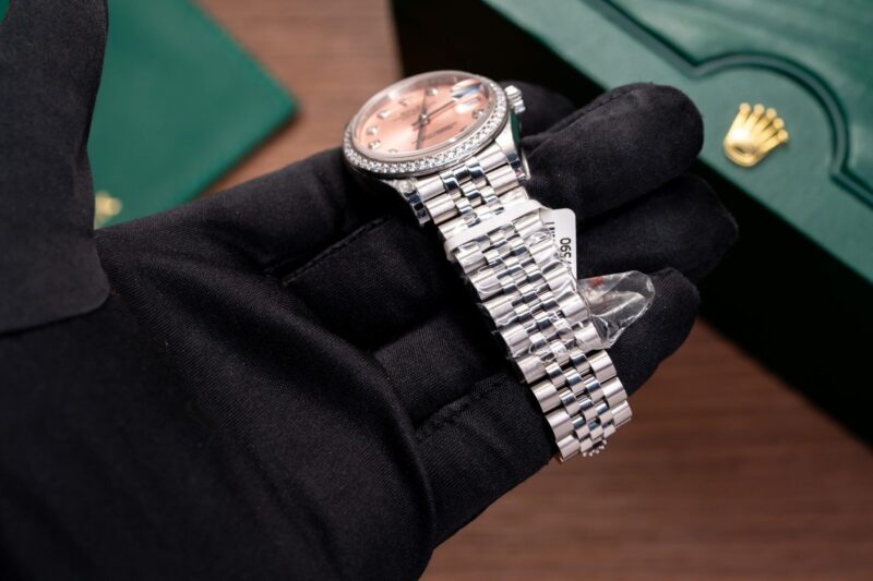 Beautiful Watch World is delighted to introduce the exquisite women’s Rolex Datejust 278383RBR watch, featuring a pink dial with a bezel adorned with moissanite diamonds, in a 1:1 replica version.