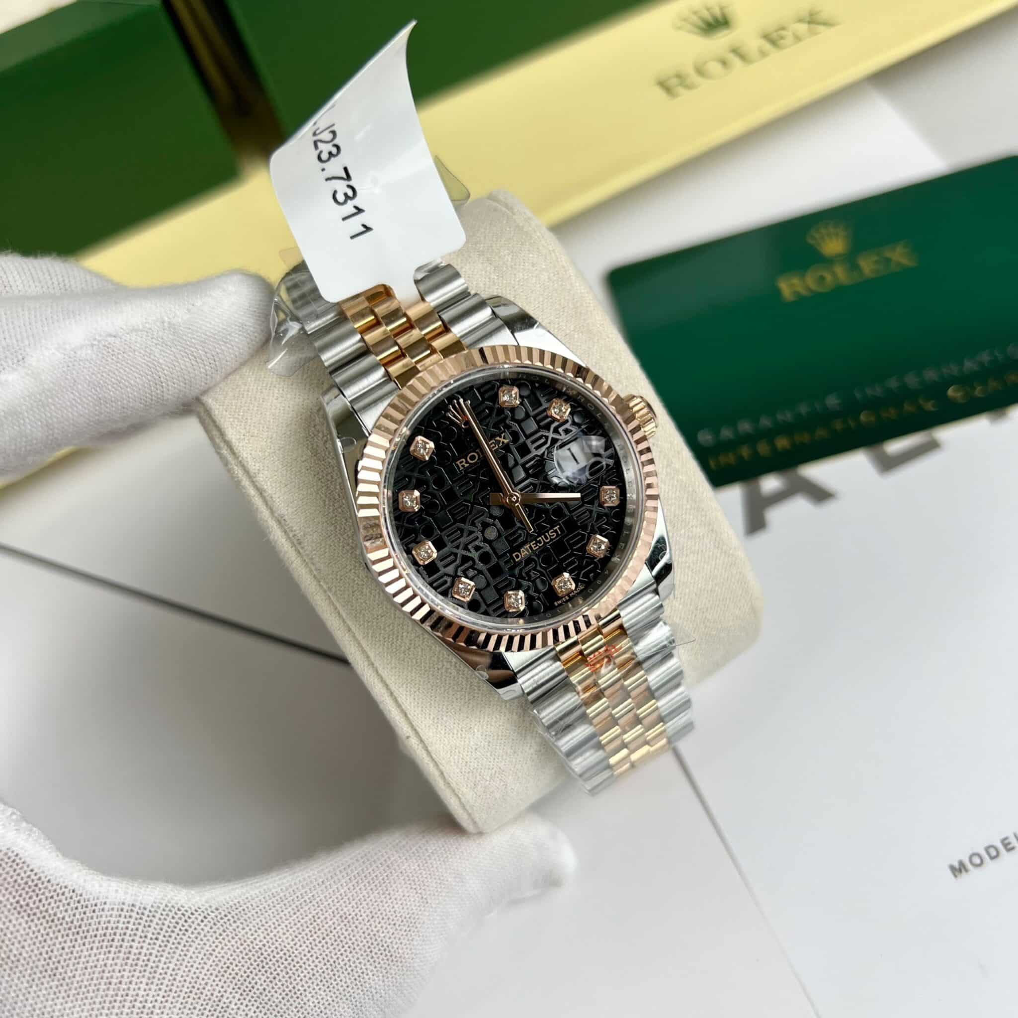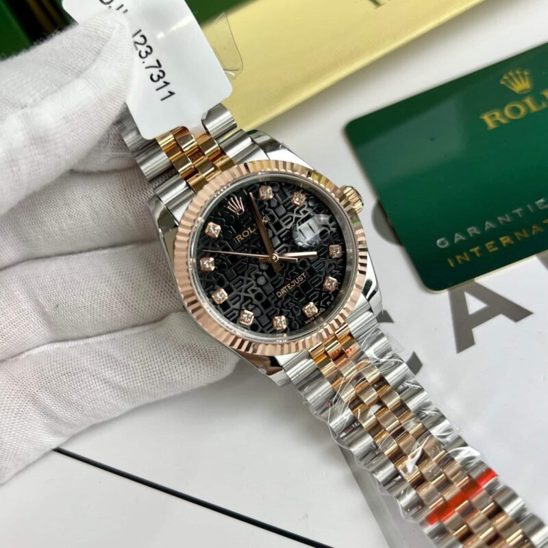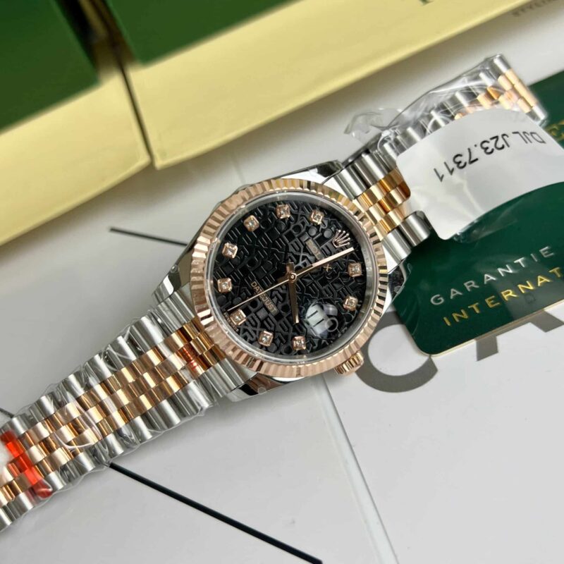 ROLEX DATEJUST 36 BLACK COMPUTER DIAL TWO TONE 18K ROSE GOLD WRAPPED 36MM