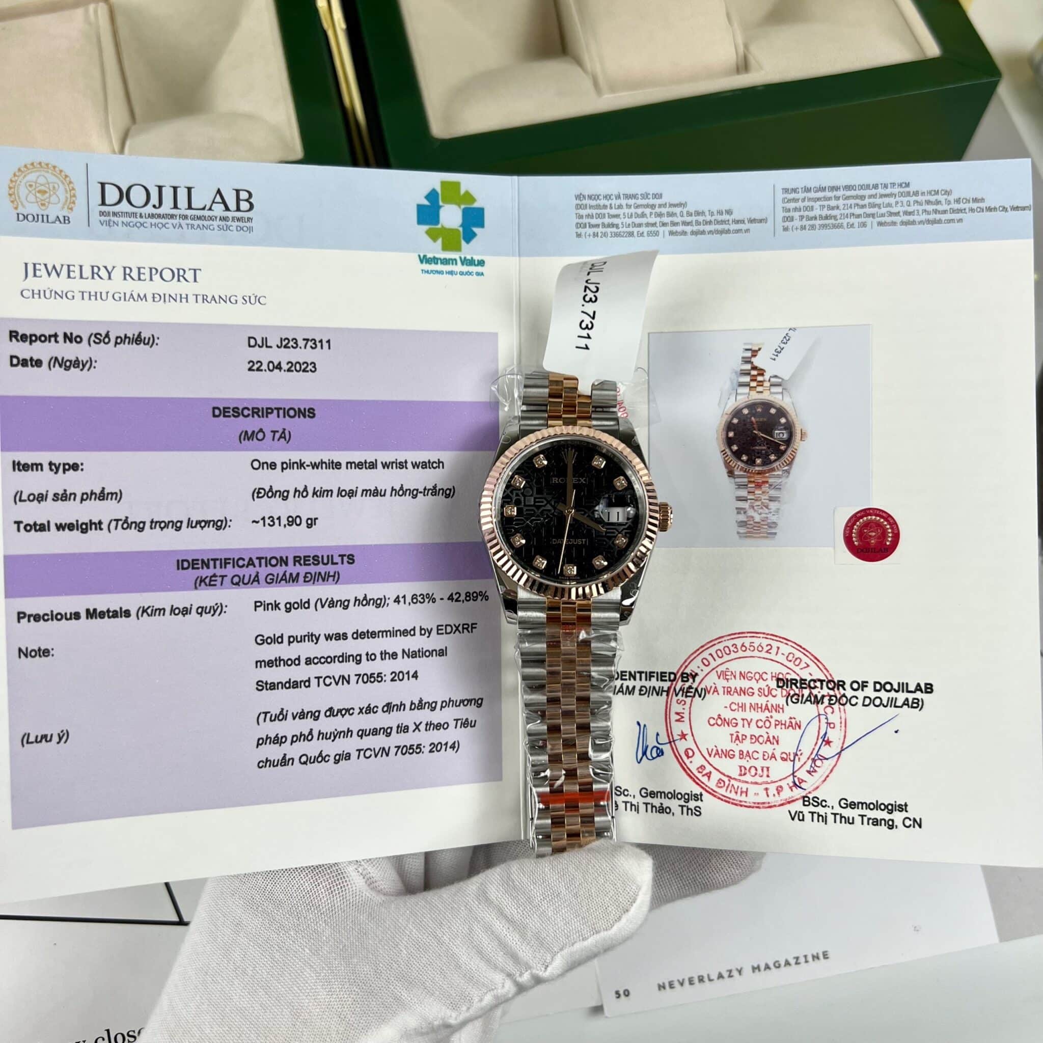 • Case Material: 904L Stainless Steel – 18k Gold Wrapped