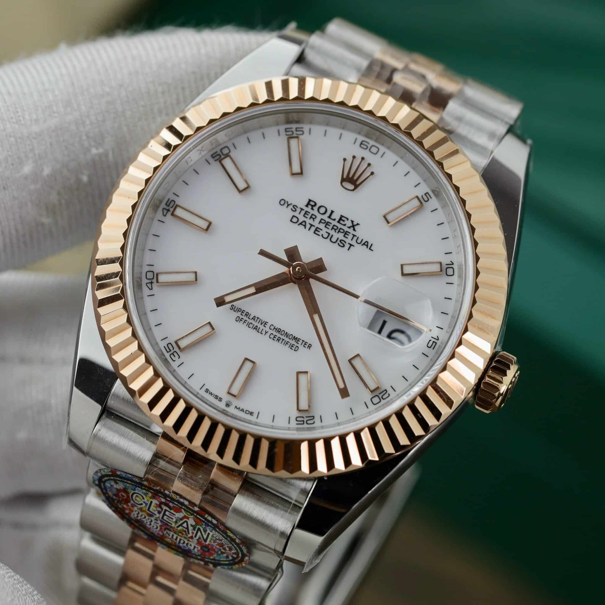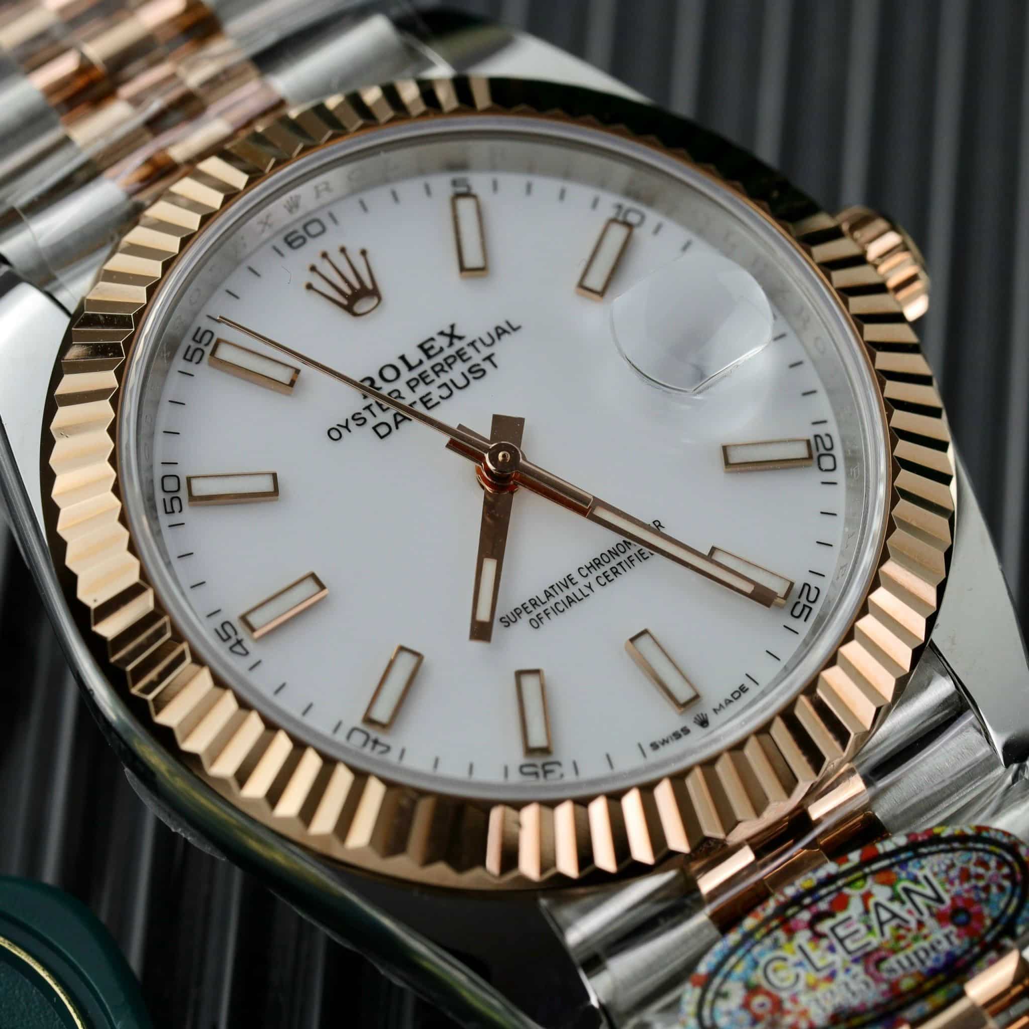 ROLEX DATEJUST 41 TWO TONE ROSE GOLD WHITE DIAL JUBILEE REPLICA CLEAN FACTORY 41MM