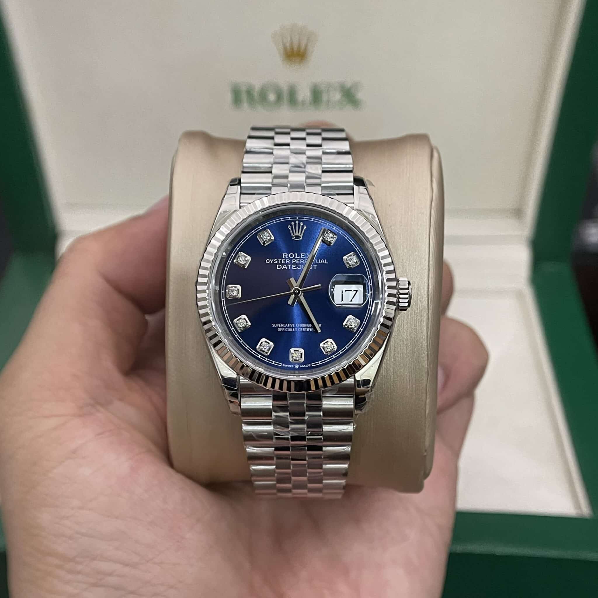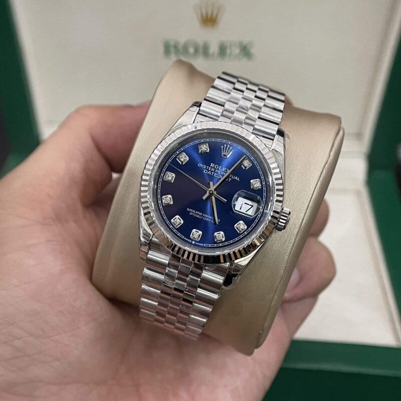 ROLEX DATEJUST BLUE DIAMOND DIAL FLUTED BEZEL JUBILEE SUPER CLONE 36MM
