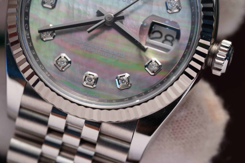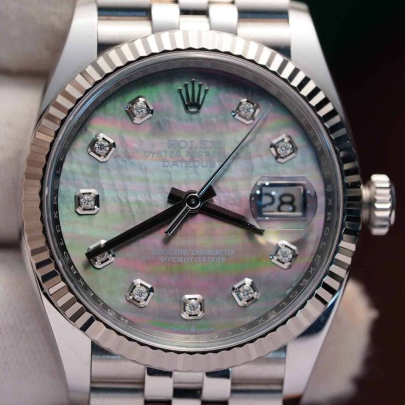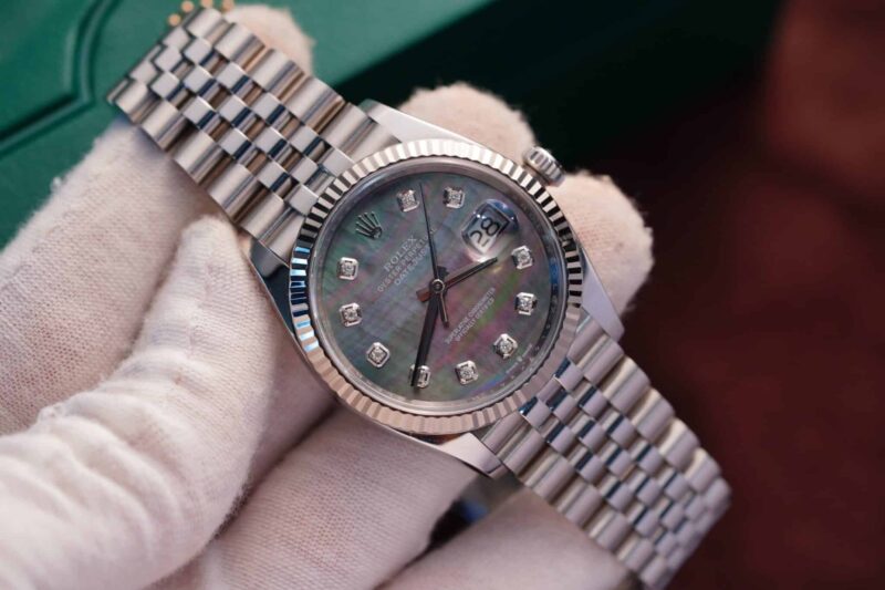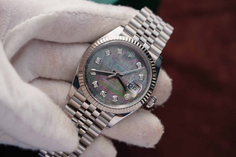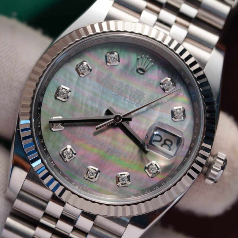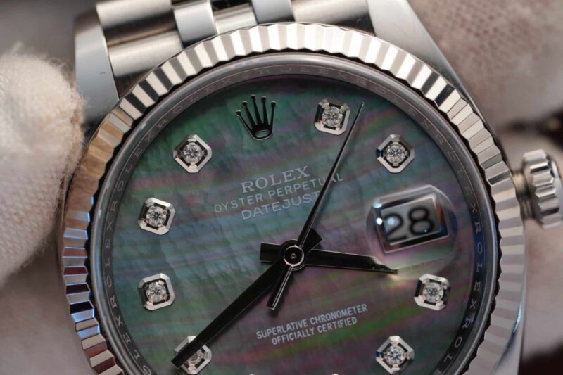 We are delighted to introduce the high-end 1:1 replica version, Rolex Datejust custom MOP dial moissanite numerals 36mm. This is the highest quality replica Rolex Datejust available in the market.