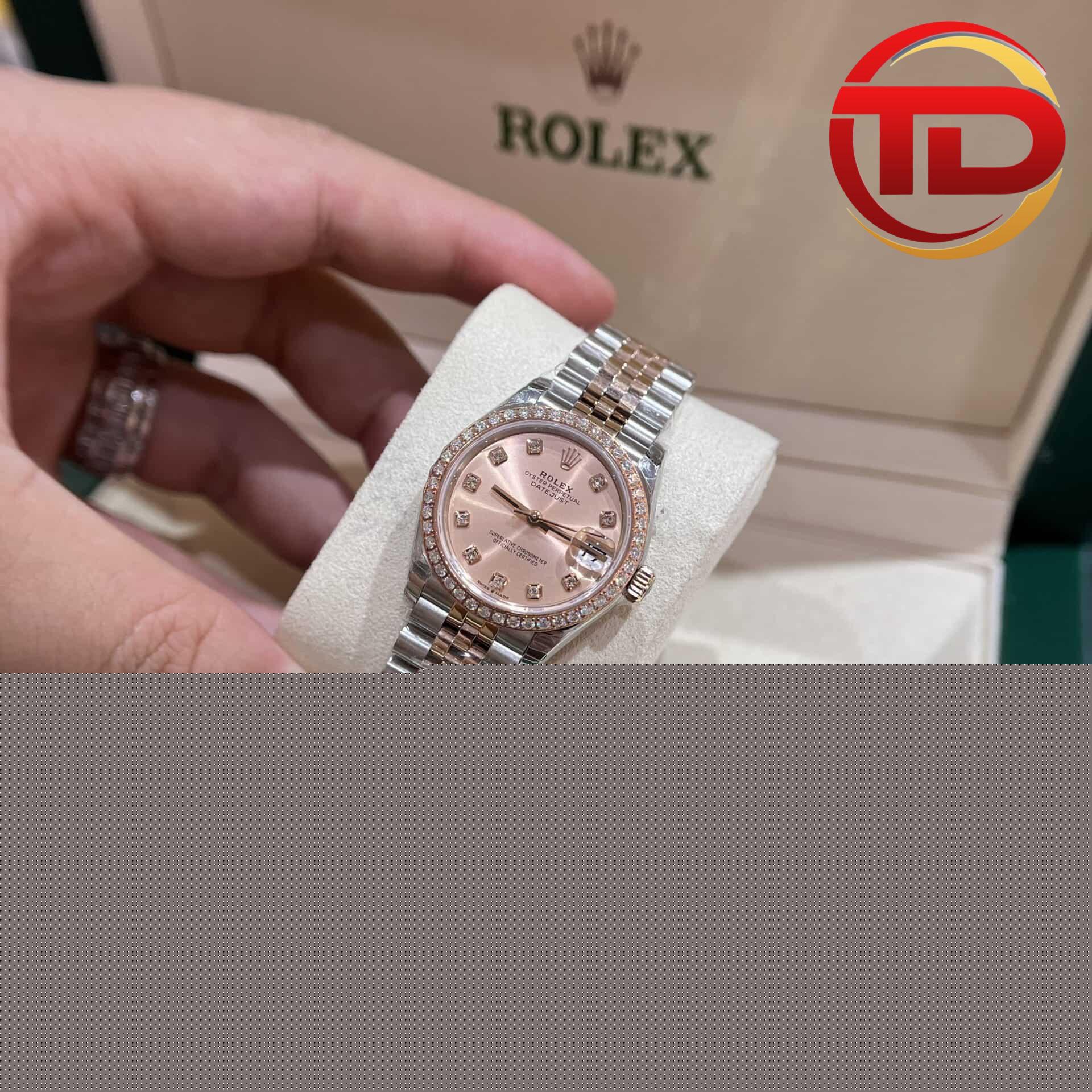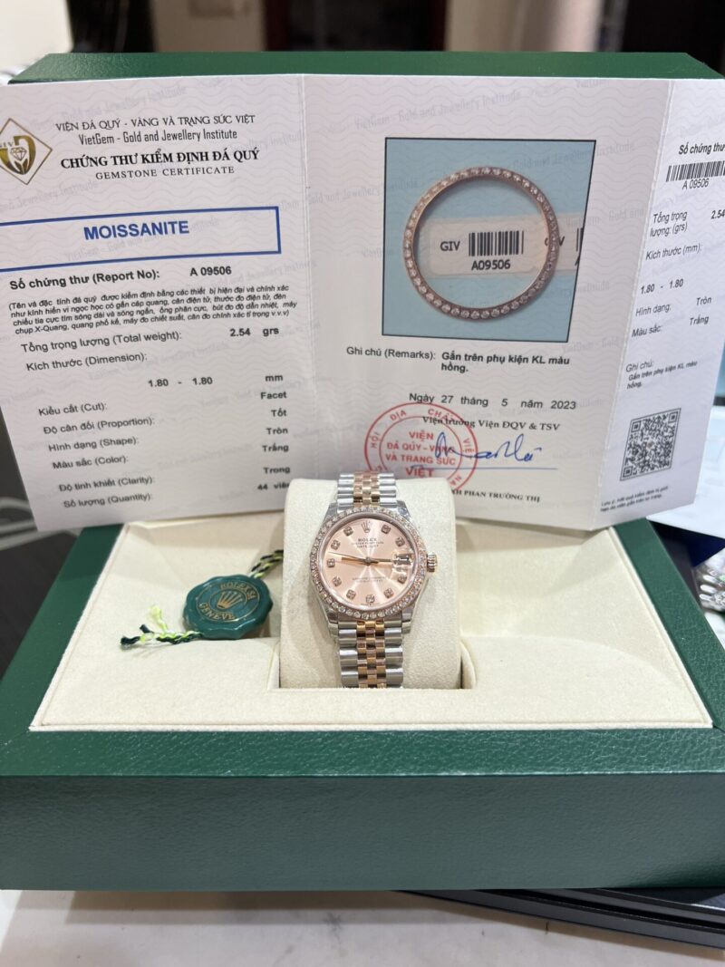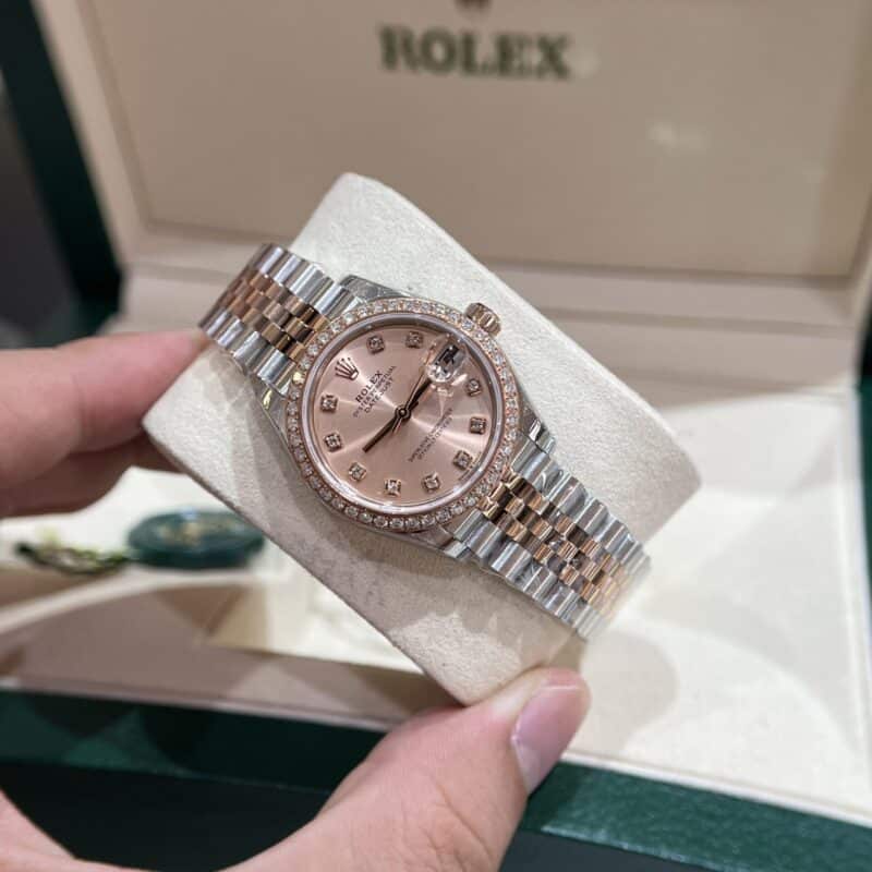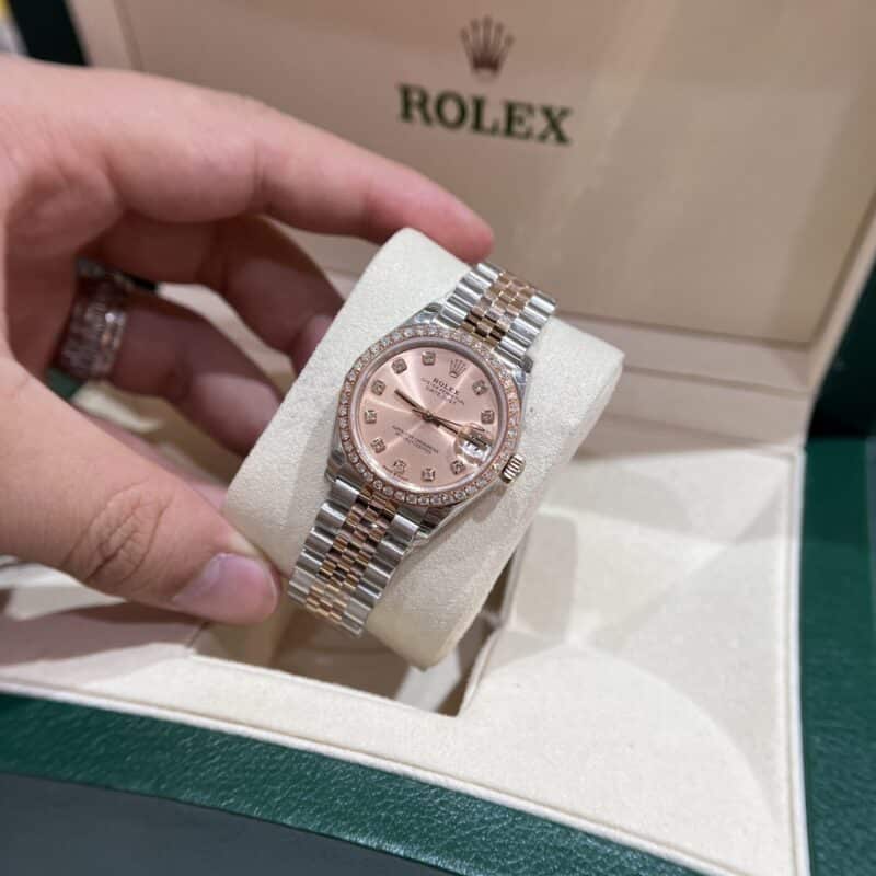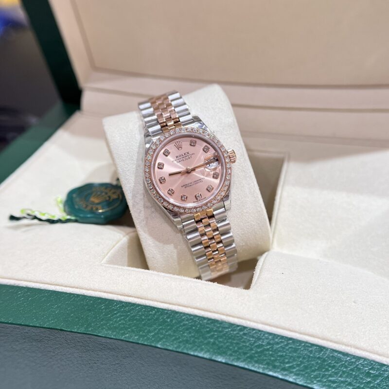 ROLEX DATEJUST LADY DEMI ROSE GOLD CUSTOM MOISSANITE BEZEL 31MM