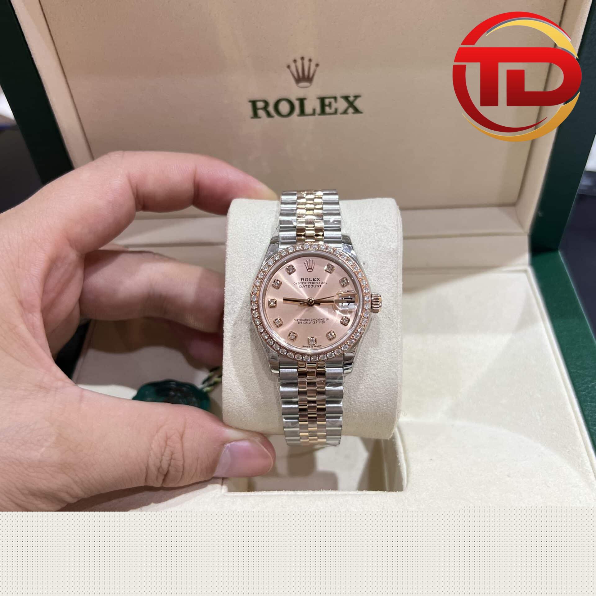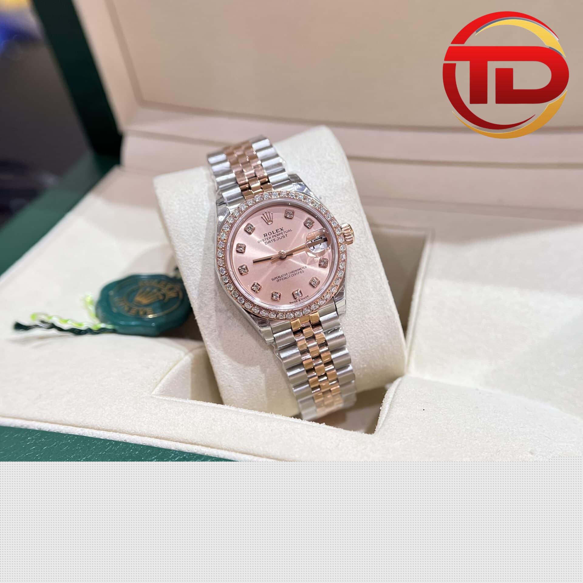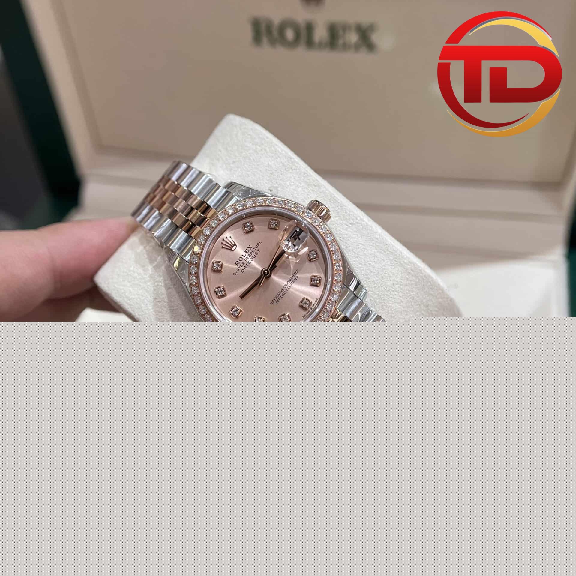 ROLEX DATEJUST LADY DEMI ROSE GOLD CUSTOM MOISSANITE BEZEL 31MM