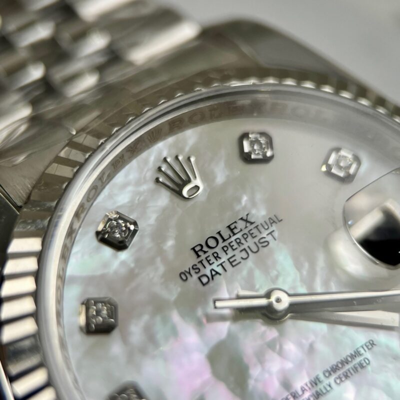 ROLEX DATEJUST MOP DIAL CUSTOM MOISSANITE HOUR MARKERS BEST REPLICA 36MM