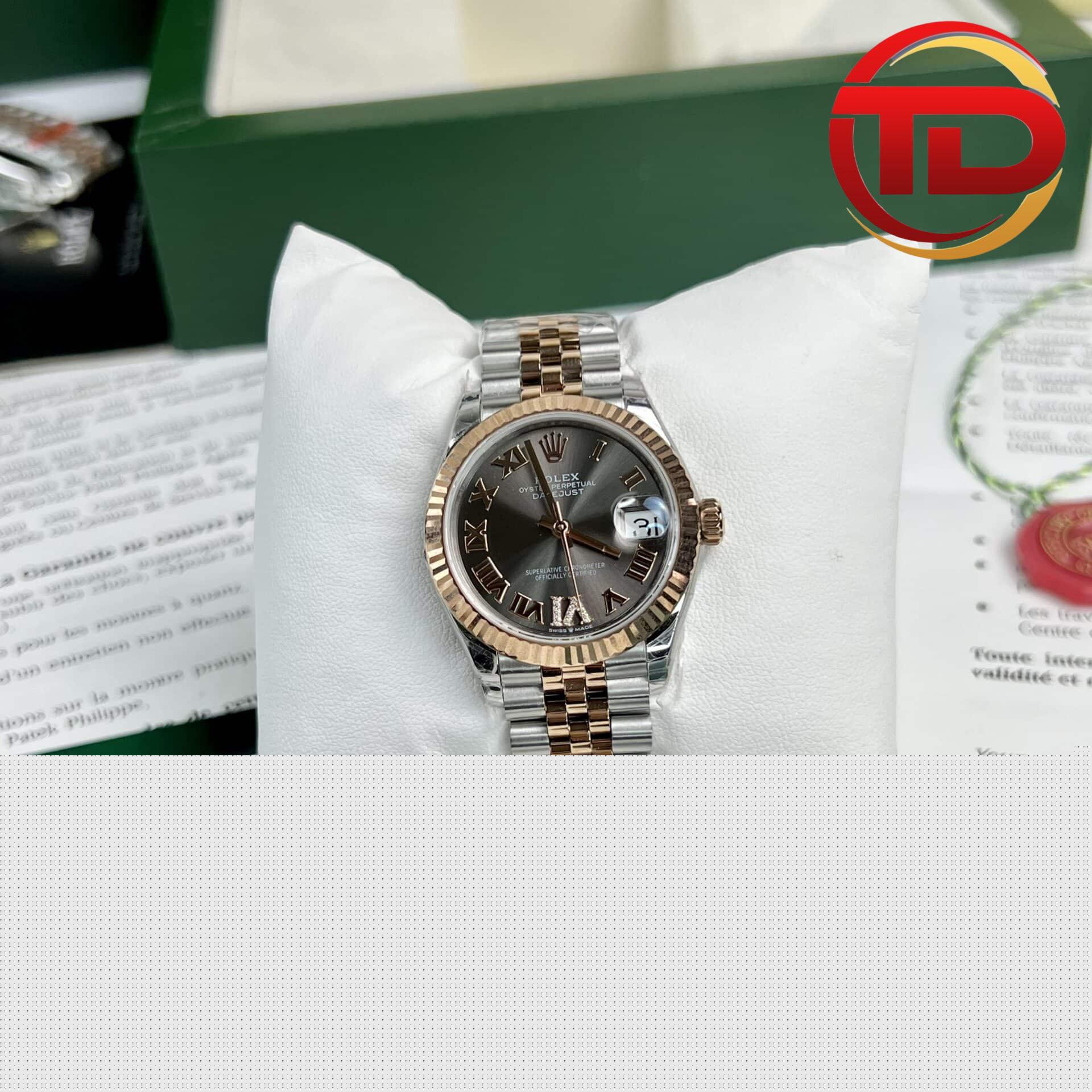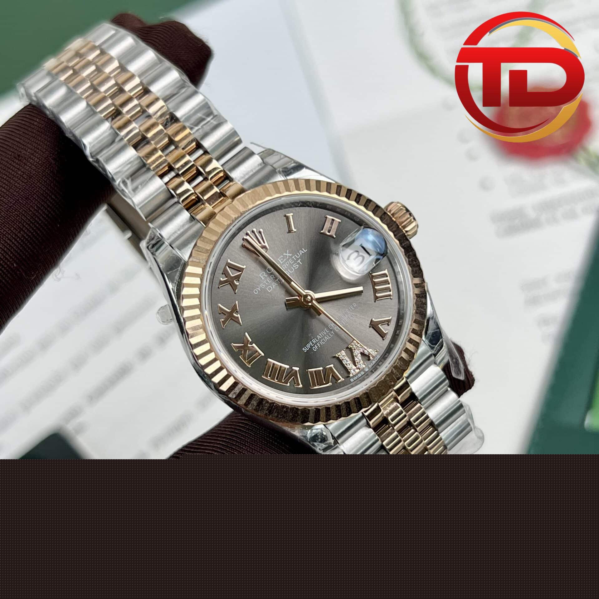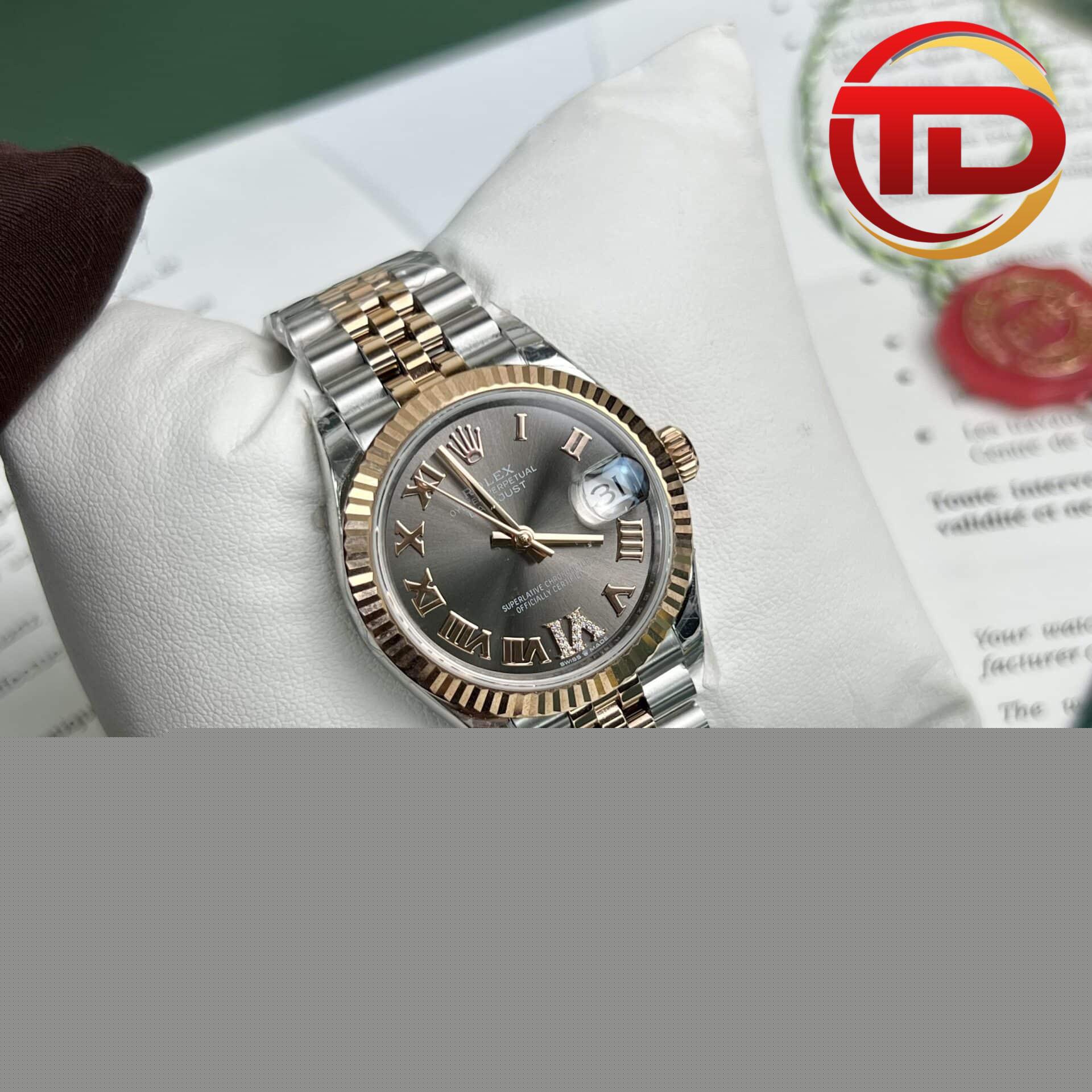 ĐỒNG HỒ ROLEX DATEJUST NỮ MẶT SỐ XÁM CỌC SỐ LA MÃ REP 1:1 EW 31MM