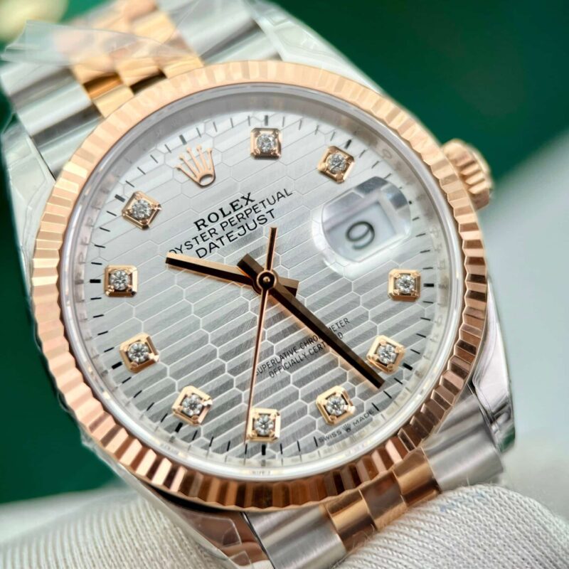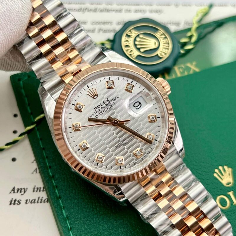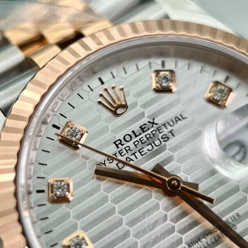 ROLEX DATEJUST TWO TONE SILVER FLUTED MOTIF DIAL JUBILEE SUPER CLONE 36MM