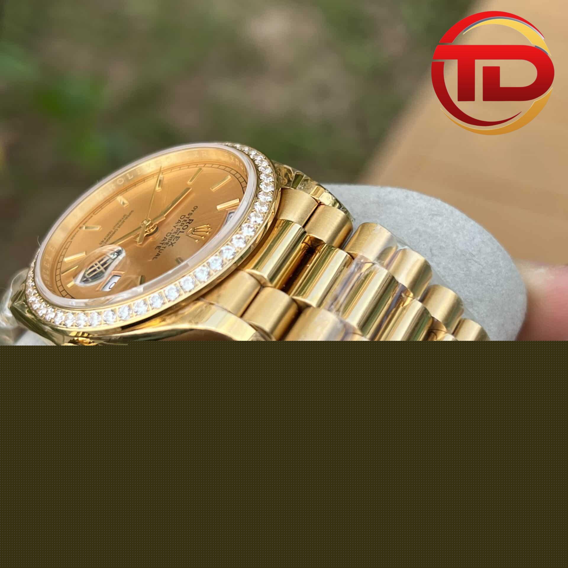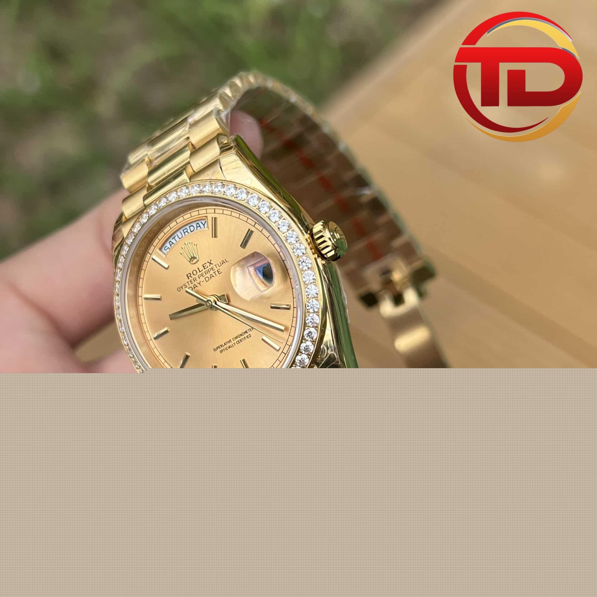 ĐỒNG HỒ ROLEX DAY-DATE 128348RBR MÀU VÀNG NIỀNG ĐÁ REP 11 EW 36MM