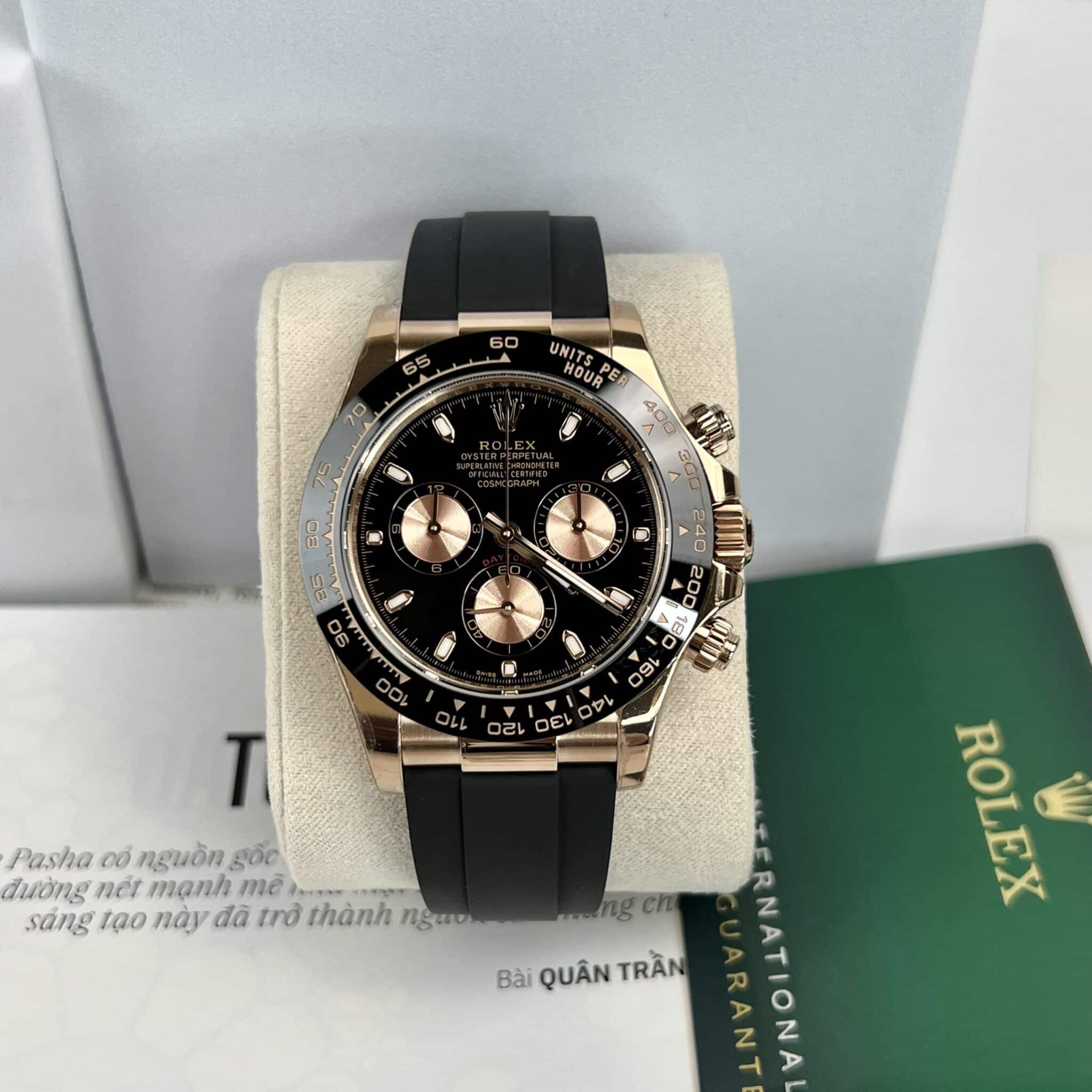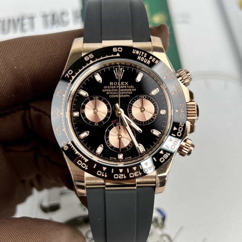 We are pleased to introduce to our valued customer the Replica Rolex Daytona 116515LN-0017 Black dial Rose Gold and Oysterflex strap, this is the best replica Rolex Daytona available in the market with the Calibre 4130 Super Clone 1:1 Movement.