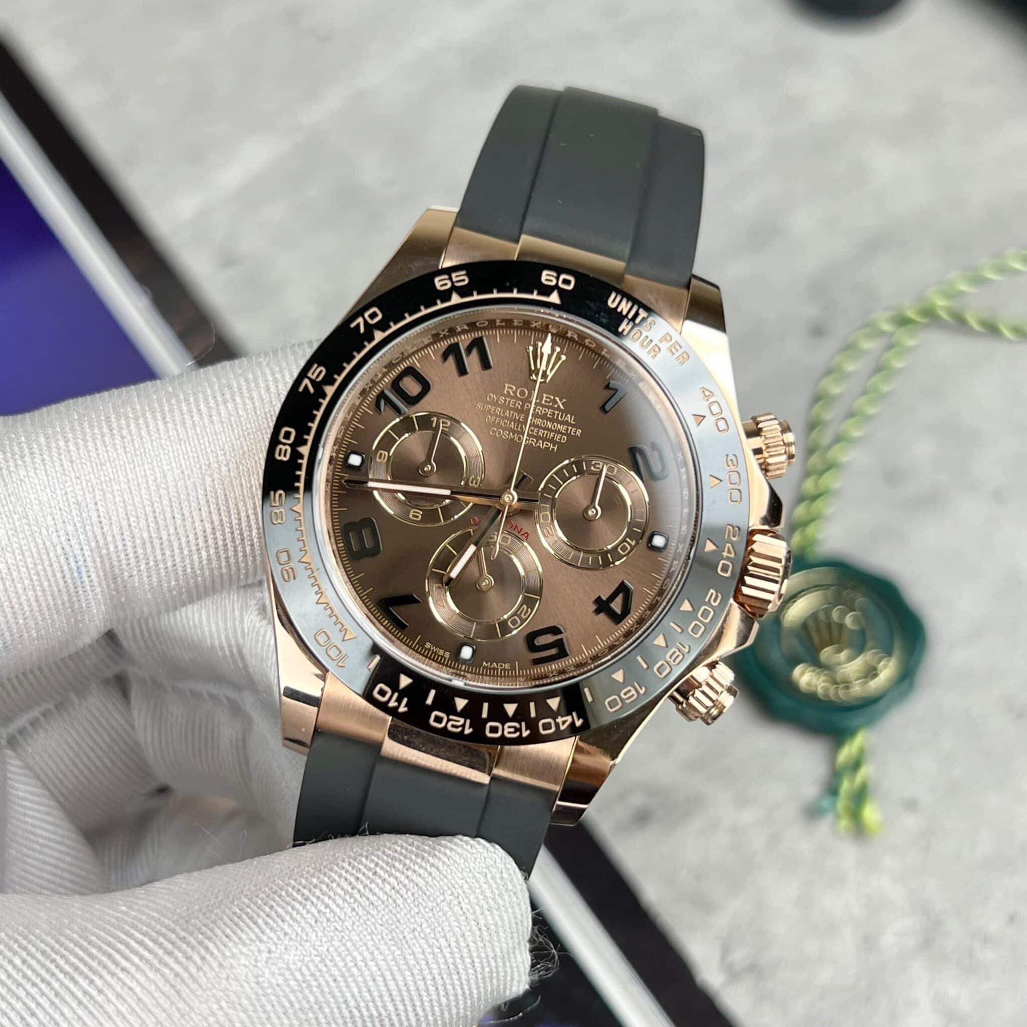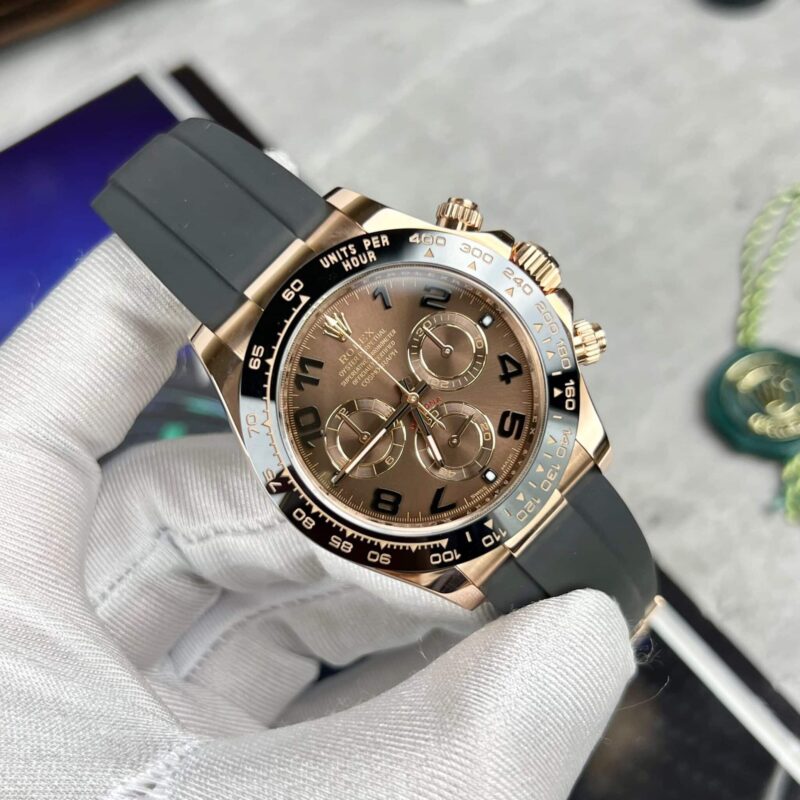 Taking its place among the Rolex watch family at Beautiful Watch World today is the Rolex Cosmograph Daytona reference number 116515LN, featuring a standout chocolate dial with 18k rose gold wrapped and oysterflex strap best quality replica.