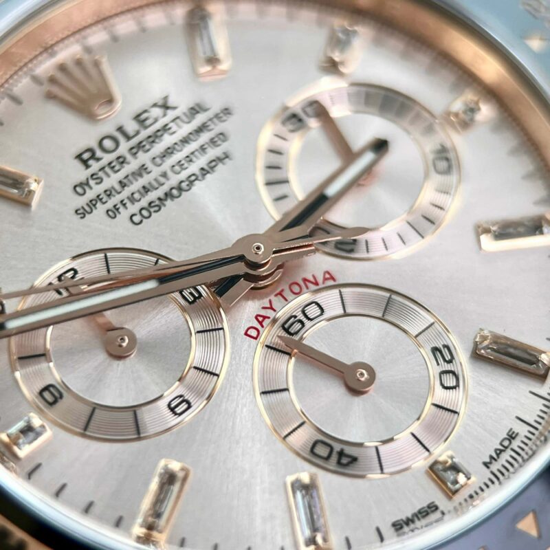 Taking its place among the Rolex watch family at Beautiful Watch World today is the Rolex Cosmograph Daytona reference number 116515LN, featuring a pink and baguette diamond-set dial with 18k rose gold wrapped and oysterflex strap best quality replica.