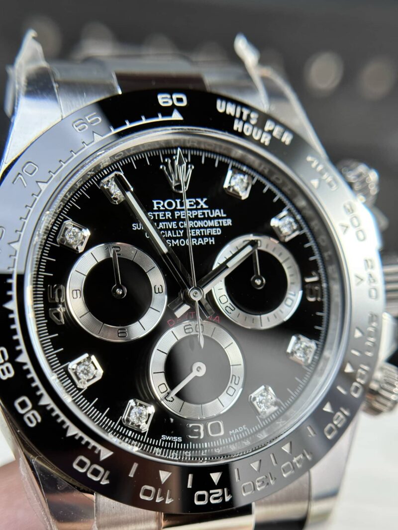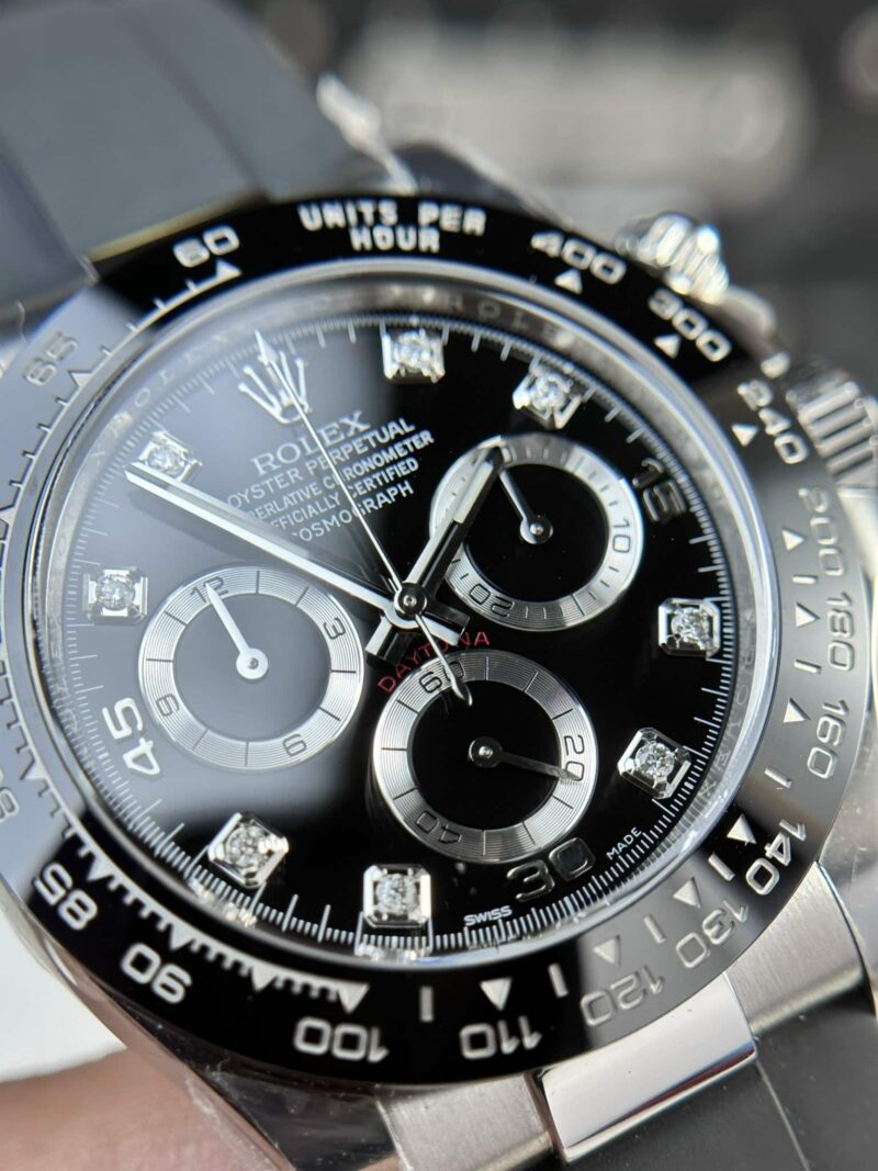 DETAILS OF THE ROLEX DAYTONA GODZILLA BLACK DIAMOND DIAL OYSTERFLEX BEST REPLICA CLEAN FACTORY 40MM