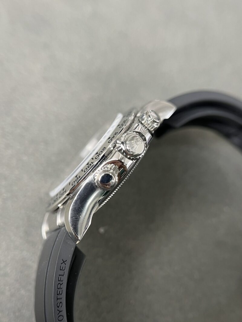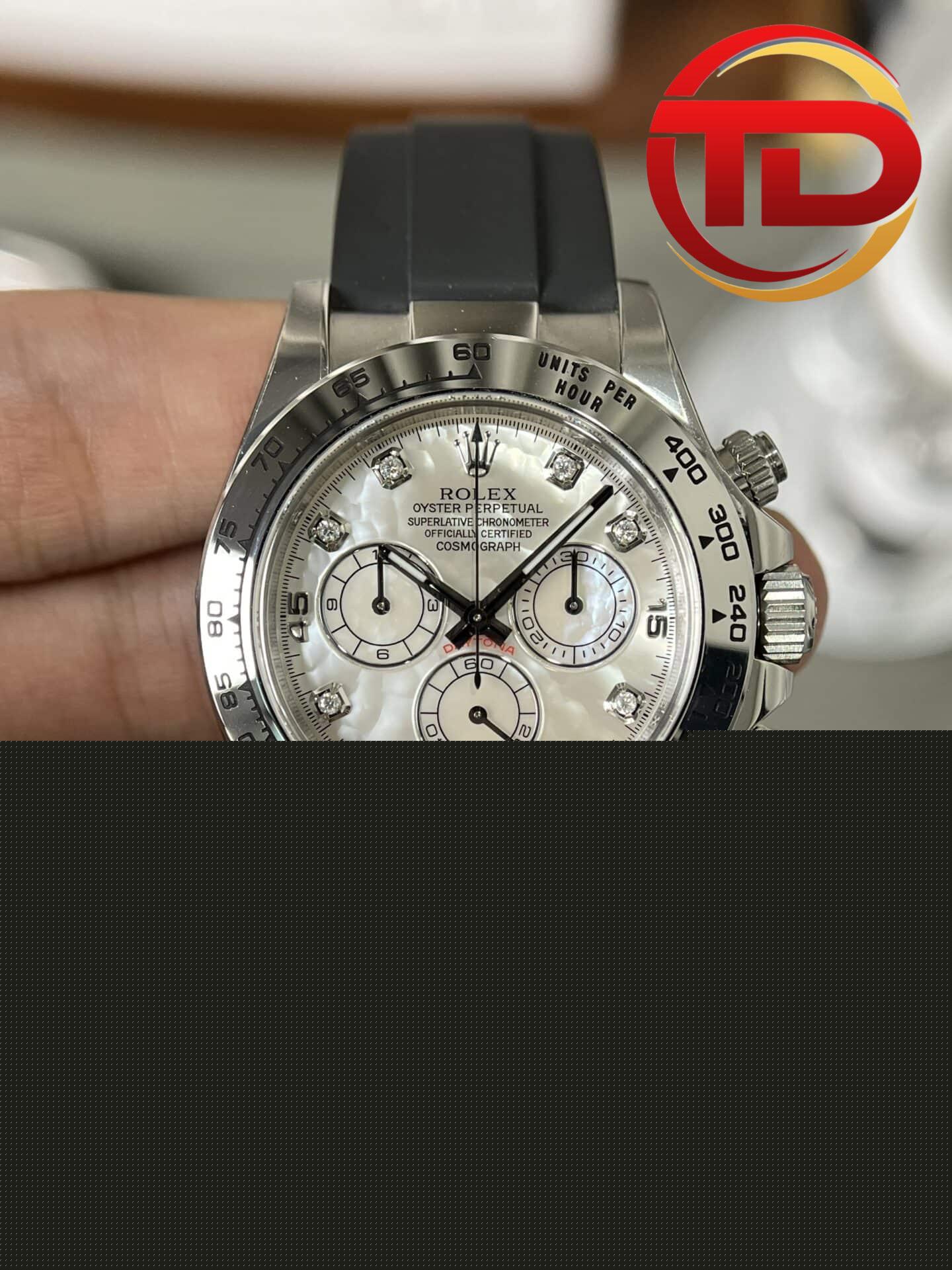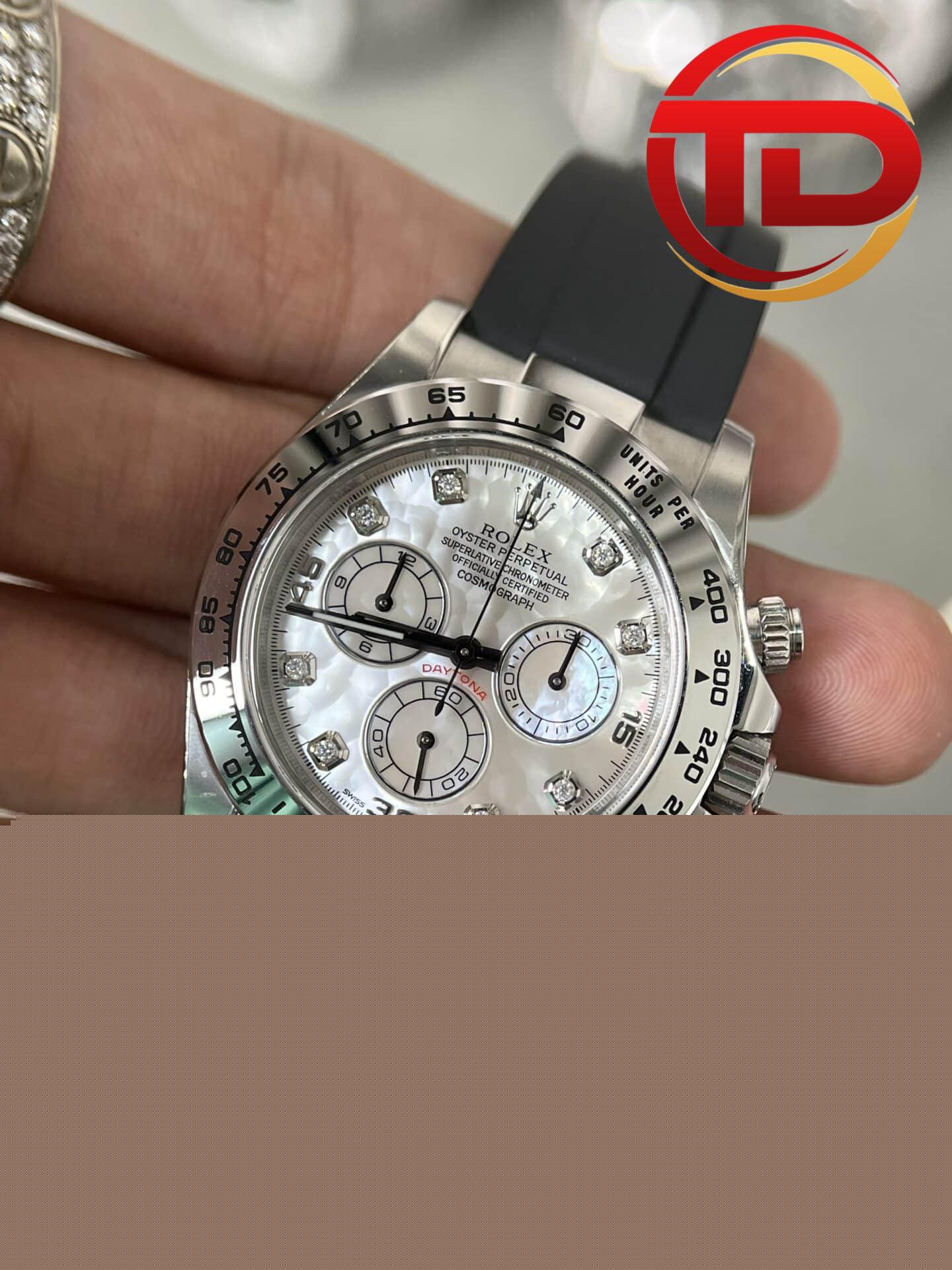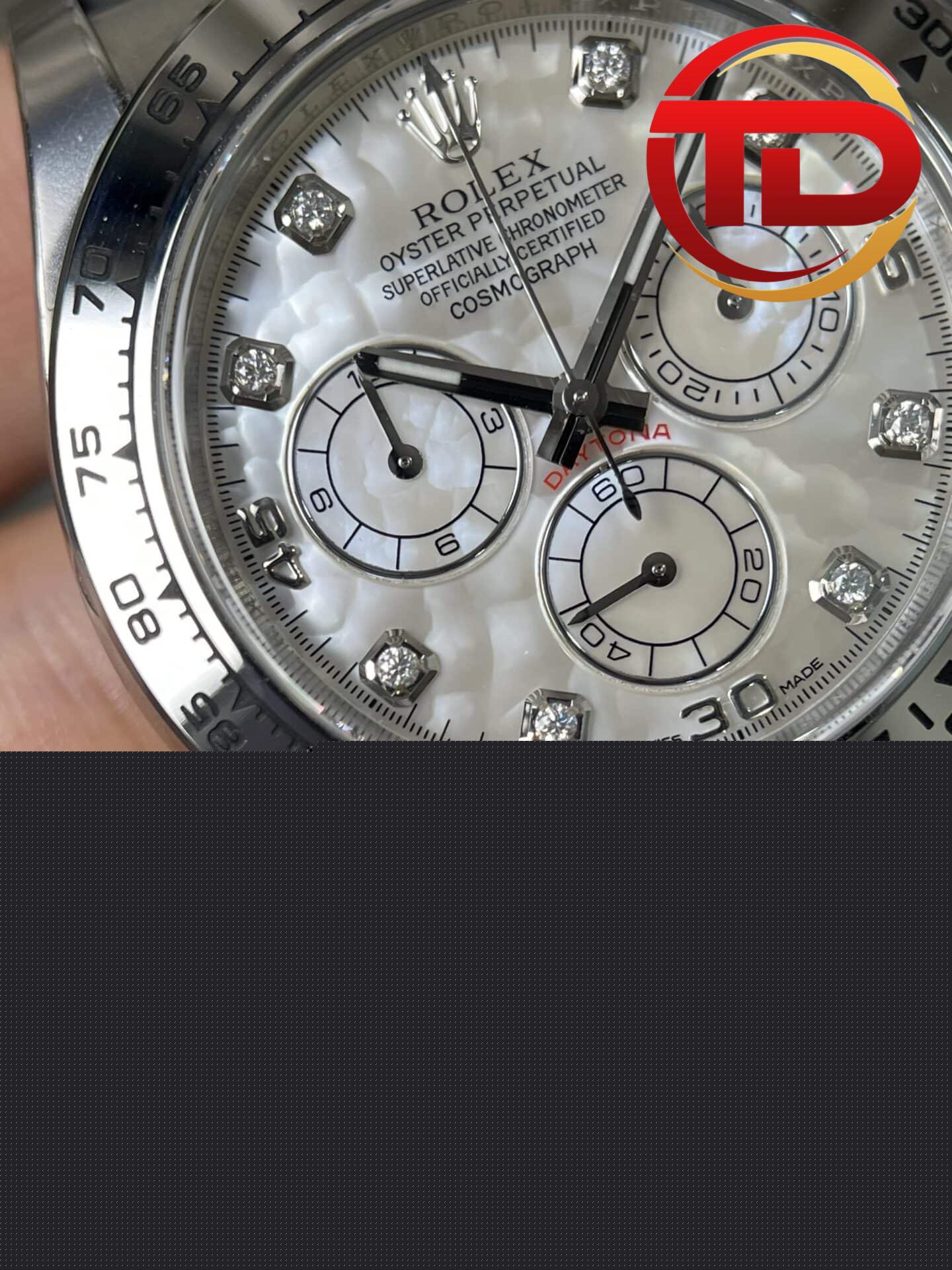 PyGlow introduces the Rolex Cosmograph Daytona replica watch with a Mother of Pearl dial and diamond moissanite hour markers from the BT Factory.