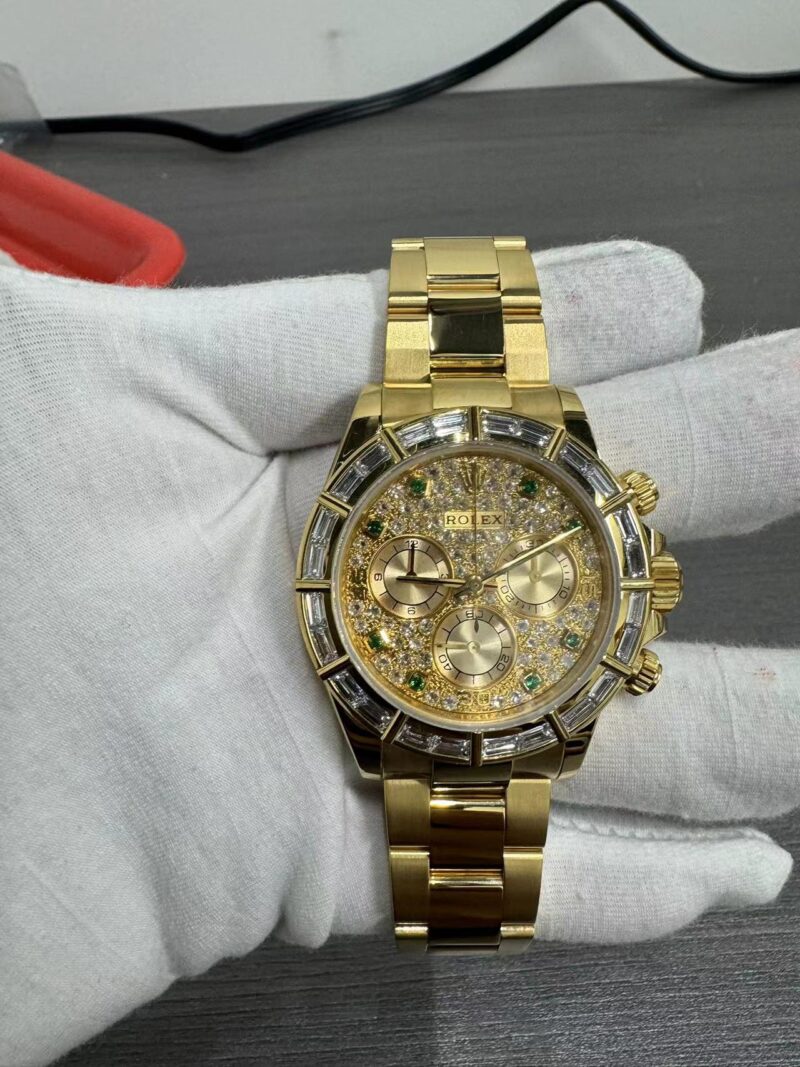 ROLEX DAYTONA CUSTOM NATURAL DIAMOND DIAL CVD DIAMOND BEZEL 18K GOLD WRAPPED 40MM