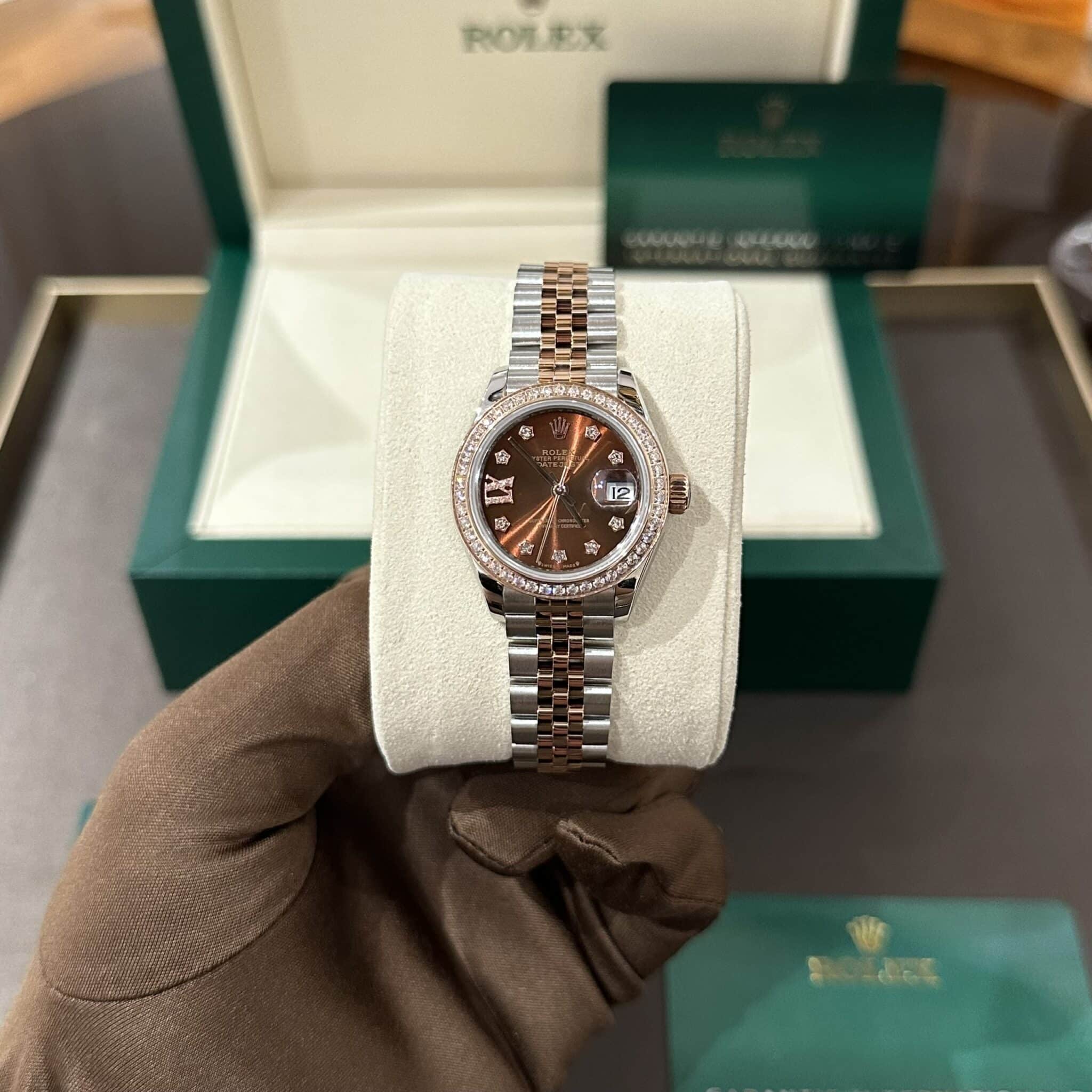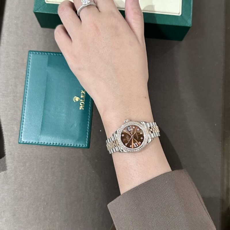 TDWatch is pleased to introduce the Rolex Lady Datejust 279381RBR chocolate dial diamond bezel super clone 1:1 women’s watch.
