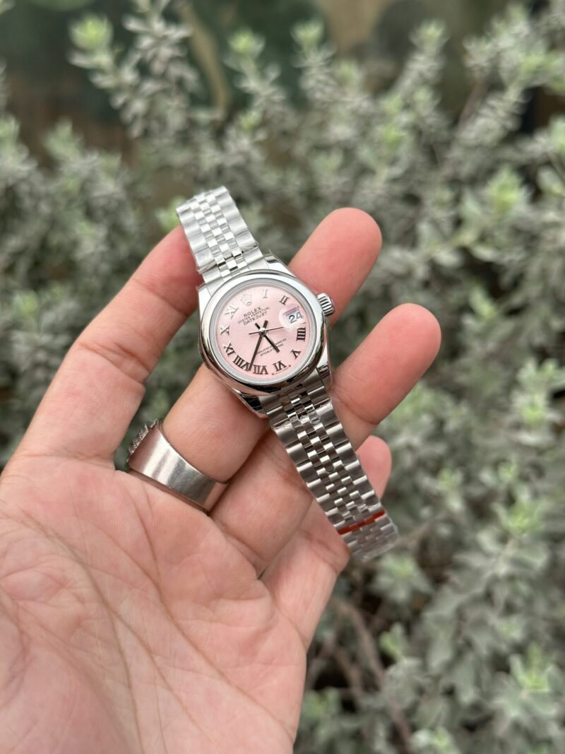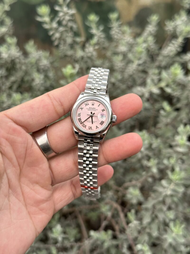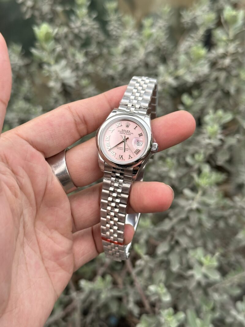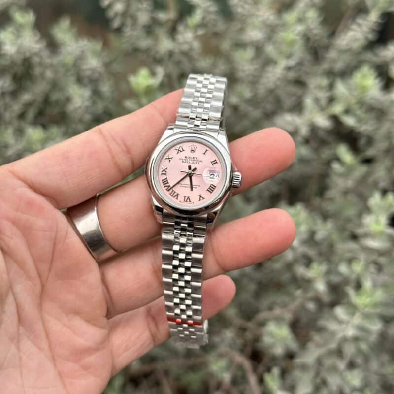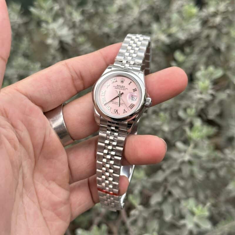 ROLEX LADY DATEJUST PINK ROMAN DIAL SMOOTH BEZEL REPLICA 28MM