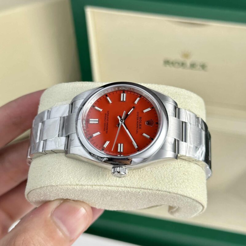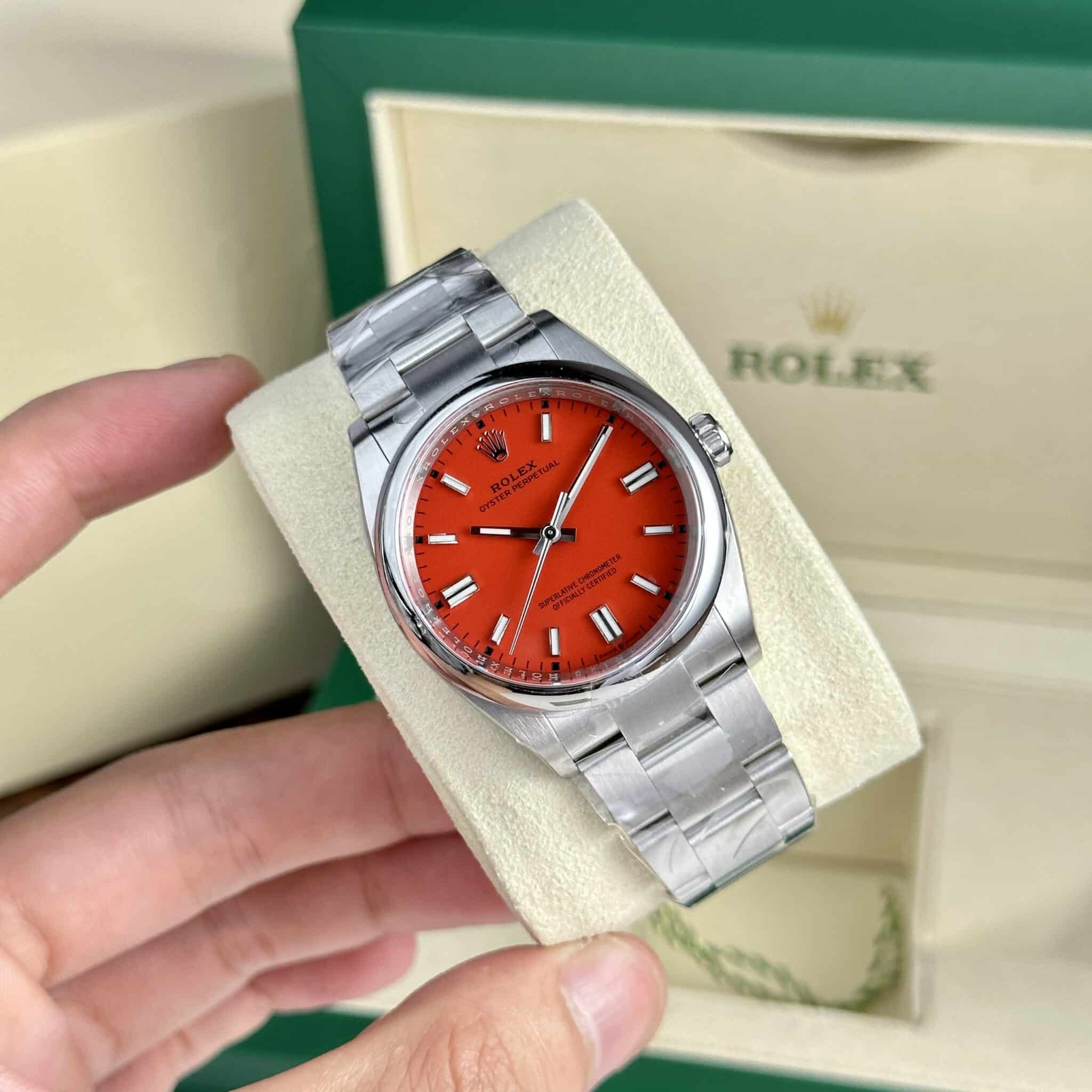 pyglow.com.vn is honored to introduce the top quality best replica watch of the Rolex Oyster Perpetual 41 124300-0007 with a red coral dial oyster bracelet from Clean Factory.