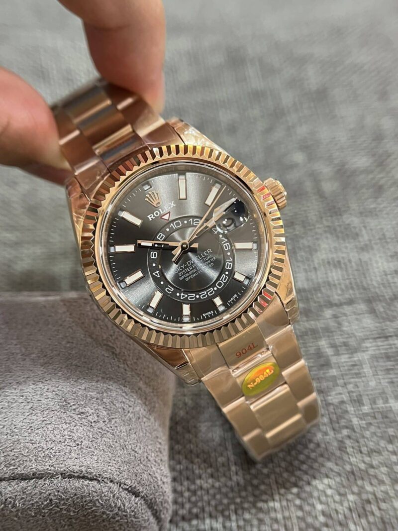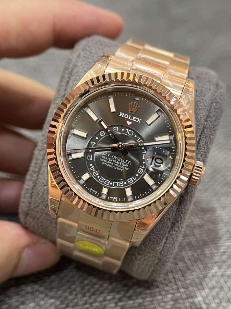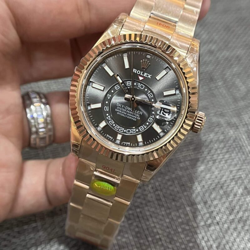 ROLEX SKY-DWELLER ROSE GOLD SLATE DIAL OYSTER BRACELET BEST REPLICA 42MM