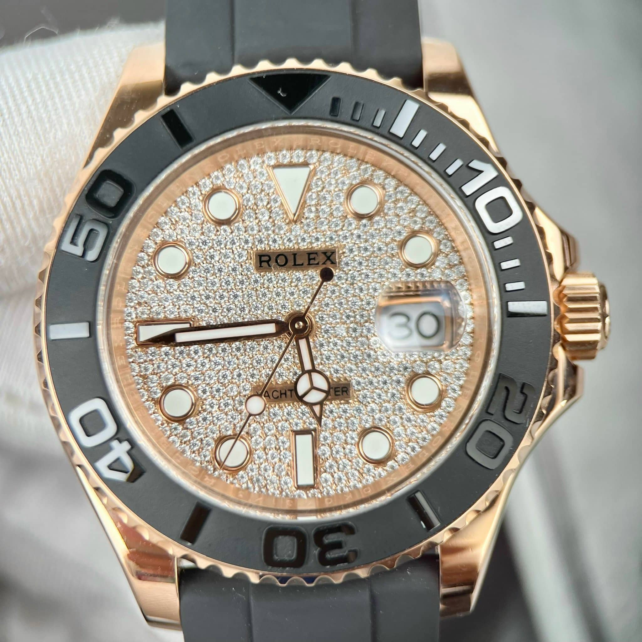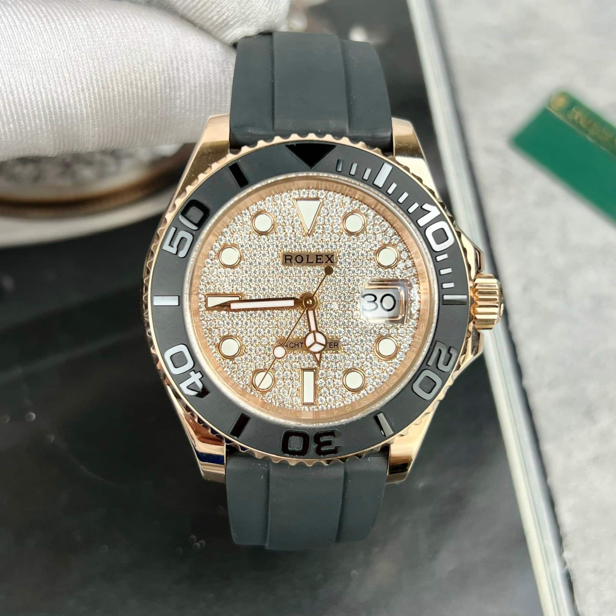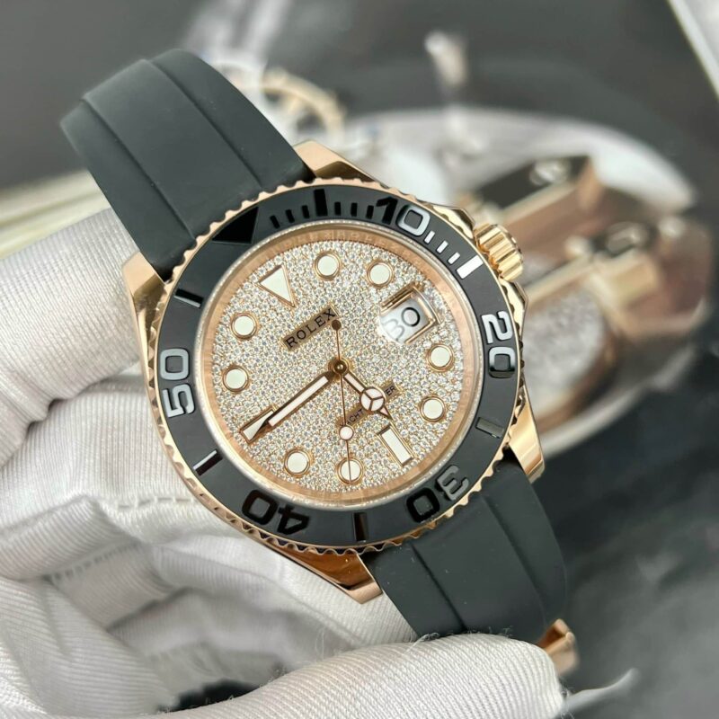 ROLEX YACHT-MASTER 126655-0005 18K ROSE GOLD WRAPPED MOISSANITE DIAL BEST REPLICA 40MM