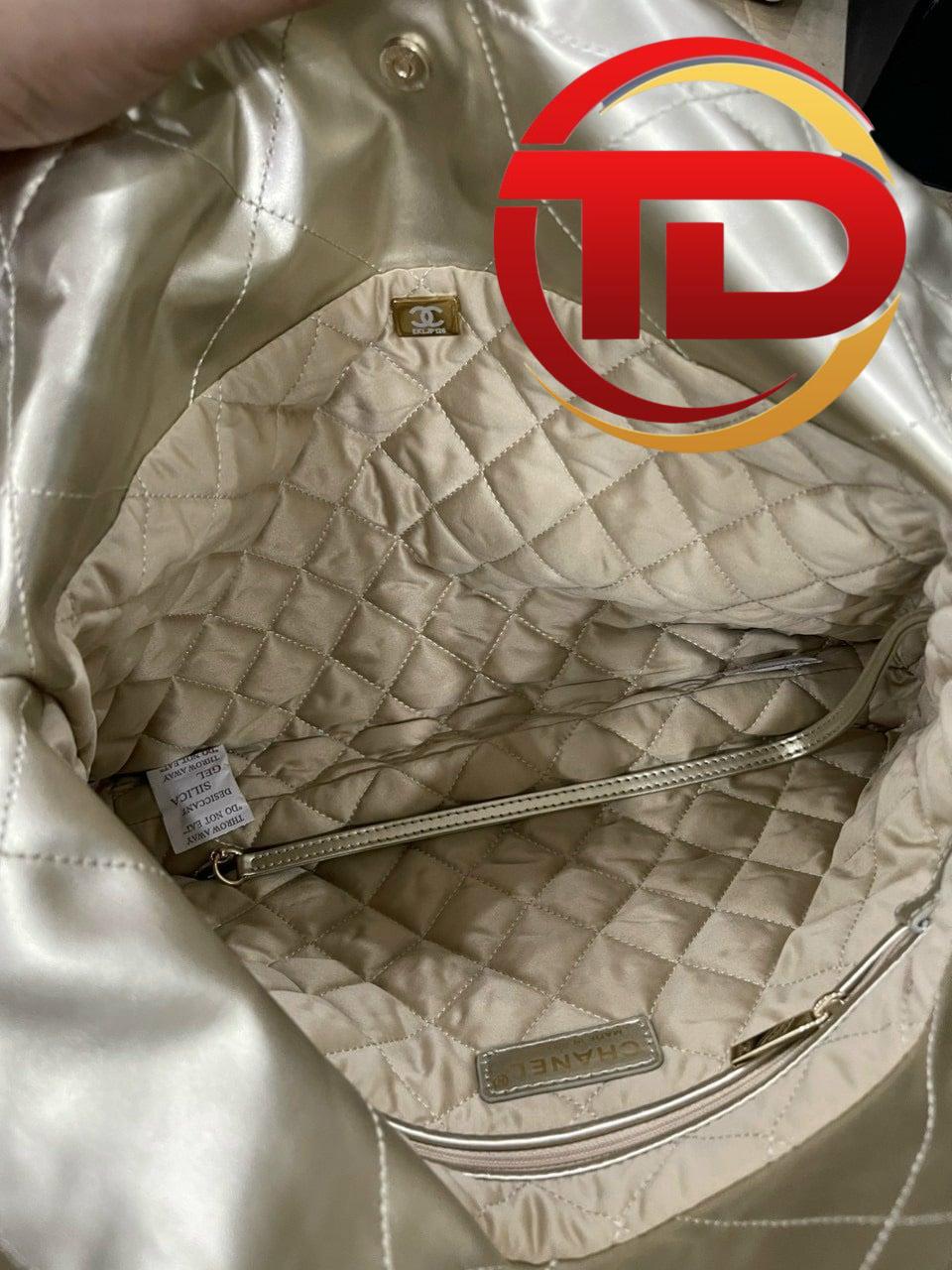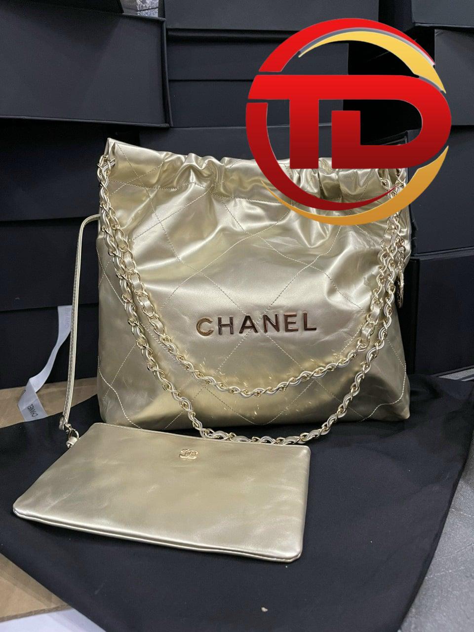TÚI CHANEL 22 SHOPPING SIÊU CẤP DA DÊ LOGO VÀNG MÀU VÀNG BÓNG FULLBOX là chiếc túi xách cao cấp đến từ thương hiệu Chanel nổi tiếng. Chiêc túi có thiết kế đẹp mắt cùng chất liệu cao cấp nên được săn đón ngay khi ra mắt.
