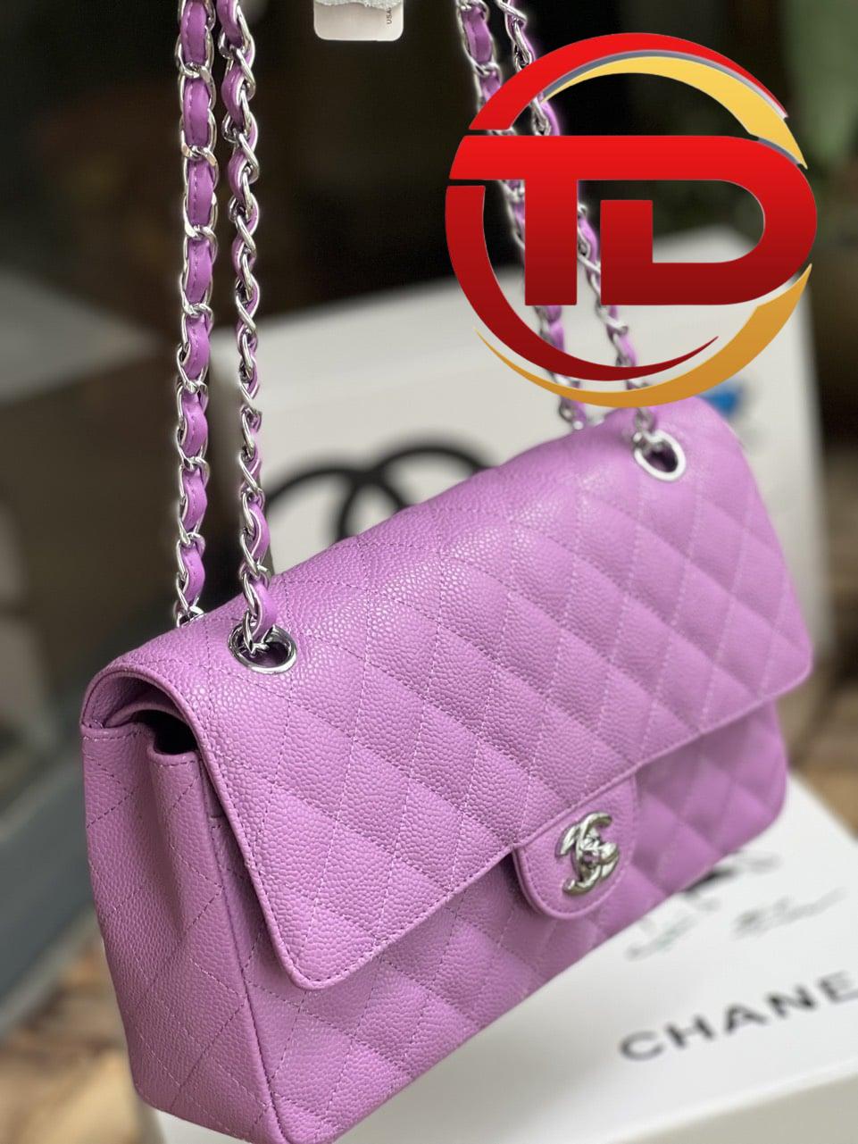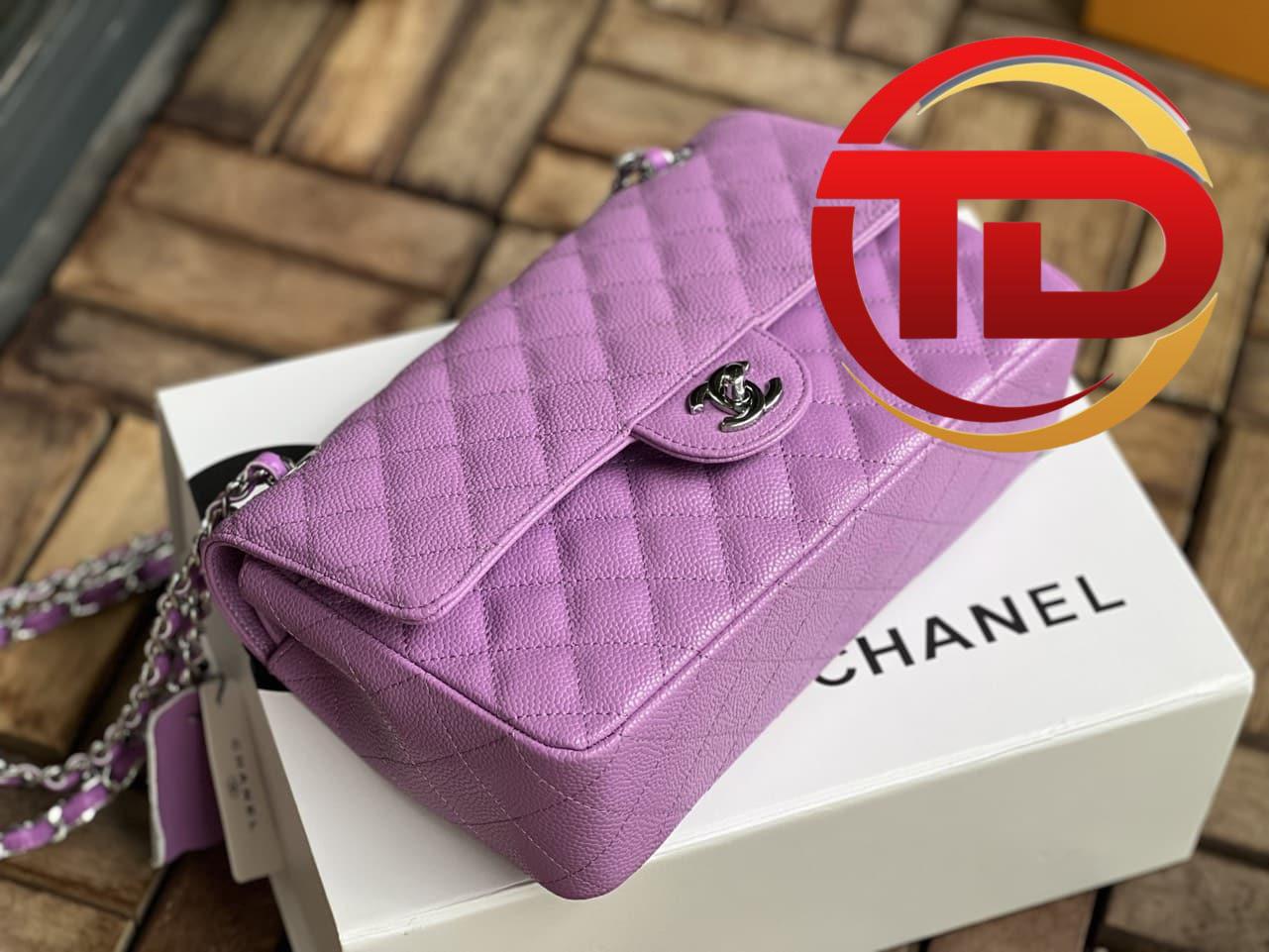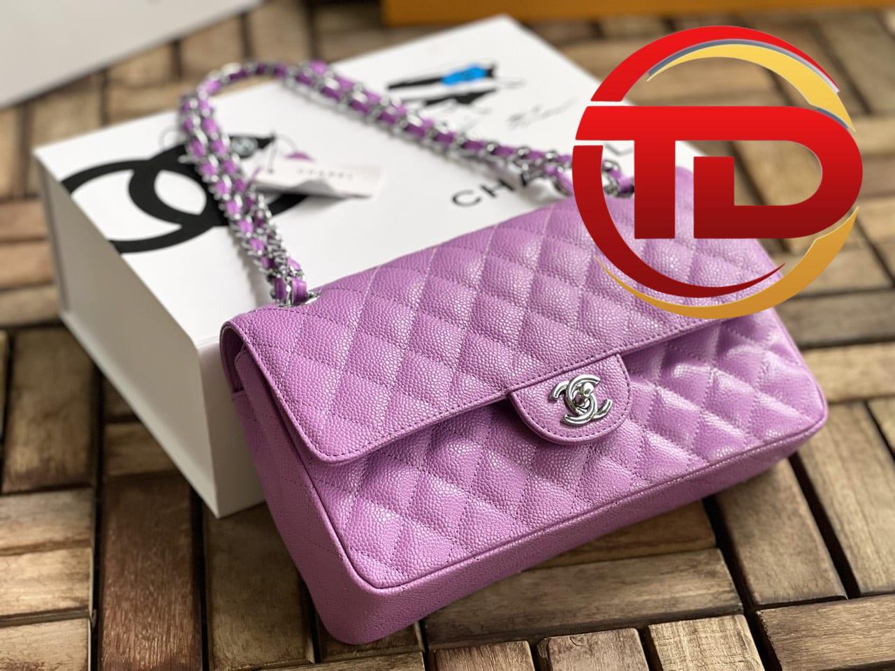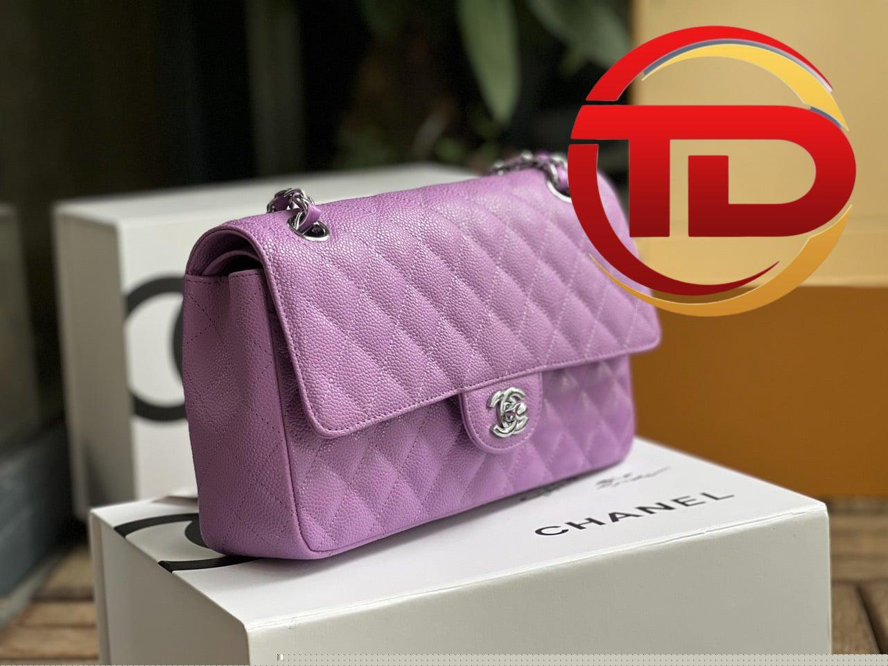 TÚI CHANEL CLASSIC FLAP BAG MEDIUM SLIVER NGUYÊN BẢN DA CAVIAR MÀU TÍM