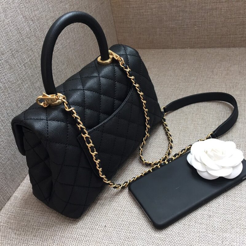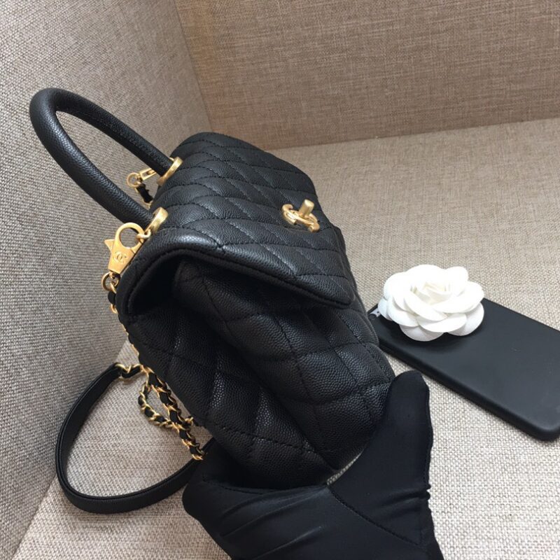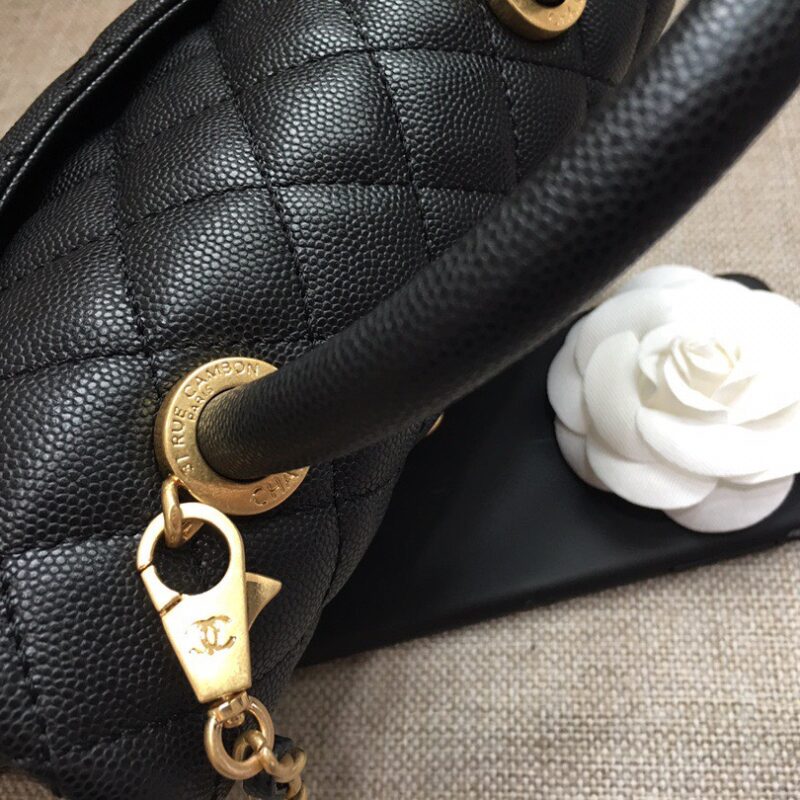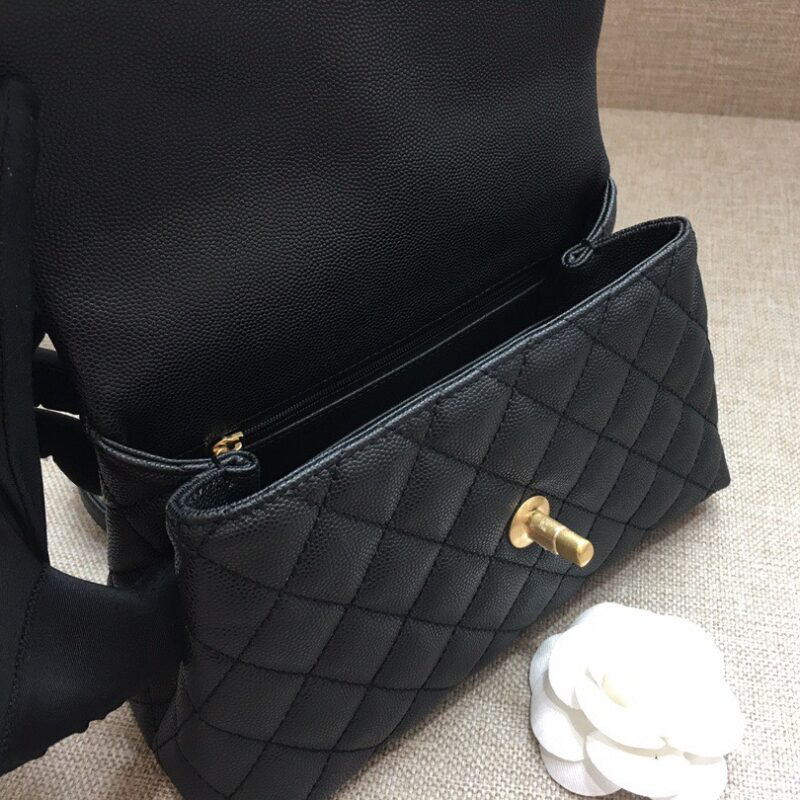 Đặc trưng bởi thiết k61 sang trọng và tính tiện dụng vượt trội, dòng CHANEL COCO 9.5 FLAP BAG WITH TOP HANDLE BAG là mẫu túi mà bất kì tín đồ Chanel nào cũng không thể bỏ lỡ. Với đặc điểm nhận dạng khóa xoay cùng logo hai chữ c kéo lồng vào nhau, cộp mác thương hiệu Chanel, chất liệu da bê cao cấp được chế tác nhám độc đáo, kết hợp tông màu đen truyền thống vừa sang trọng vừa không bao giờ lỗi mốt.