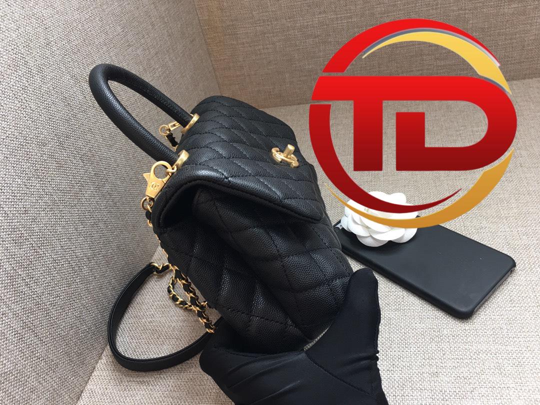 Đặc trưng bởi thiết k61 sang trọng và tính tiện dụng vượt trội, dòng CHANEL COCO 9.5 FLAP BAG WITH TOP HANDLE BAG là mẫu túi mà bất kì tín đồ Chanel nào cũng không thể bỏ lỡ. Với đặc điểm nhận dạng khóa xoay cùng logo hai chữ c kéo lồng vào nhau, cộp mác thương hiệu Chanel, chất liệu da bê cao cấp được chế tác nhám độc đáo, kết hợp tông màu đen truyền thống vừa sang trọng vừa không bao giờ lỗi mốt.