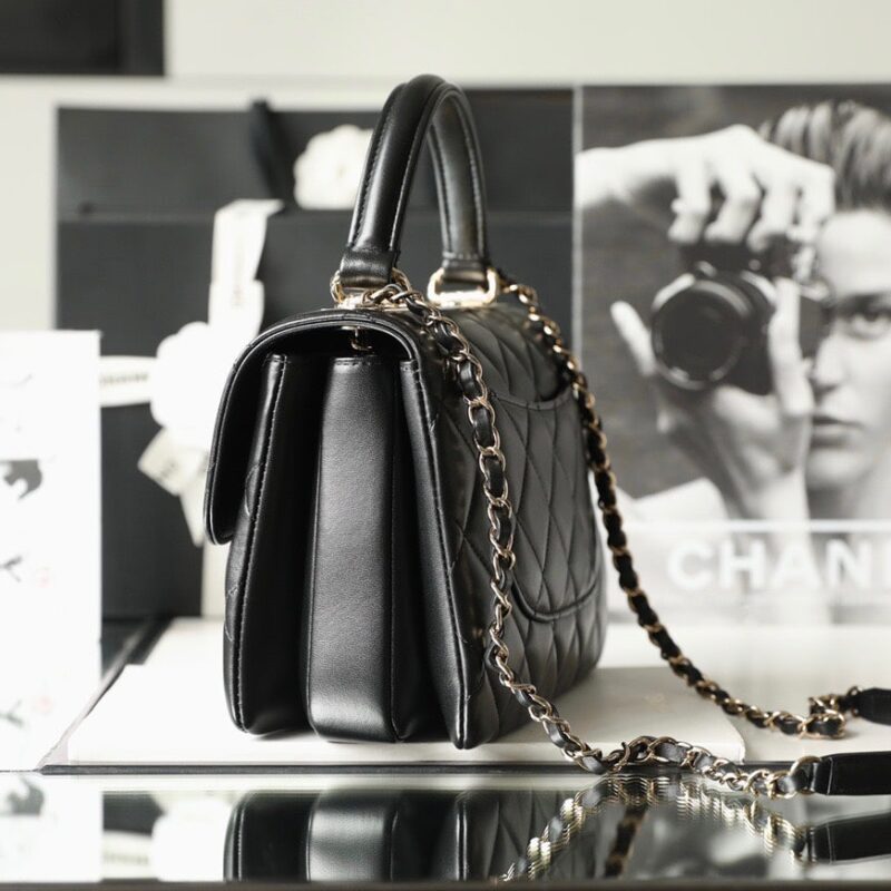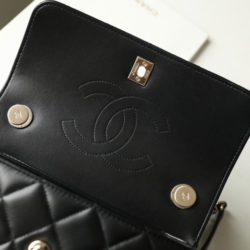 TÚI CHANEL FLAP BAG WITH TOP HANDLE LAMBSKIN SIÊU CẤP MÀU ĐEN