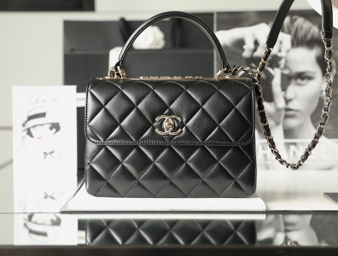 TÚI CHANEL FLAP BAG WITH TOP HANDLE LAMBSKIN SIÊU CẤP MÀU ĐEN