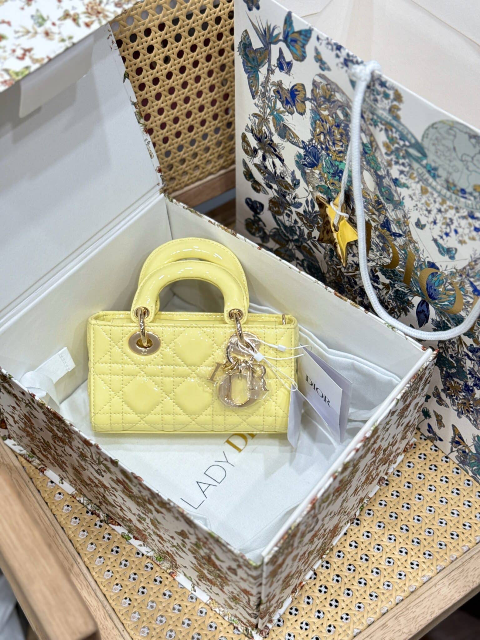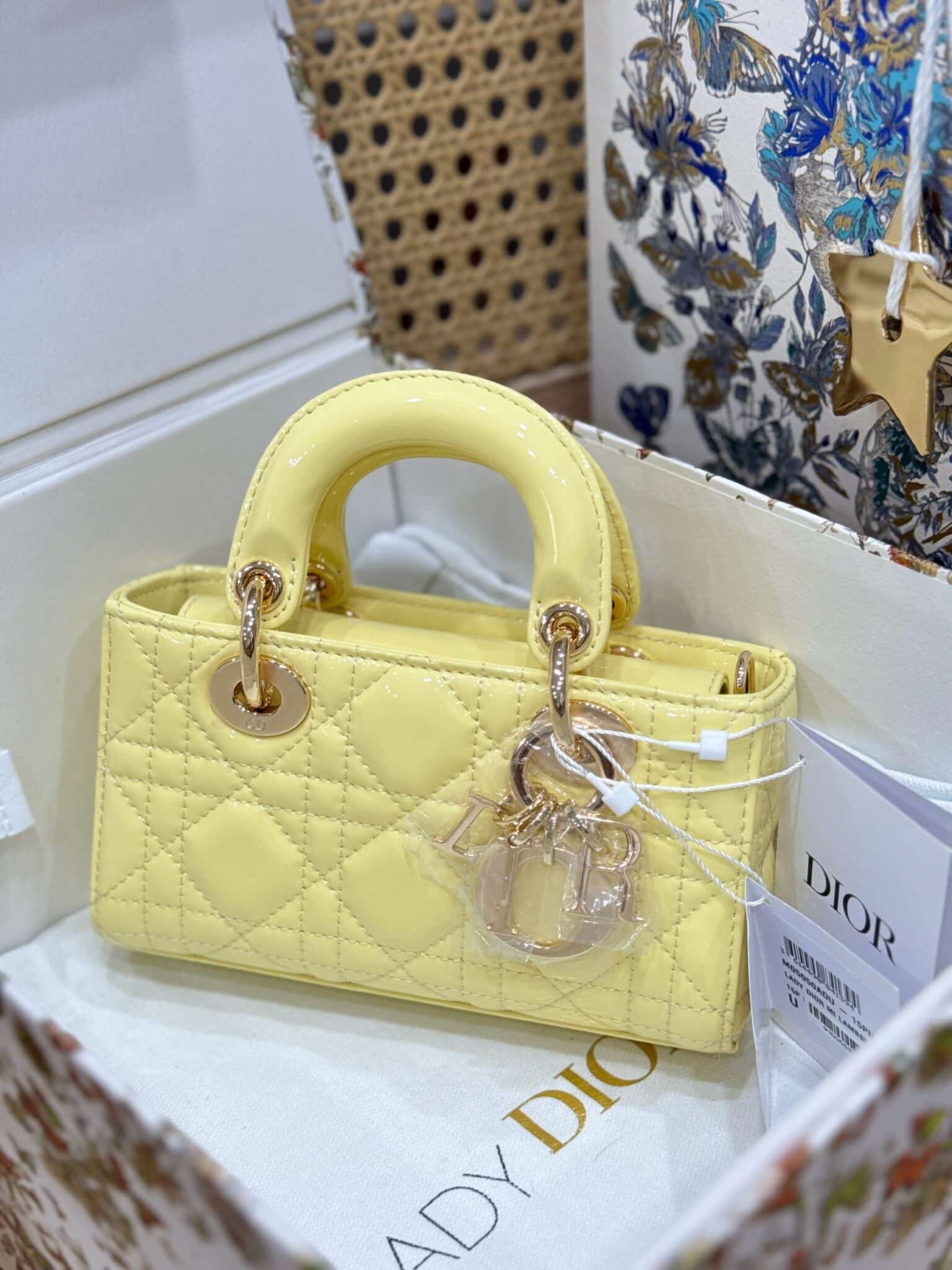 PyGlow trân trọng giới thiệu chiếc túi xách Dior Lady D-Joy micro da bóng màu vàng, phần cứng mạ vàng size 16cm, phiên bản Vip like auth sử dụng chất liệu bê cao cấp. Sản phẩm đầy đủ hộp như khi mua tại store.