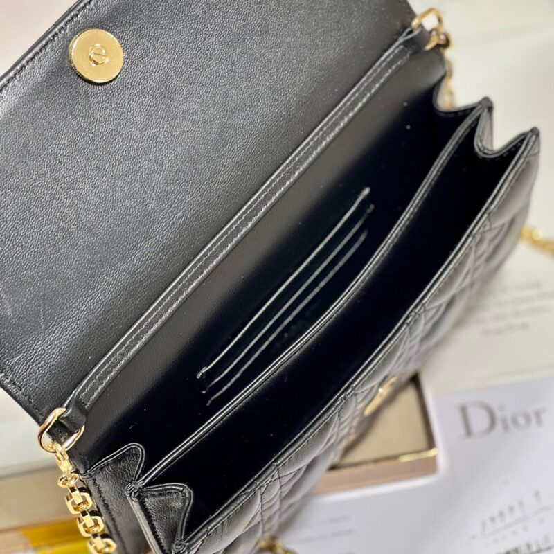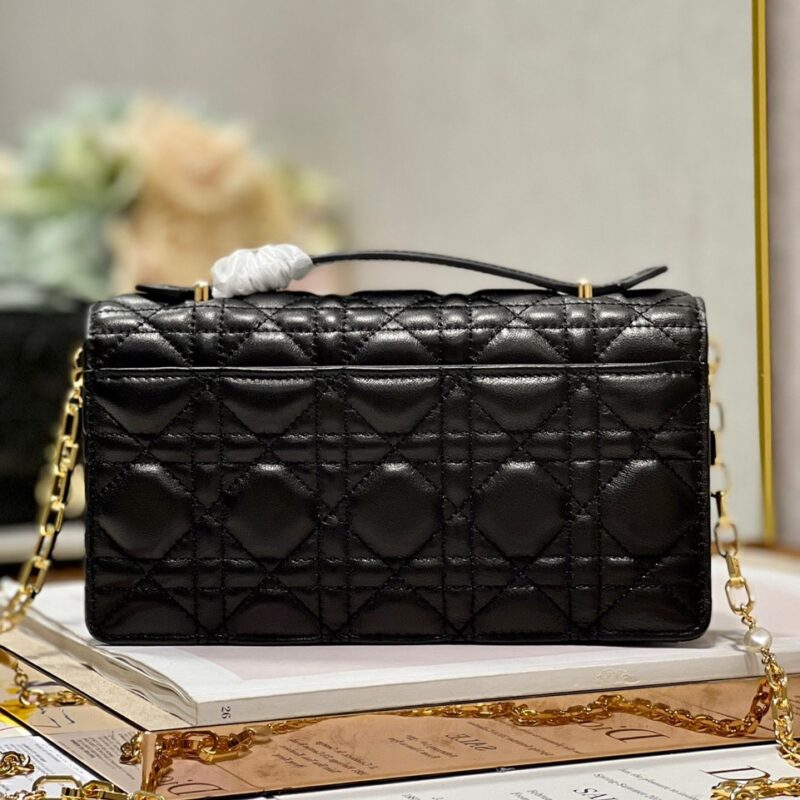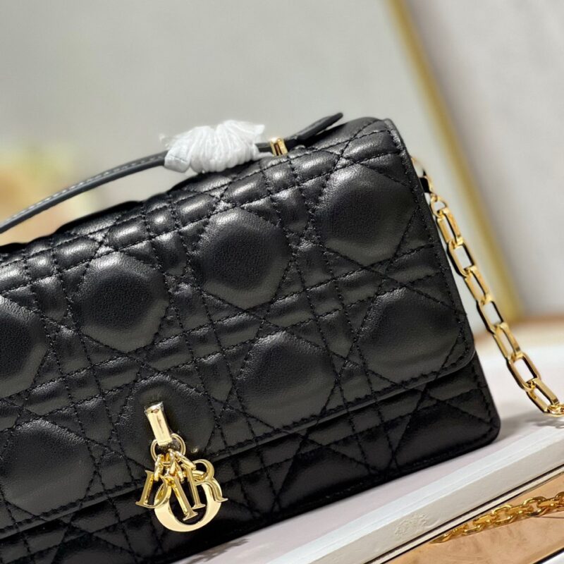 Thiết kế mùa Xuân 2023, TÚI DIOR MISS DIOR MINI BAG BLACK CANNAGE LAMBSKIN nâng tầm dòng Lady Dior với thiết kế thanh lịch và tiện dụng. Được chế tác bằng da cừu Cannage màu đen, túi có một nắp gập đính charm D.I.O.R. quyến rũ.