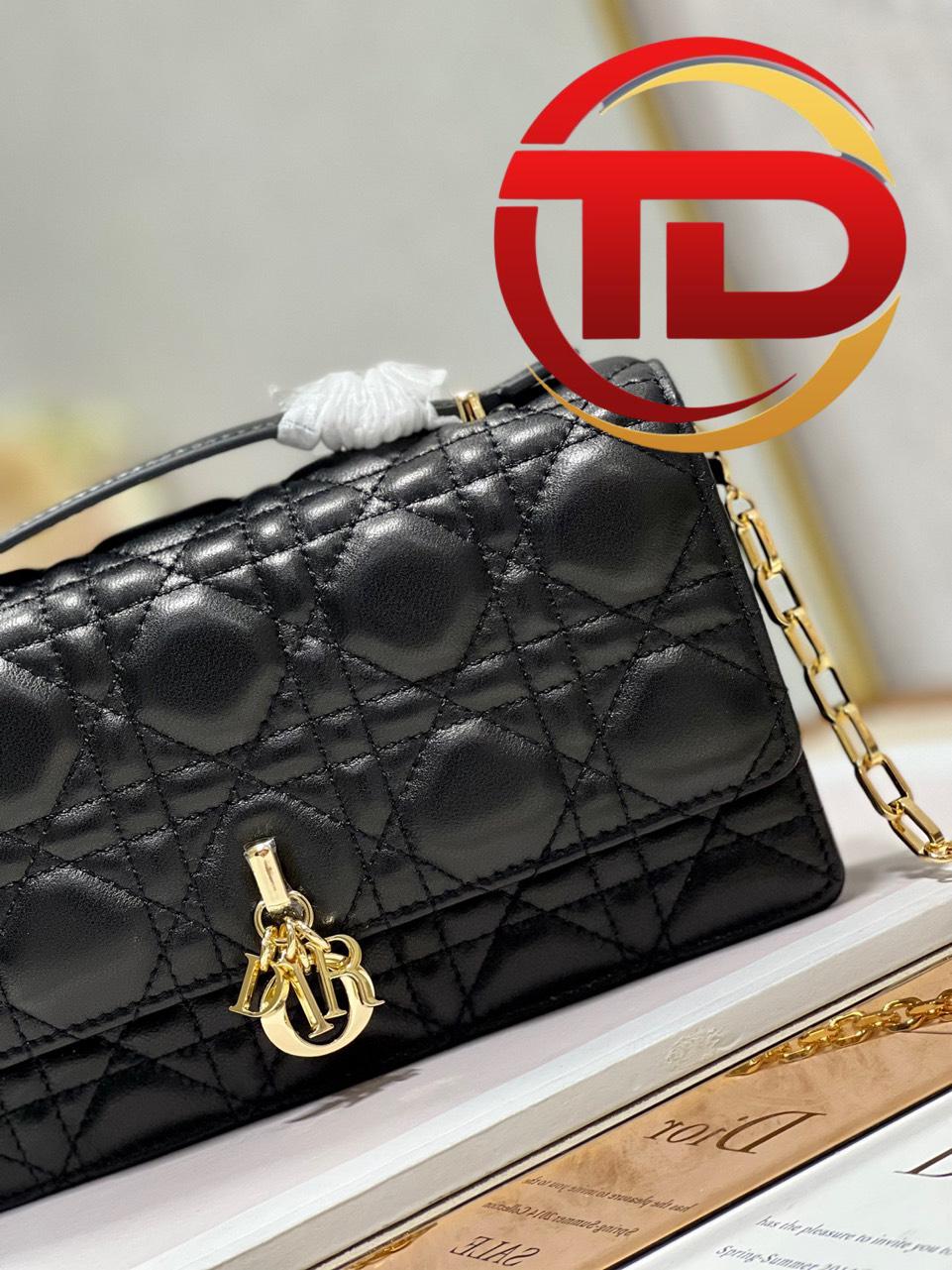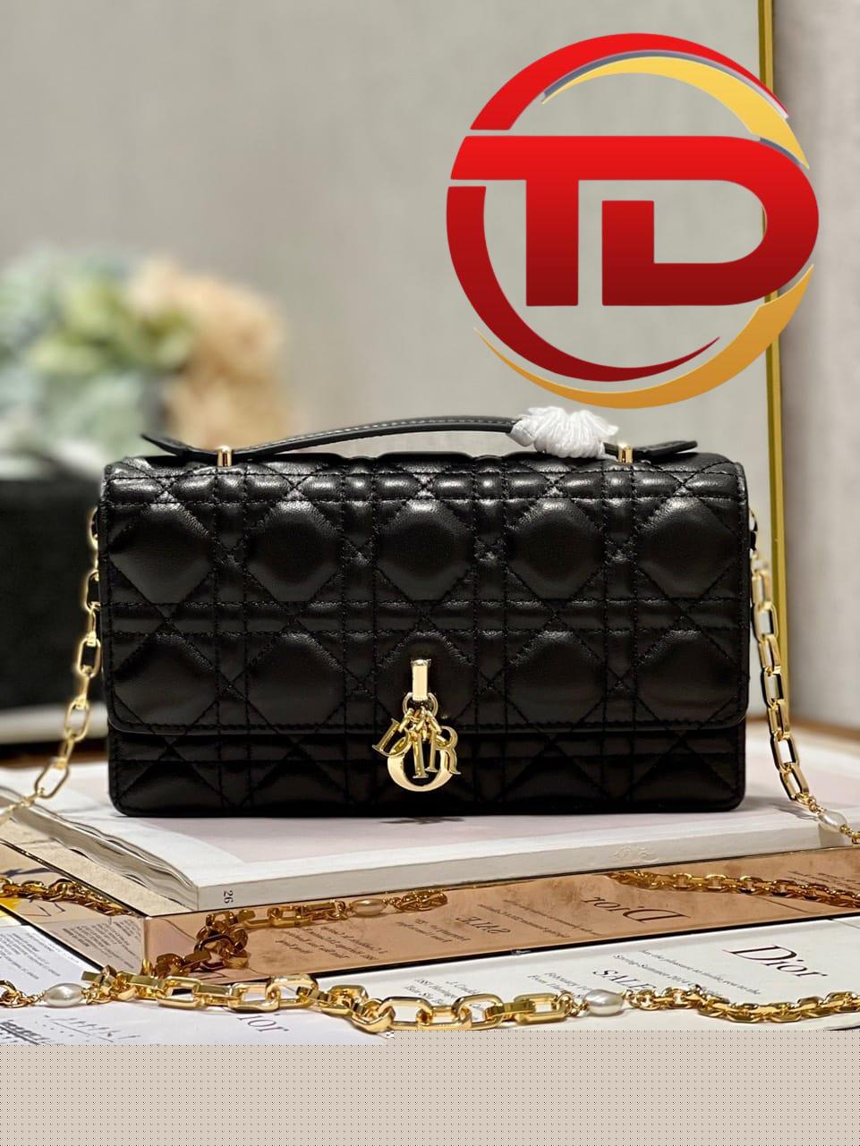 Thiết kế mùa Xuân 2023, TÚI DIOR MISS DIOR MINI BAG BLACK CANNAGE LAMBSKIN nâng tầm dòng Lady Dior với thiết kế thanh lịch và tiện dụng. Được chế tác bằng da cừu Cannage màu đen, túi có một nắp gập đính charm D.I.O.R. quyến rũ.