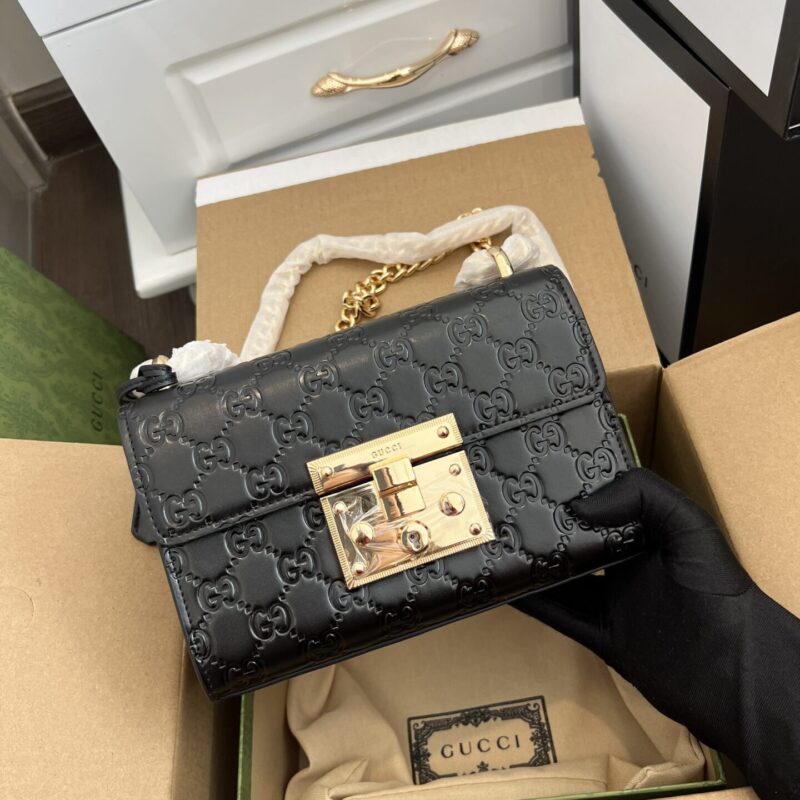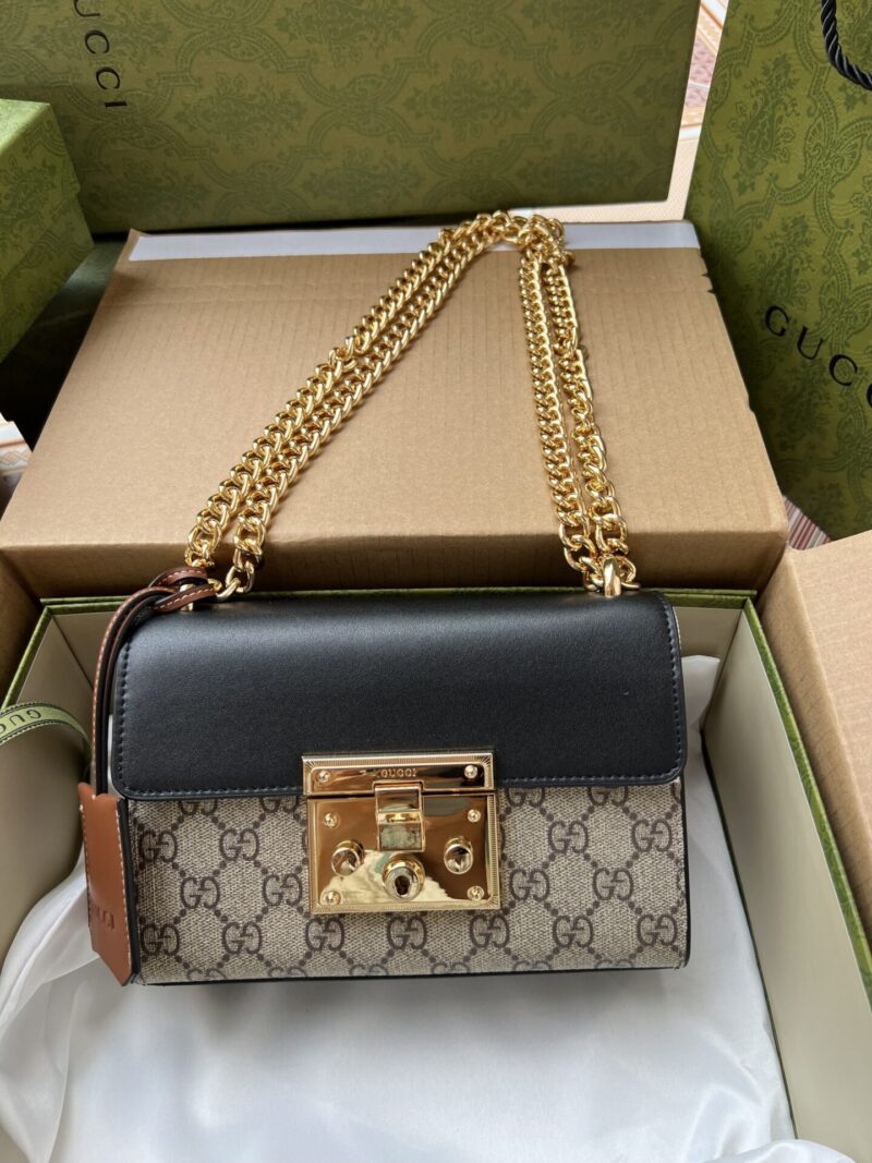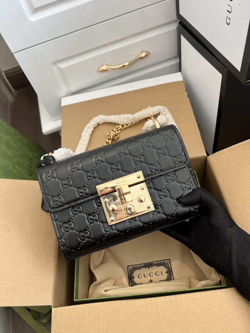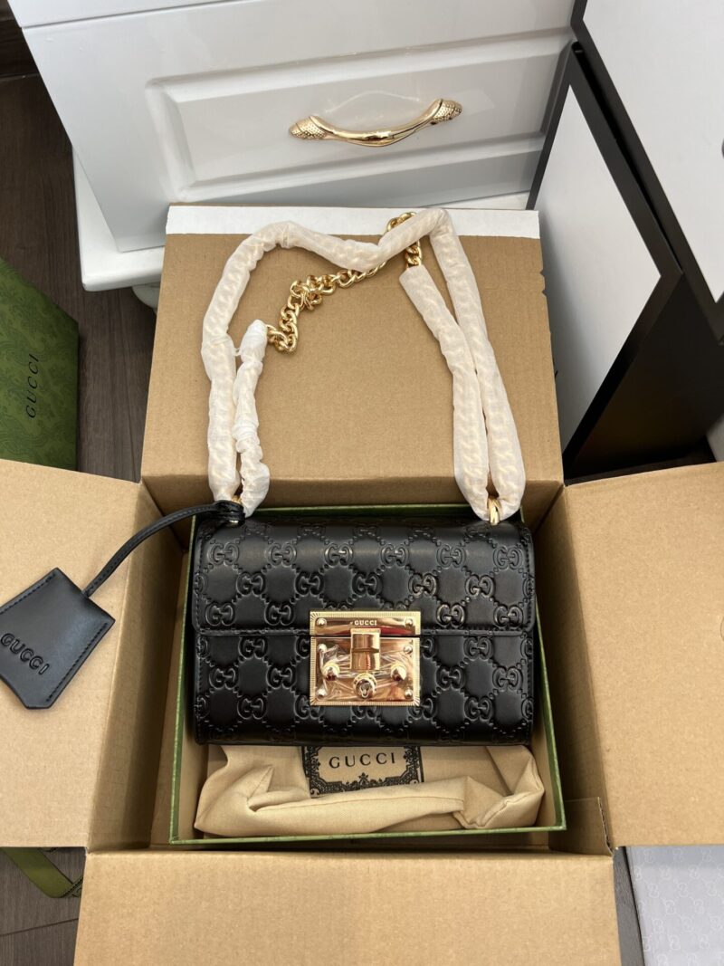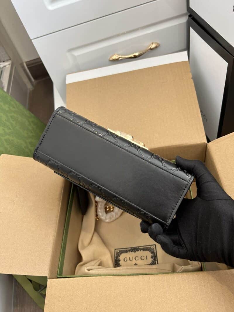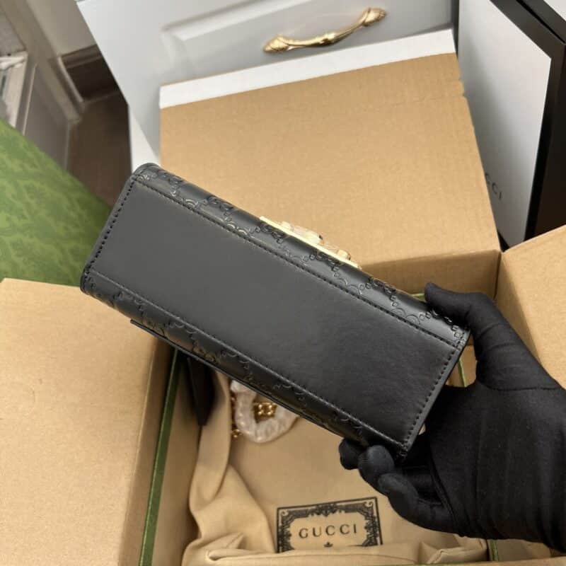 TÚI GUCCI BLACK PADLOCK SMALL SIGNATURE SHOULDER BAG NGUYÊN BẢN KHÓA VÀNG FULLBOX