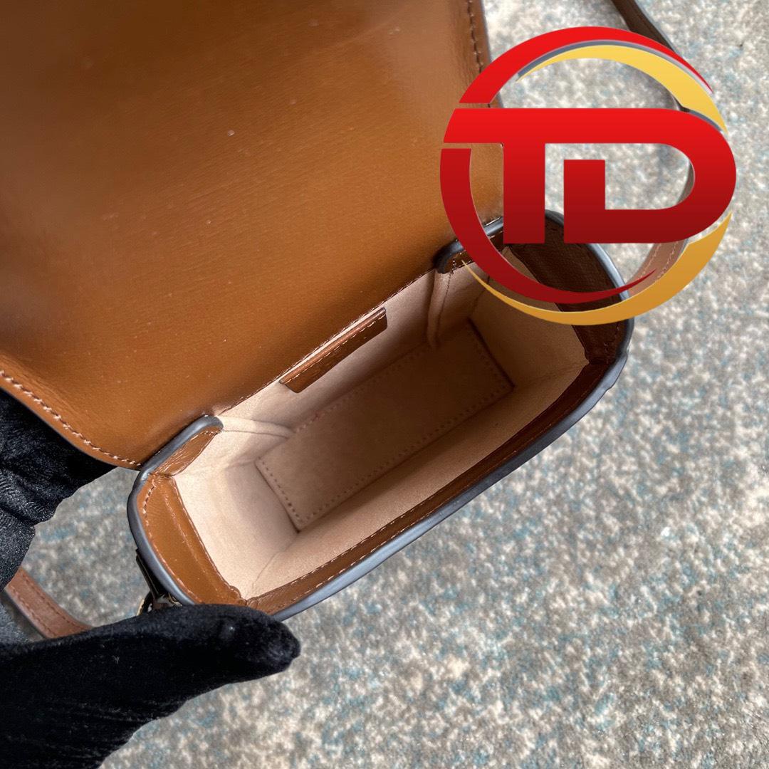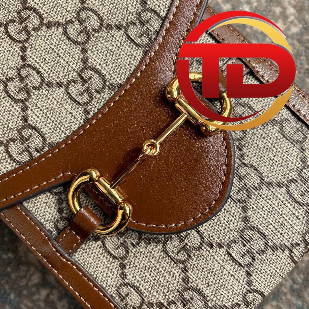 Chi tiết đặc trưng, độc quyền của Gucci cũng được thể hiện rõ ràng nhất ở mẫu túi này. Chi tiết Horsebit bằng kim loại tone vàng nổi bật giữa nền chất liệu vải nâu của túi. Túi được trang bị phần dây đa thoải mái, bền bỉ, có thể điều chỉnh và thả dây lên đến 50cm nên anh em thỏa sức sáng tạo nhiều kiểu đeo khác nhau.