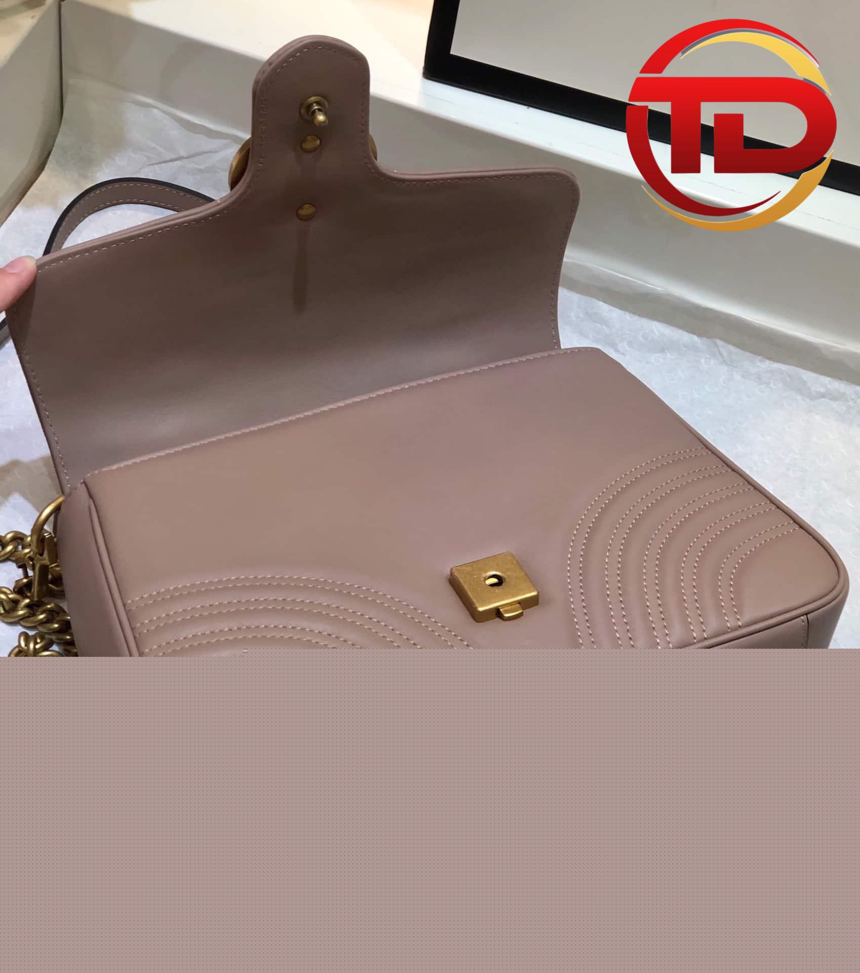 Túi cầm tay GG Marmont có hình dạng cấu trúc mềm mại, tinh tế và kiêu sa. Túi được trang bị tay cầm bằng da và dây đeo vai để tăng sự thoải mái và sử dụng đa chức năng. Chiếc túi nhỏ nhắn này đang được rất nhiều chị em yêu thích bởi sự tiện dụng, kích thước của túi nhỏ gọn giúp người đeo có thể thoải mái trong việc di chuyển.