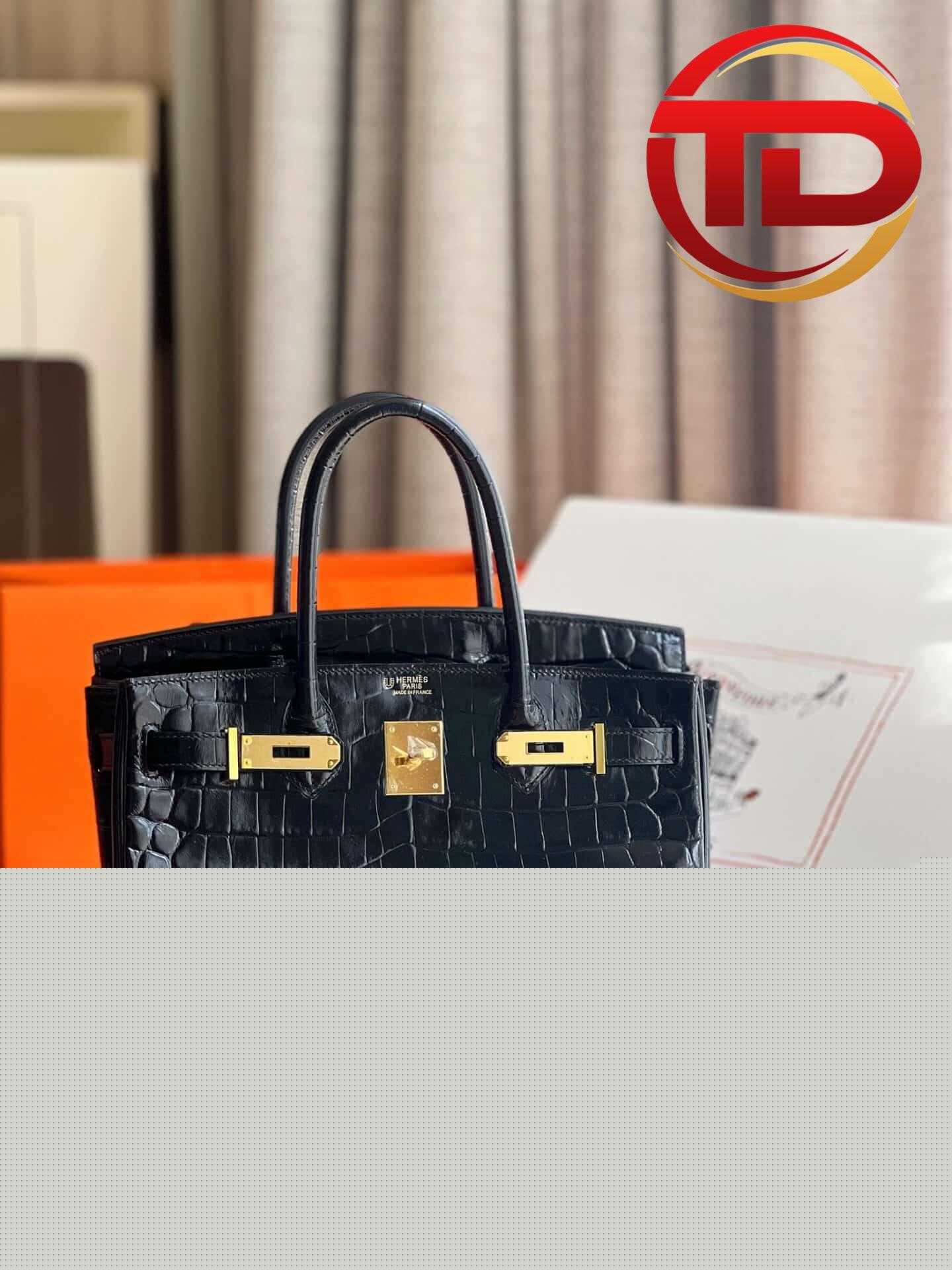 TÚI HERMES BIRKIN 30 A MATTE ALIGATO WITH GOLD HARDWARE SIÊU CẤP KHÂU TAY 50% MÀU ĐEN được xem là một trong những mẫu túi đắt đỏ, cao cấp và sang trọng nhất trong bộ sưu tập túi xách của thương hiệu Hermes. Nhờ vào chất liệu thời thượng cùng những chi tiết thiết kế tỉ mỉ, khéo léo,Hermes Alligator Birkin 30 nhanh chóng trở thành một viên ngọc quý trong giới thời trang hàng hiệu thế giới.