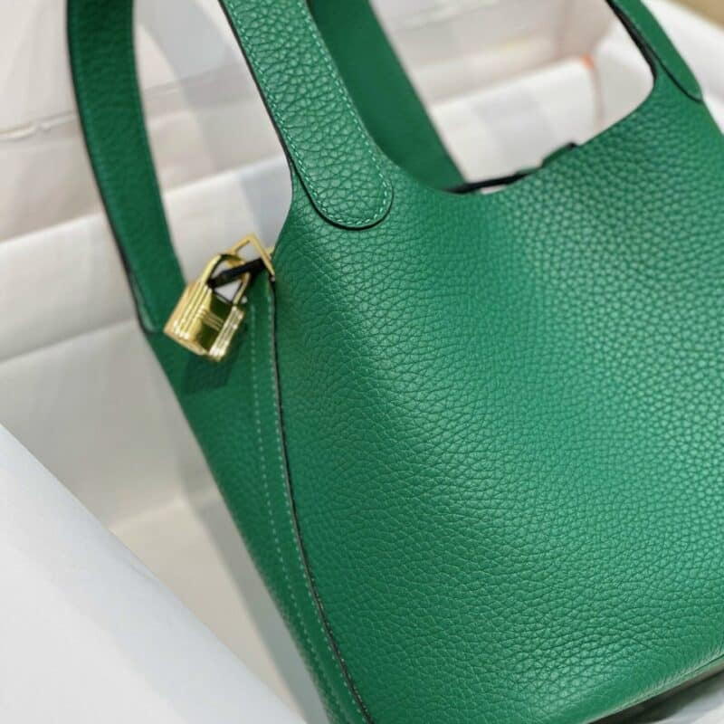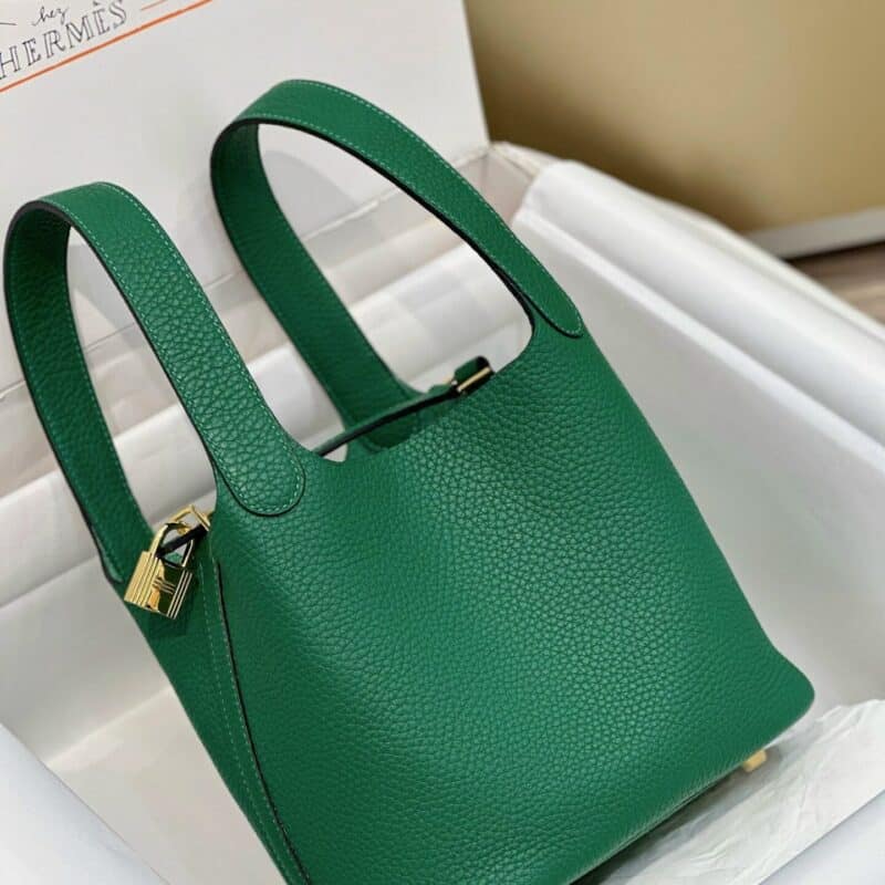 TÚI HERMES PICOTIN LOCK 18 SILVER PALLADIUM HARDWARE SIÊU CẤP KHÂU TAY MÀU XANH LÁ