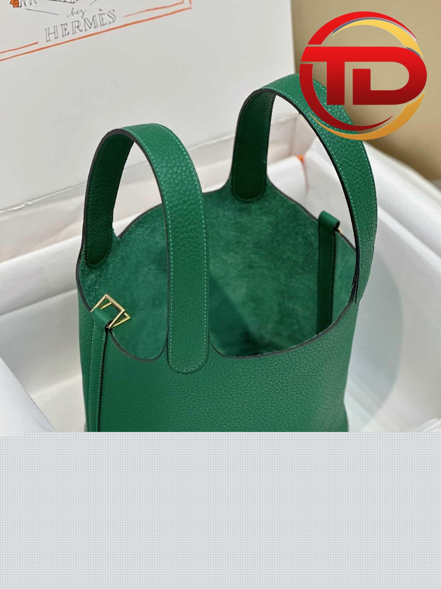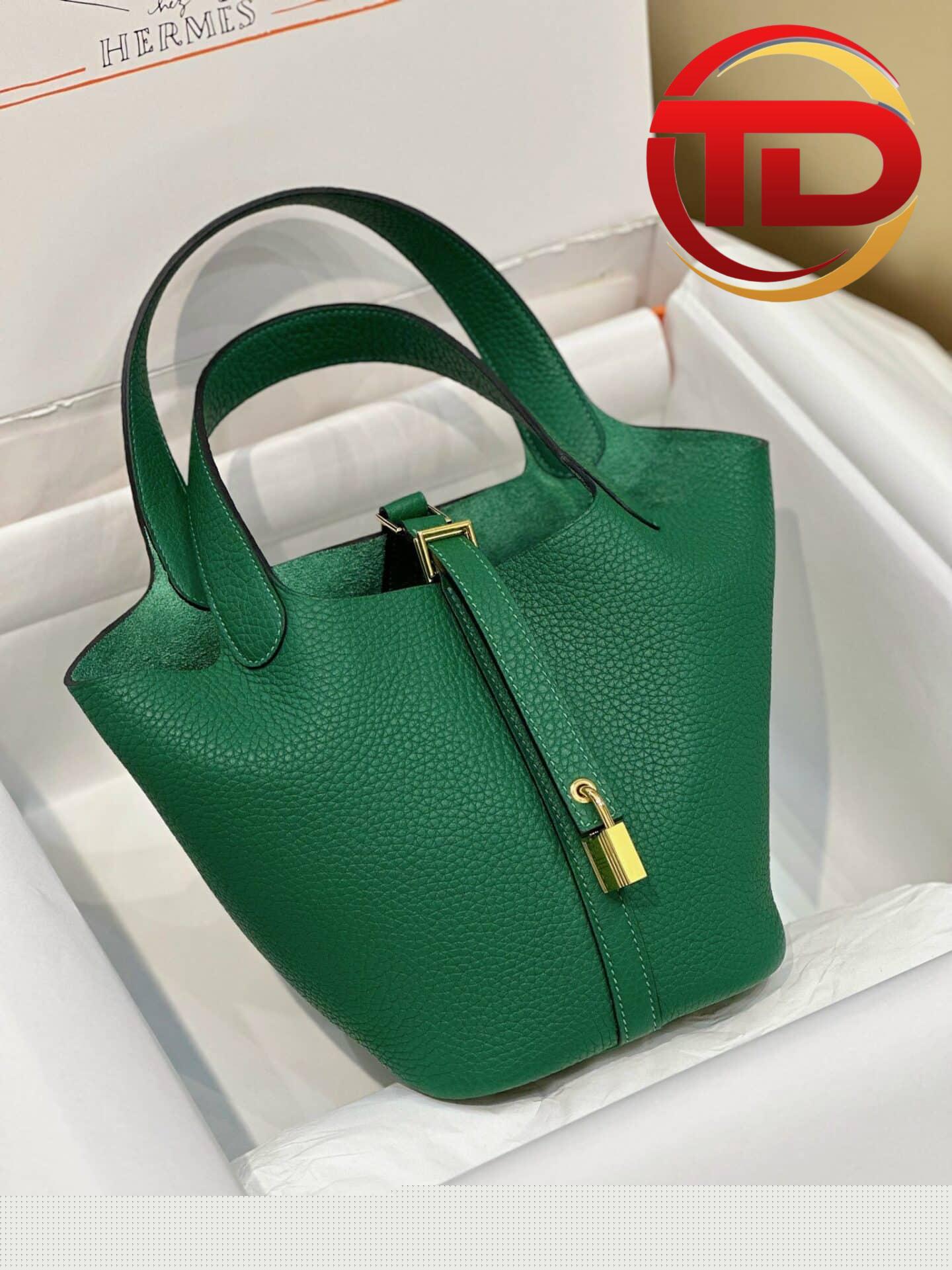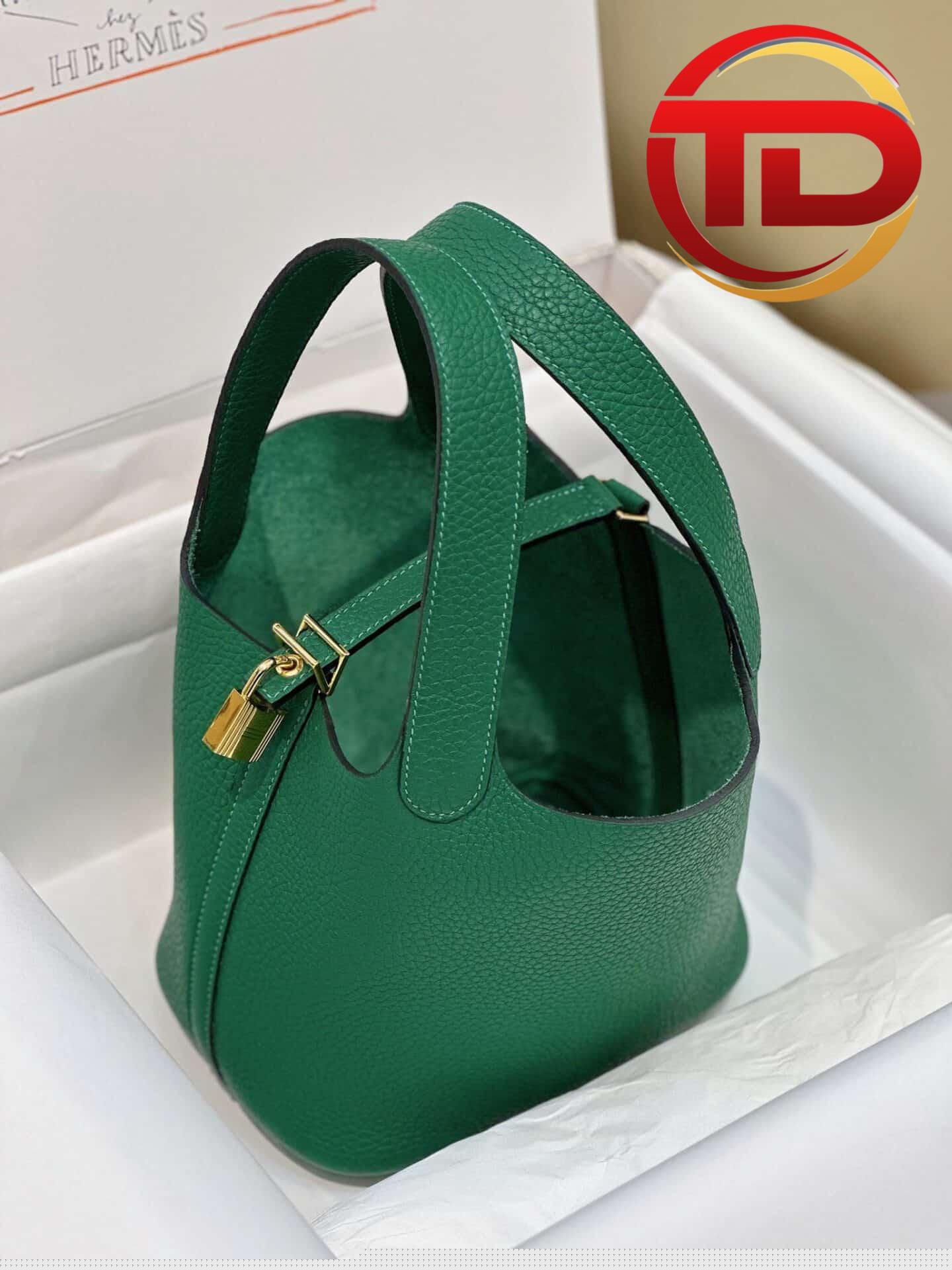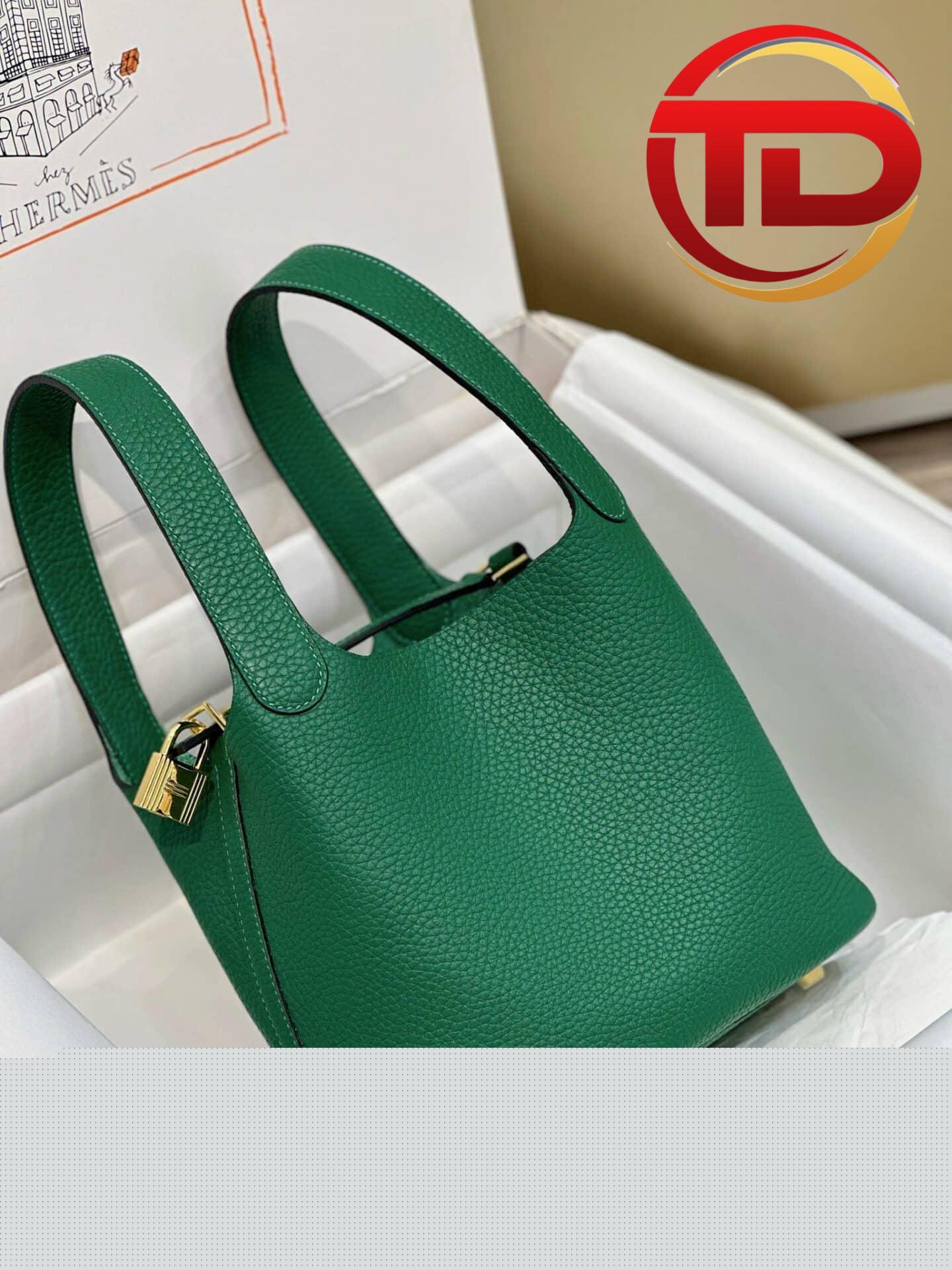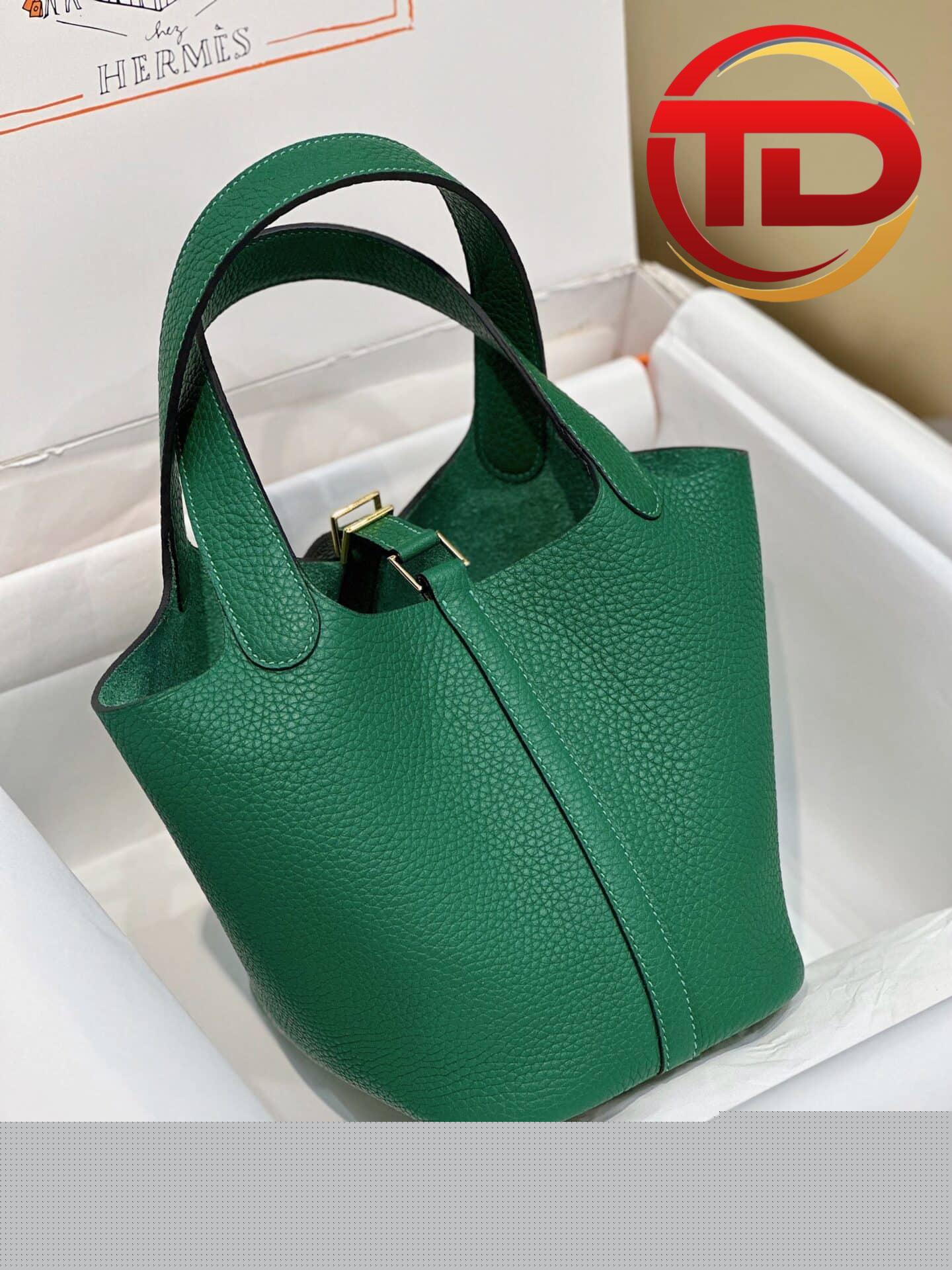 TÚI HERMES PICOTIN LOCK 18 SILVER PALLADIUM HARDWARE SIÊU CẤP KHÂU TAY MÀU XANH LÁ