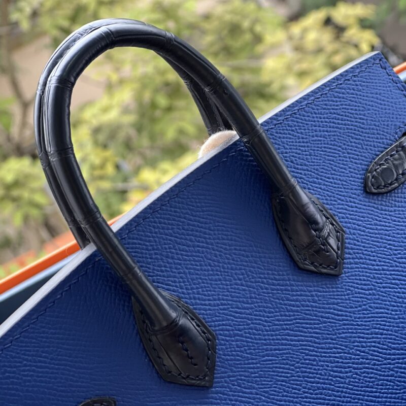 Chiếc túi HM HERMES SAC FAUBOURG BIRKIN 20 BLUE MARINE MATTE ALLIGATOR KHÂU TAY REPLICA LIMITED được đặt tên theo cửa hàng flagship của Hermès tại Paris, số 24 đường Faubourg Saint-Honoré. Chiếc túi này sử dụng chính chất liệu da thật để tạo nên một hình vẽ mang tính kiến trúc ở mặt ngoài, mô phỏng hình ảnh từ mái hiên đến vỉa hè của cửa hàng trên con phố biểu tượng.