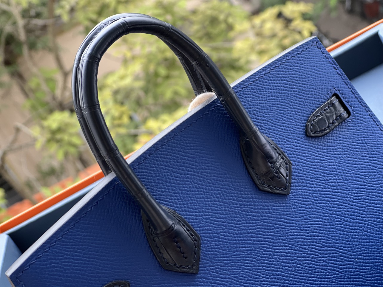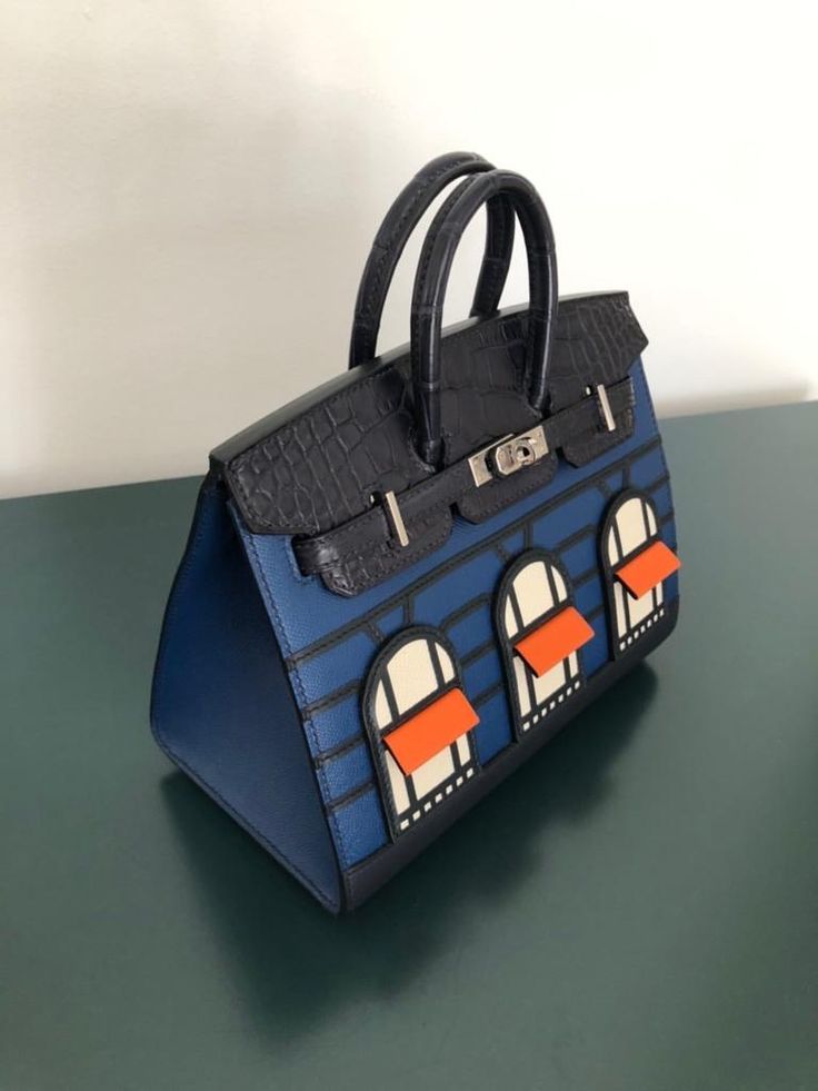 Chiếc túi HM HERMES SAC FAUBOURG BIRKIN 20 BLUE MARINE MATTE ALLIGATOR KHÂU TAY REPLICA LIMITED được đặt tên theo cửa hàng flagship của Hermès tại Paris, số 24 đường Faubourg Saint-Honoré. Chiếc túi này sử dụng chính chất liệu da thật để tạo nên một hình vẽ mang tính kiến trúc ở mặt ngoài, mô phỏng hình ảnh từ mái hiên đến vỉa hè của cửa hàng trên con phố biểu tượng.