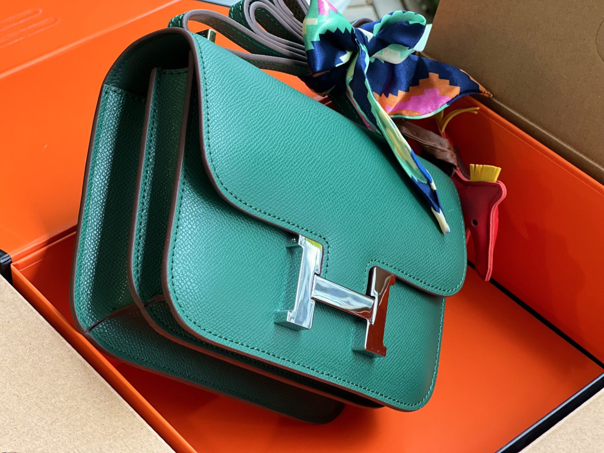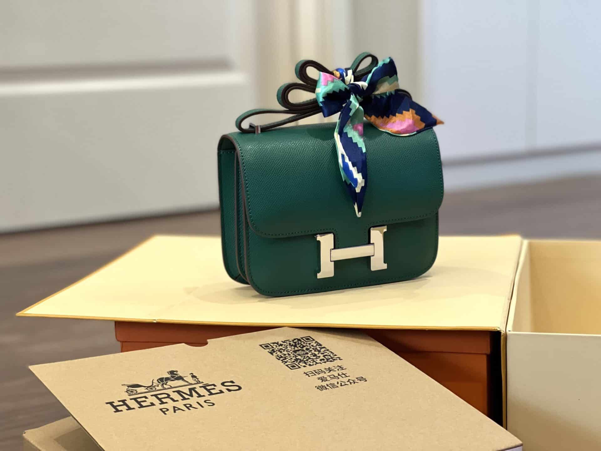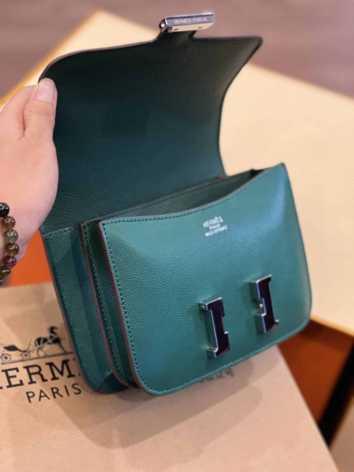 TÚI HM NỮ HERMES CONSTANSE NGUYÊN BẢN DA EPSOM LIKE AUTH MÀU XANH LÁ