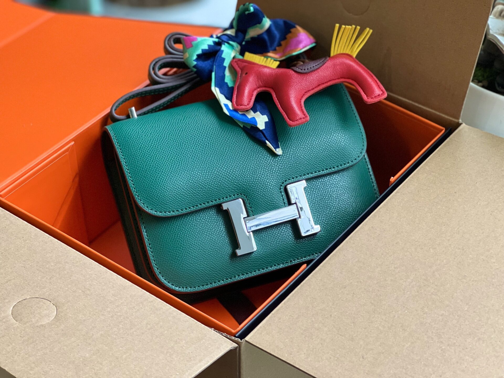 TÚI HM NỮ HERMES CONSTANCE NGUYÊN BẢN DA EPSOM LIKE AUTH MÀU XANH LÁ