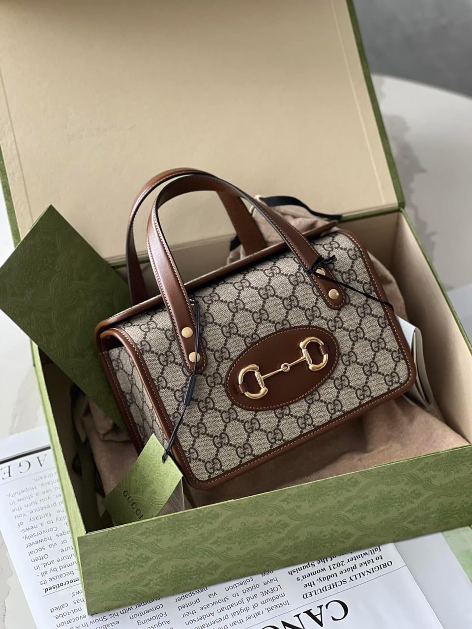 TÚI HỘP GUCCI 1955 MINI HORSEBIT TOP HANDLE BAG MÀU NÂU SUPER