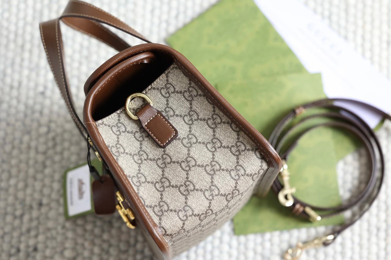 • Chất liệu GG supreme canvas kết hợp với da bê form dáng hình chữ nhật lạ mắt