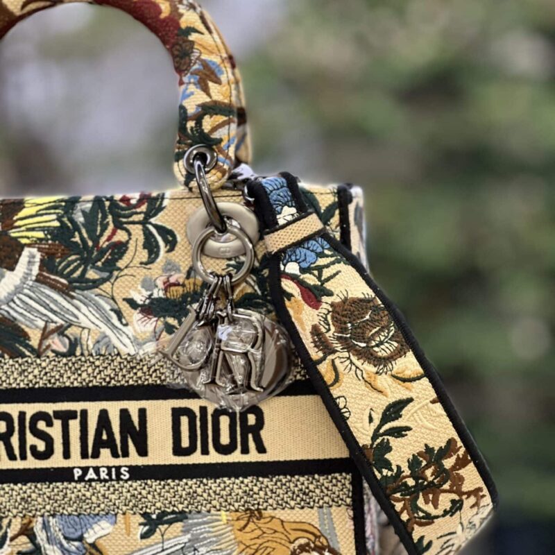 TÚI LADY DIOR MEDIUM SIZE D-LITE BAG BEIGE MULTICOLOR DIOR JARDIN D’HIVER