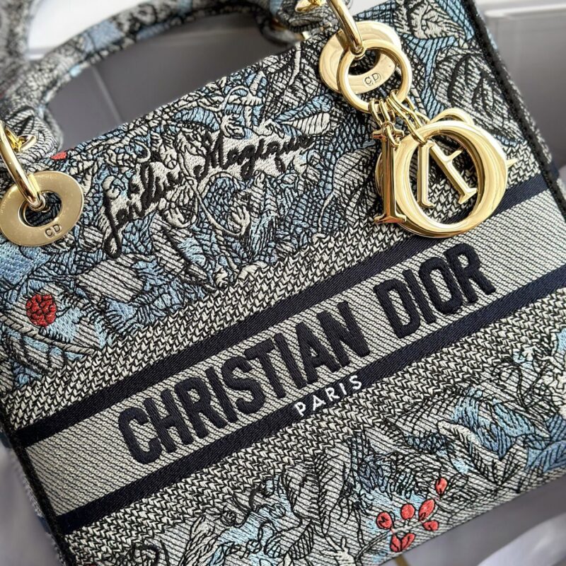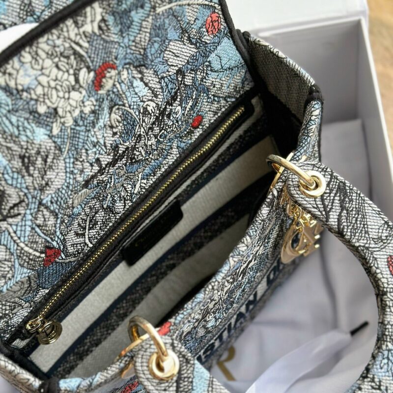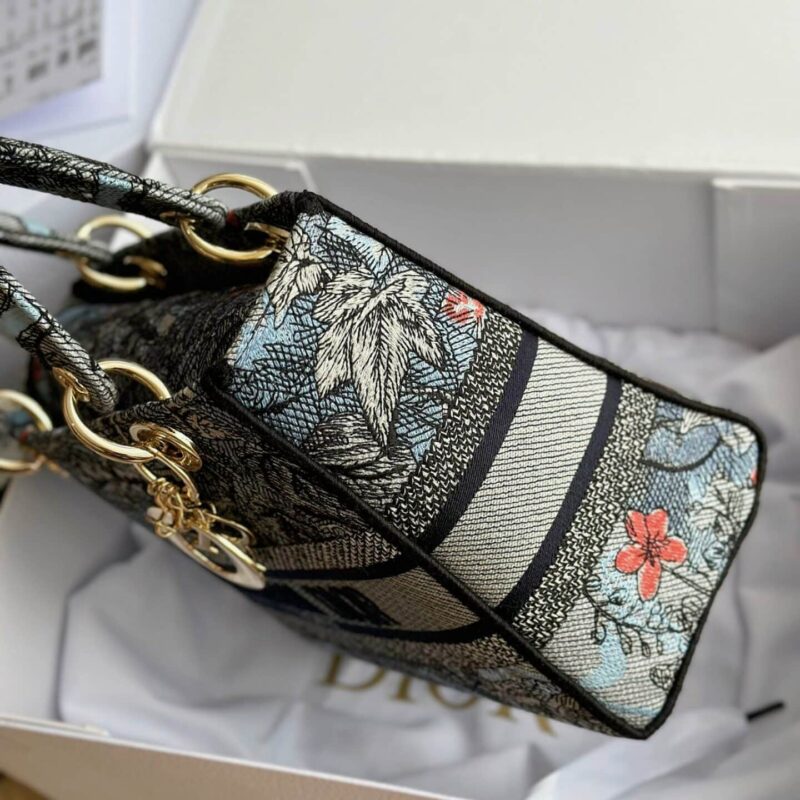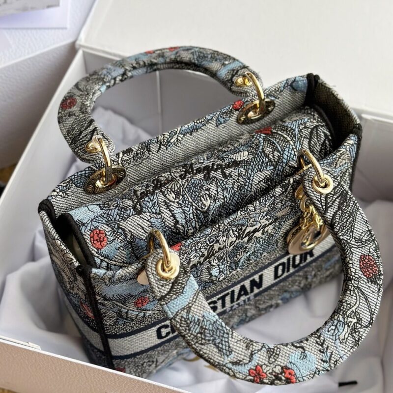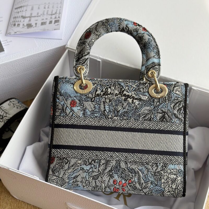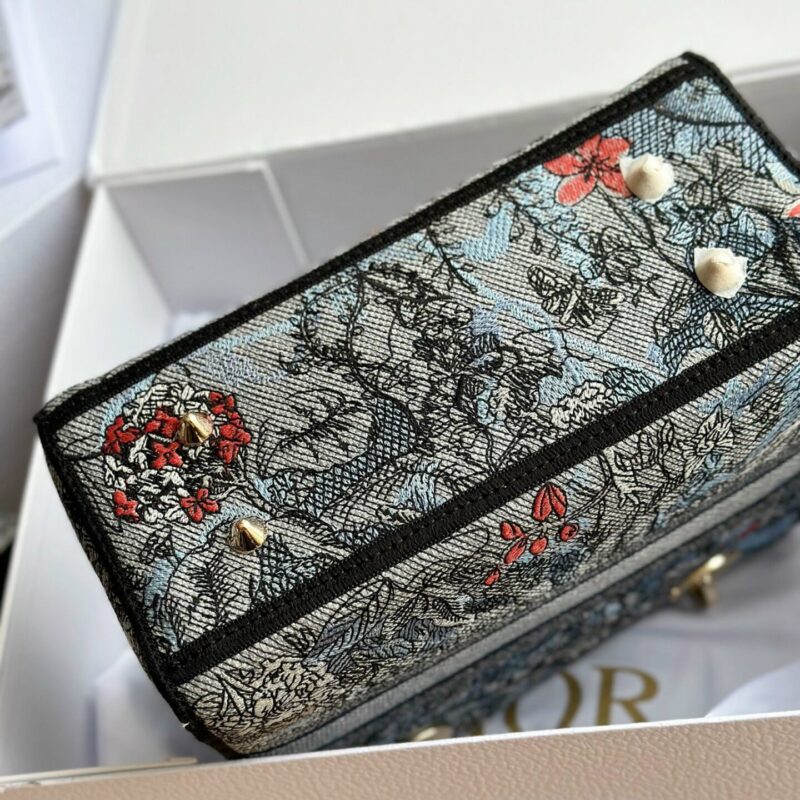 TÚI LADY DIOR MEDIUM SIZE D-LITE BAG DENIM MULTICOLOR DIOR JARDIN MAGIQUE