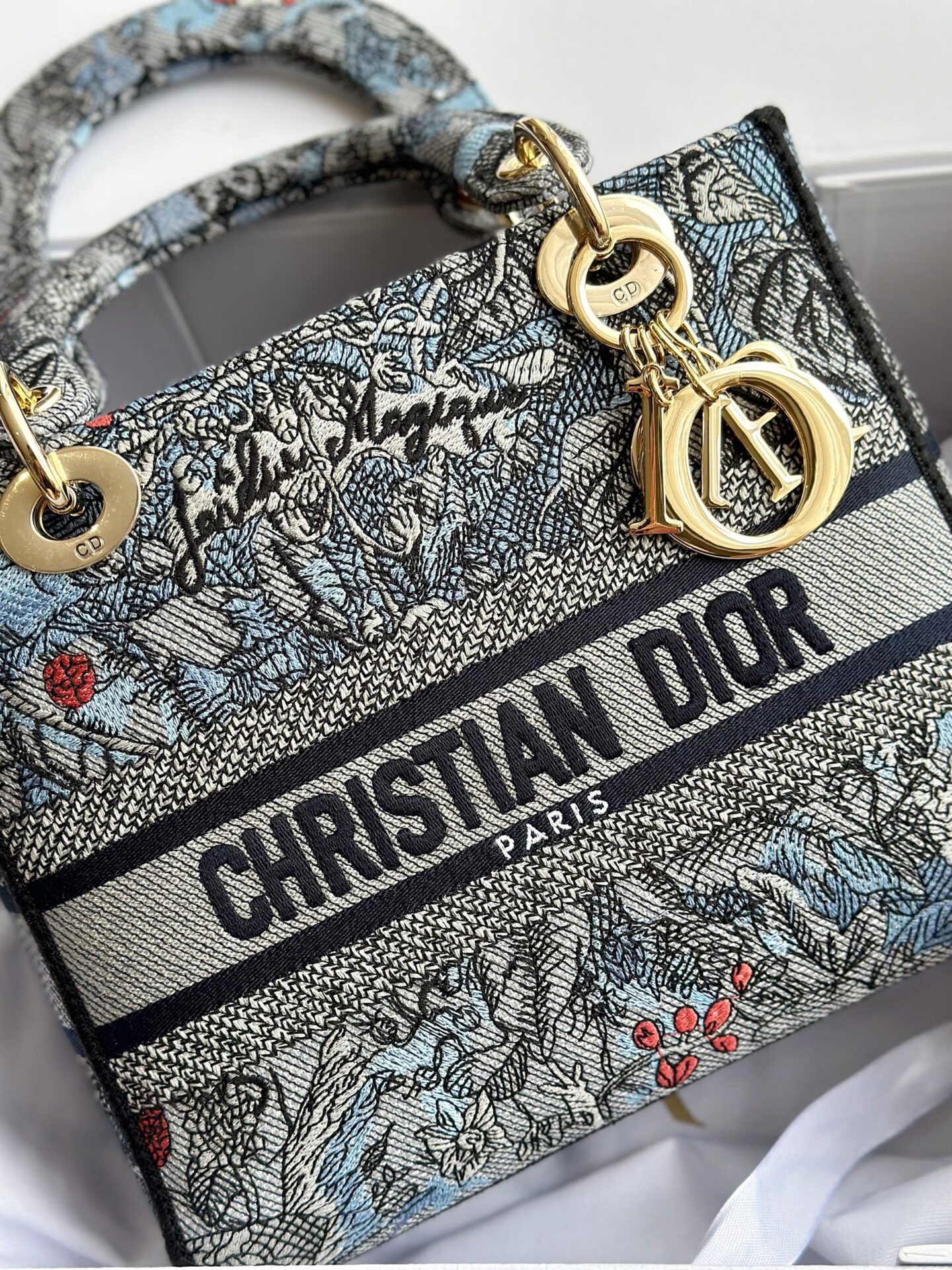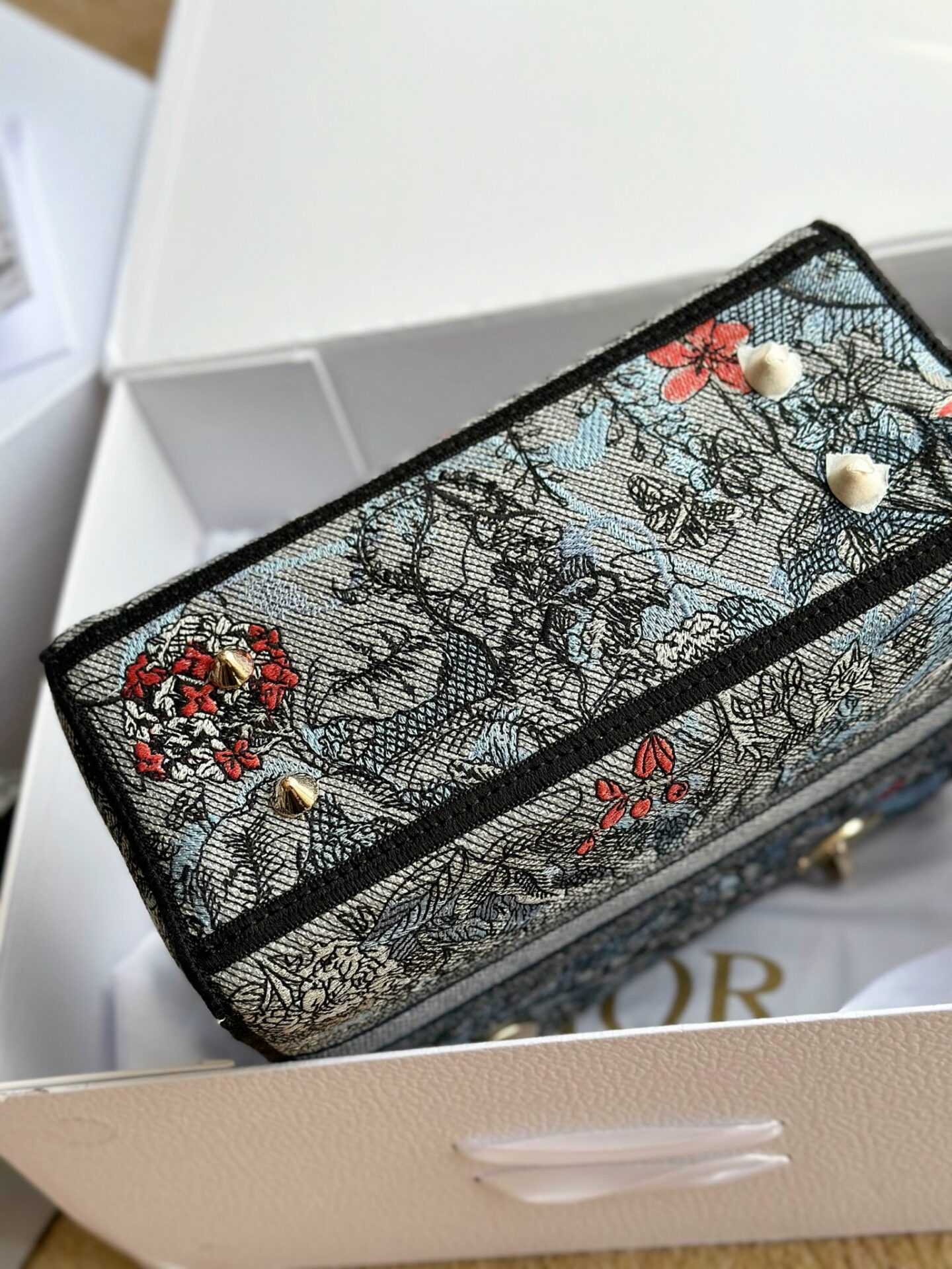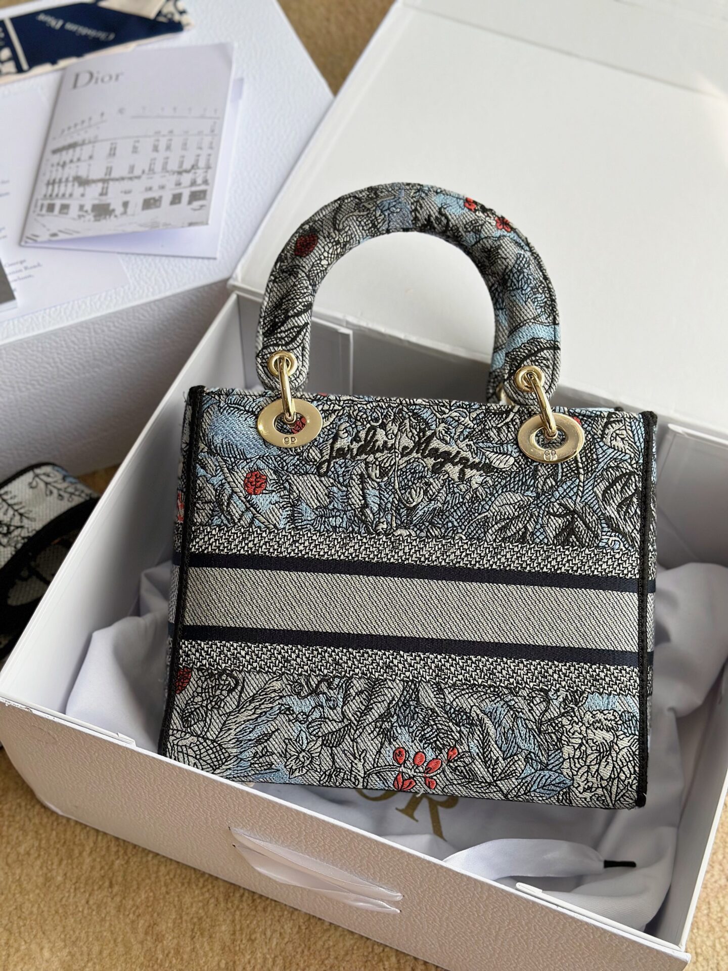 TÚI LADY DIOR MEDIUM SIZE D-LITE BAG DENIM MULTICOLOR DIOR JARDIN MAGIQUE