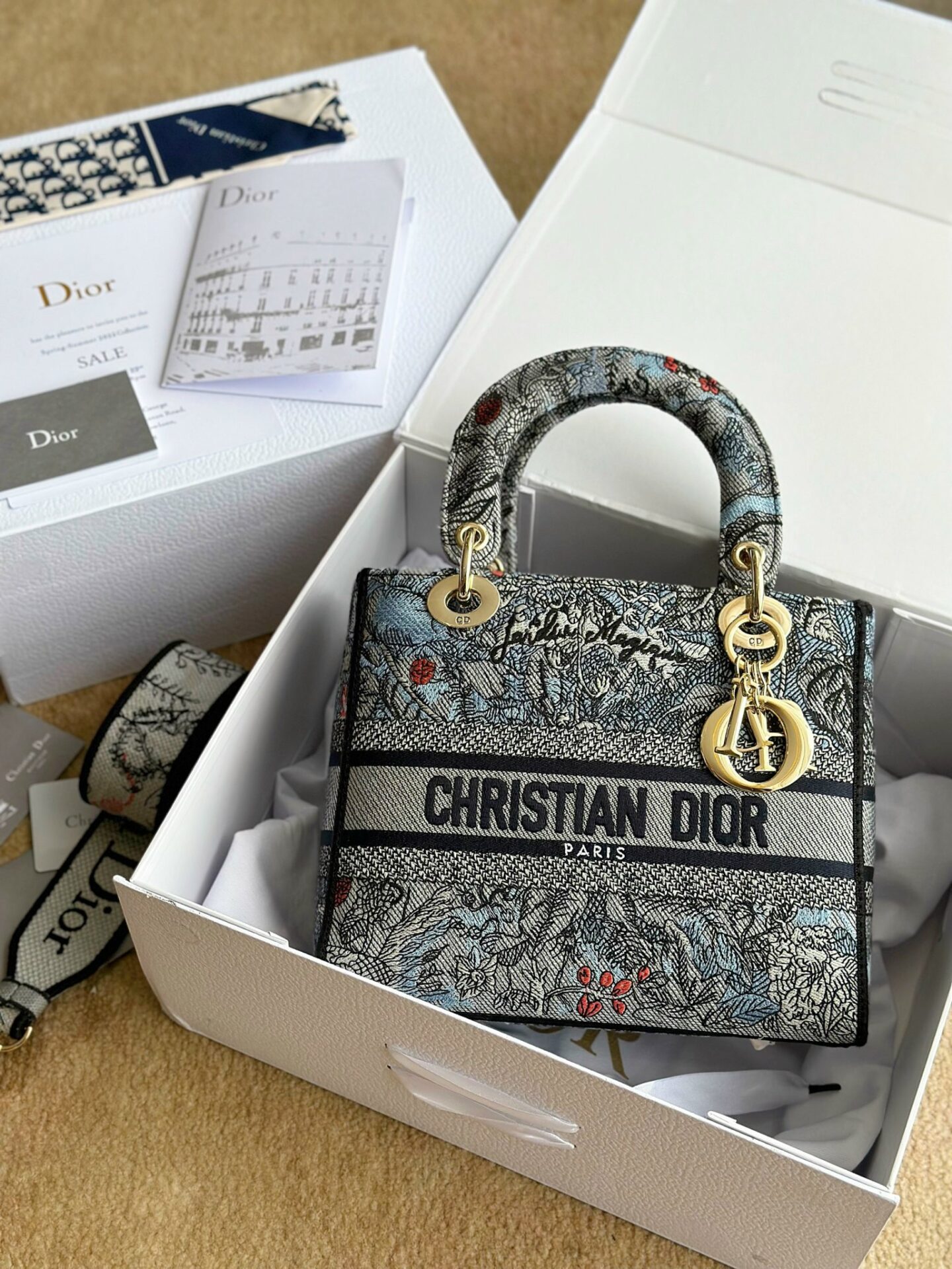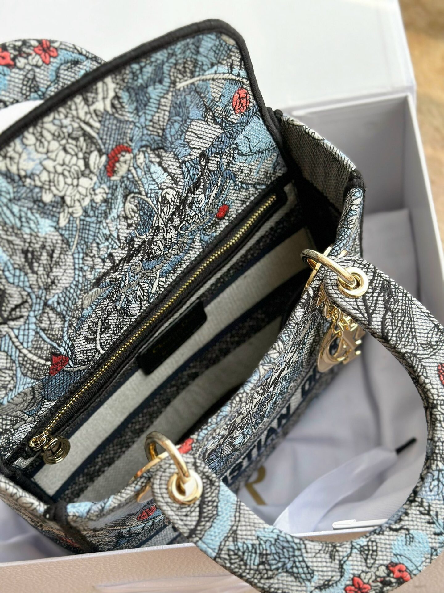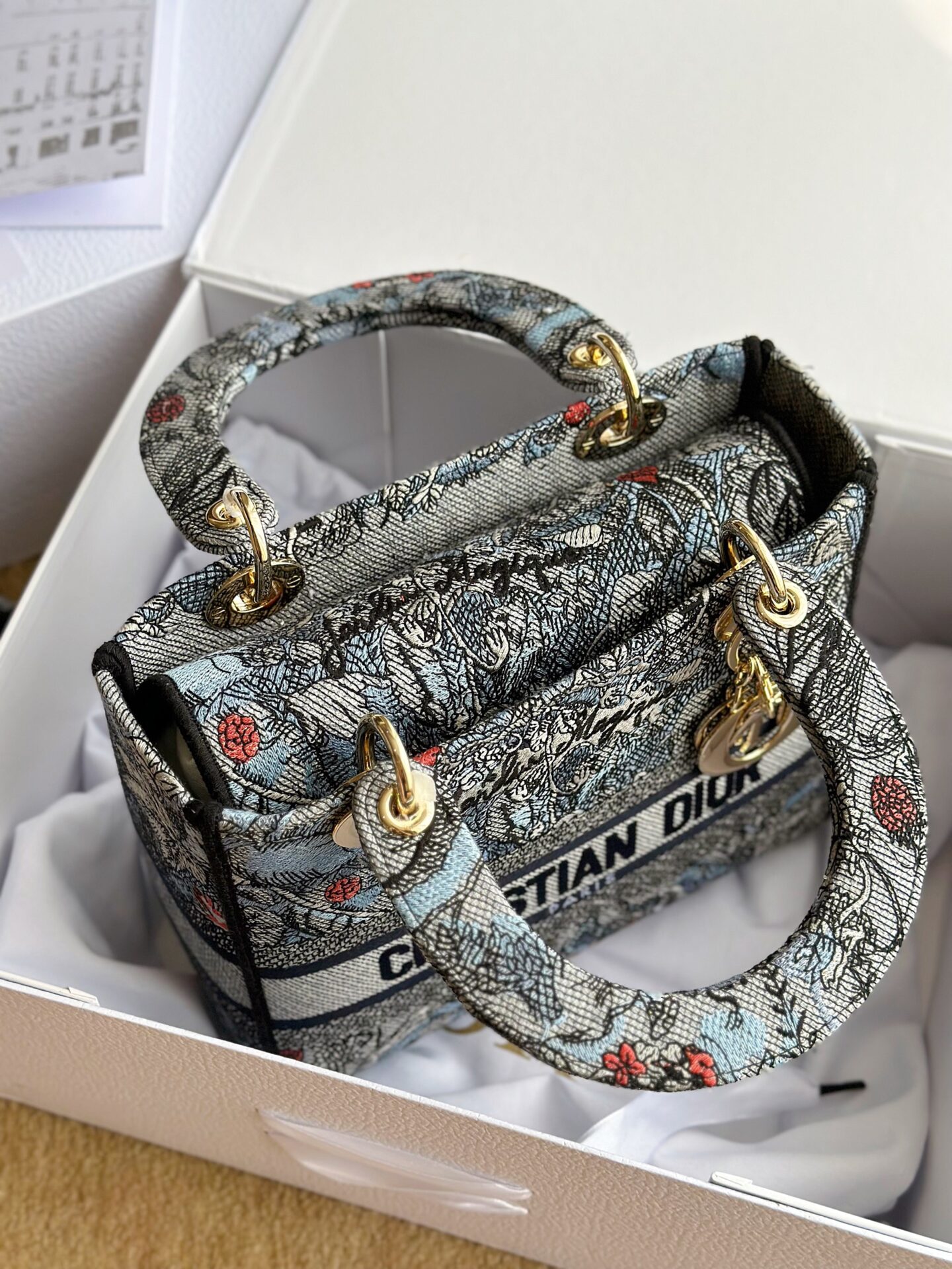 TÚI LADY DIOR MEDIUM SIZE D-LITE BAG DENIM MULTICOLOR DIOR JARDIN MAGIQUE