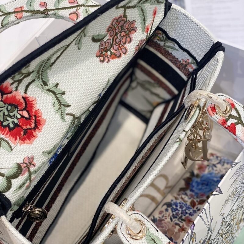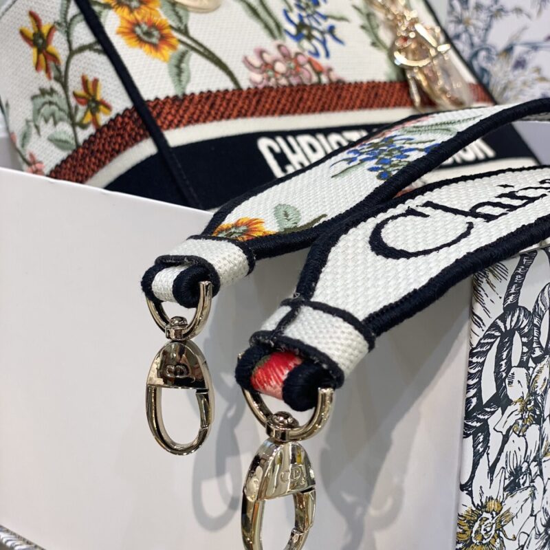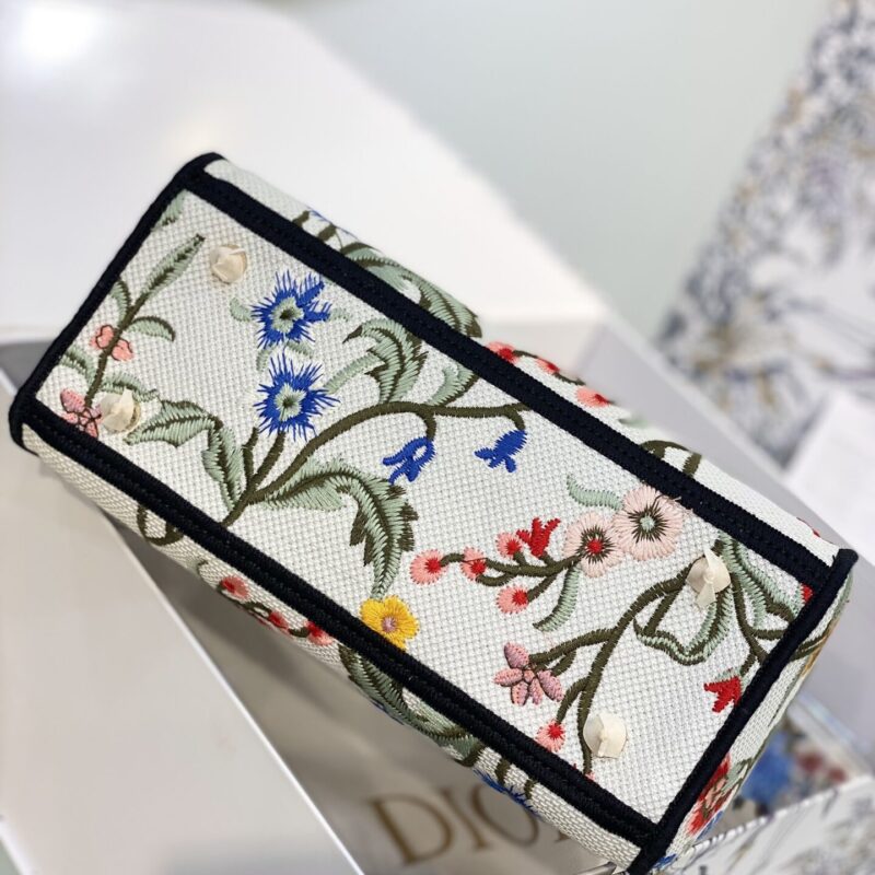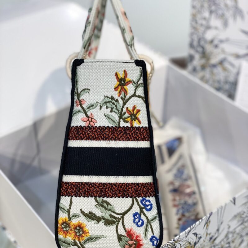 TÚI LADY DIOR MEDIUM SIZE D-LITE BAG WHITE MULTICOLOR PETITES FLEURS EMBROIDERY